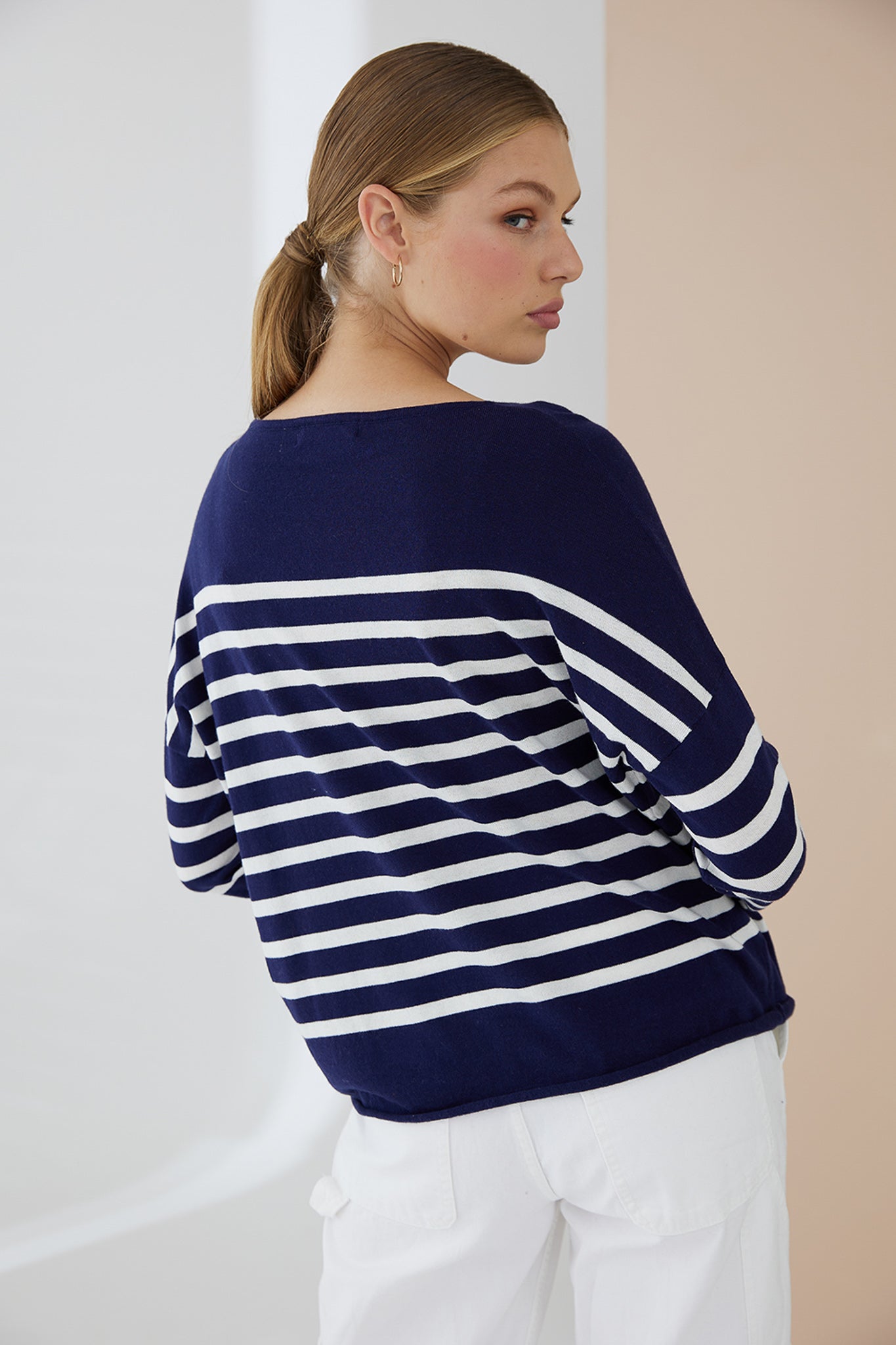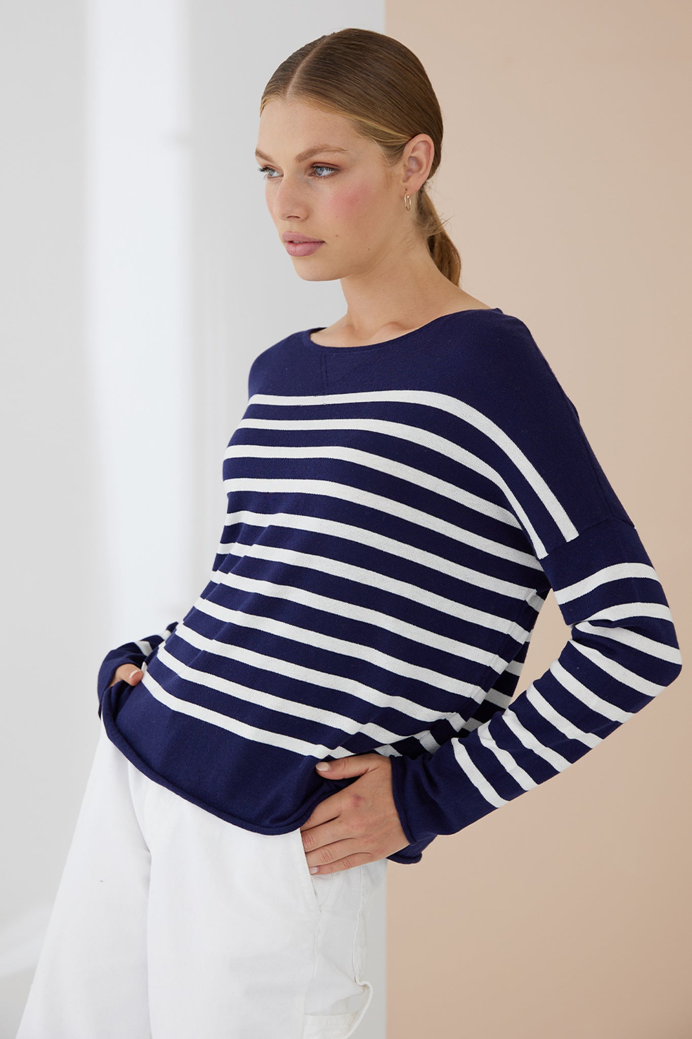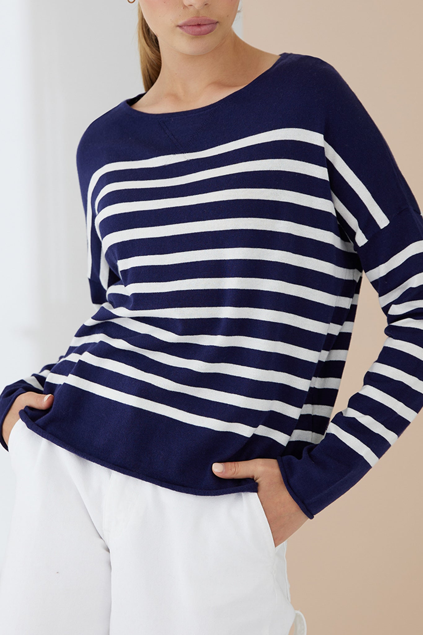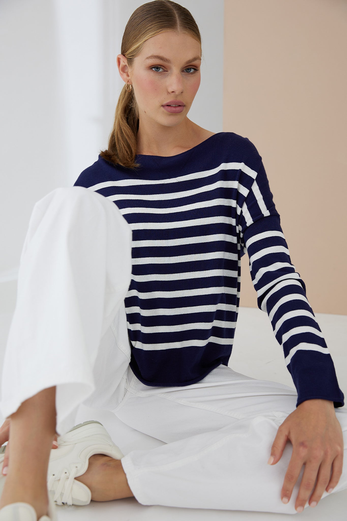 The Mia Fratino Como Stripe Crew is a must-have for effortless everyday wear. Made from a luxurious blend of cotton, silk, and cashmere, this lightweight knit offers all-day comfort and versatility. With its modern nautical-inspired design and slim cuffs, it's perfect for spring layering and summer travels. Treat yourself to the softest, most stylish addition to your wardrobe!