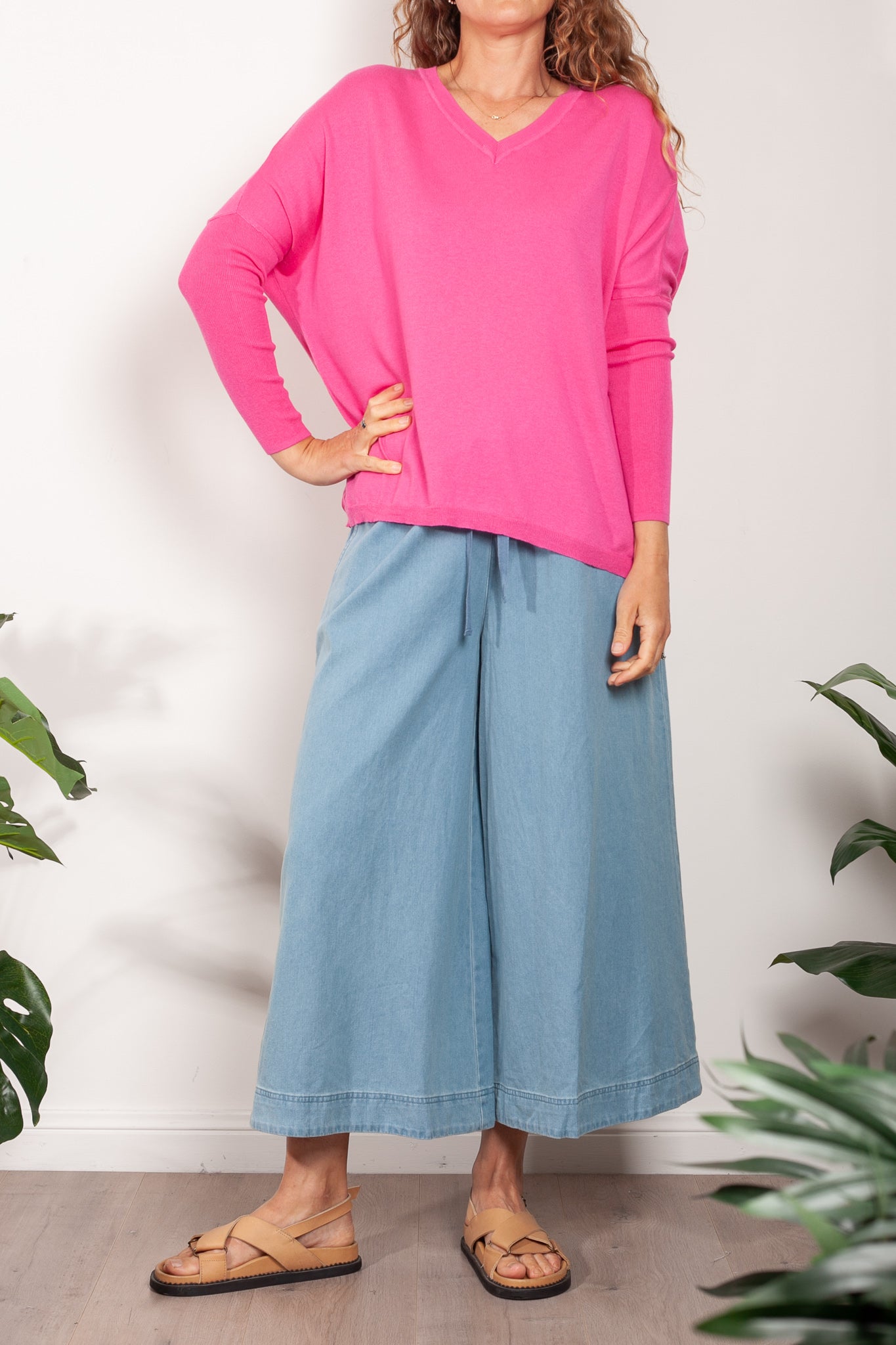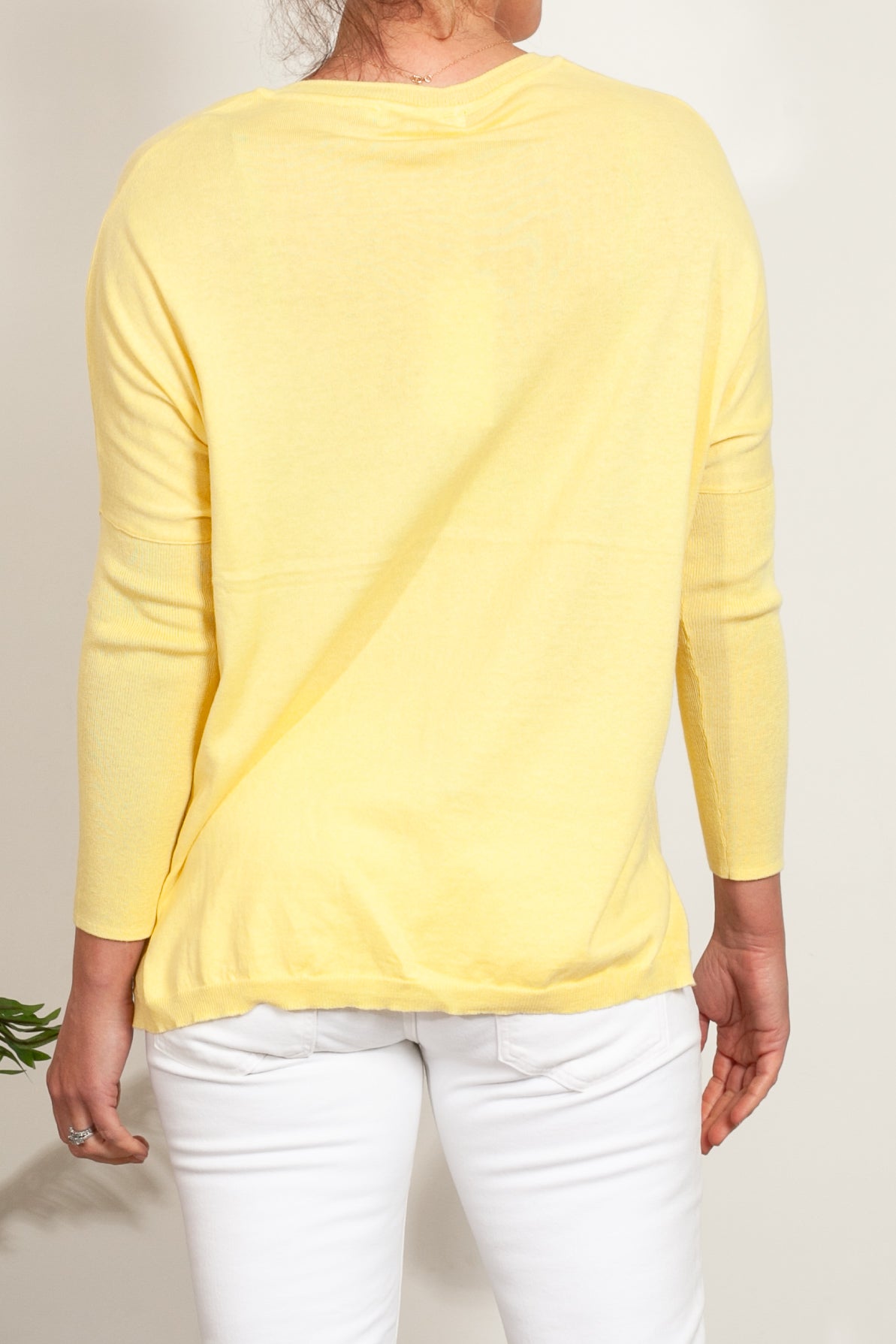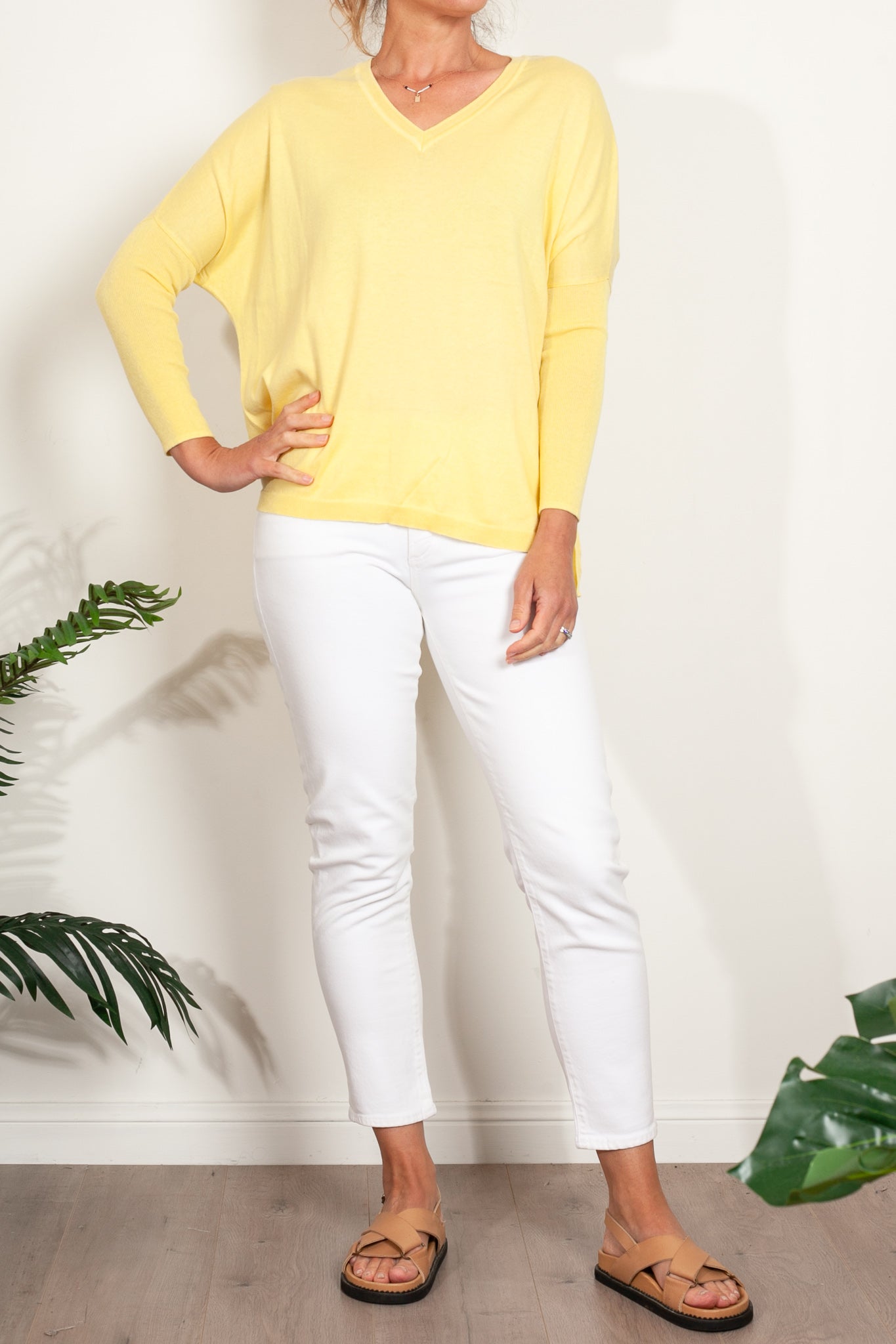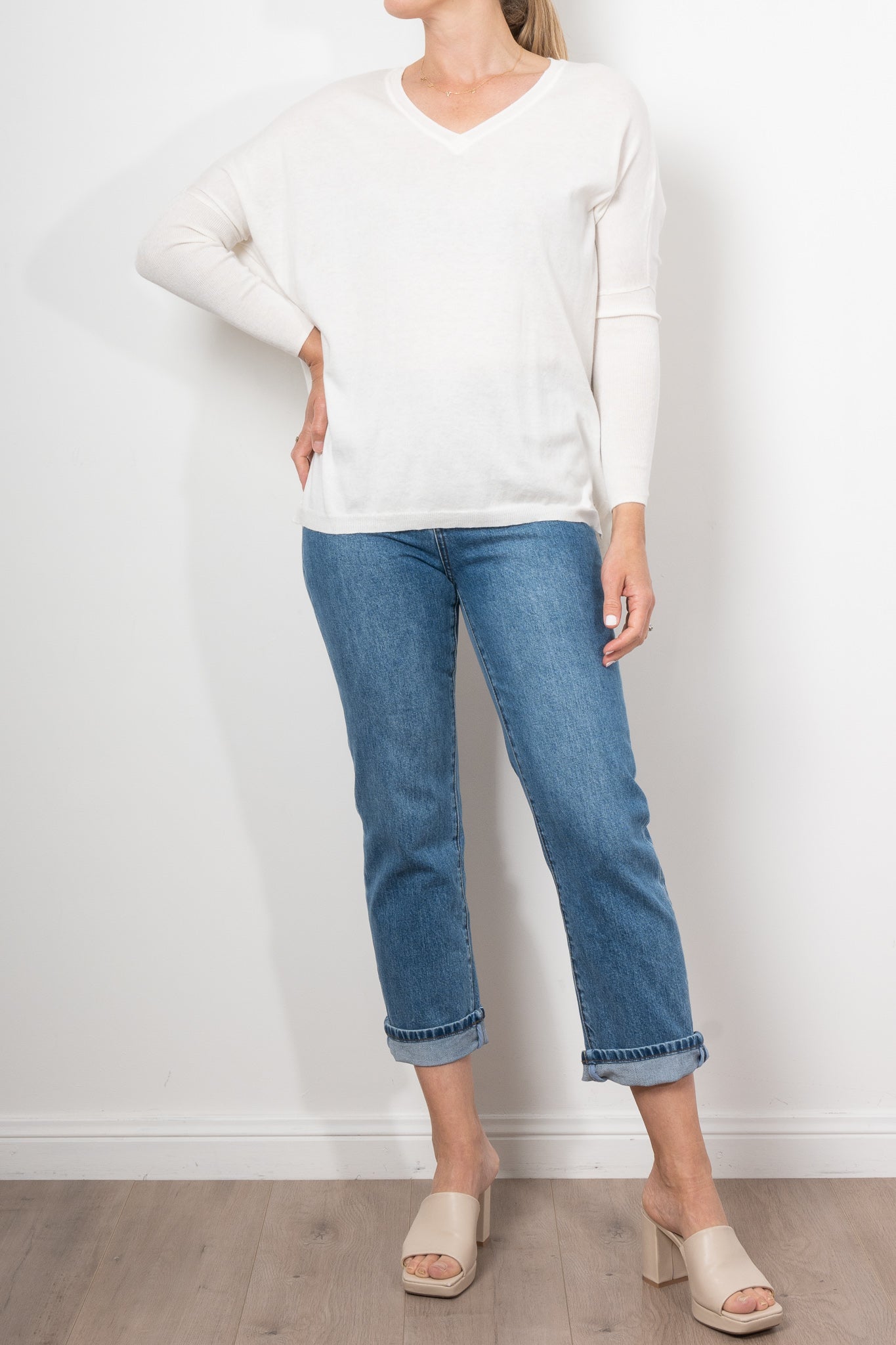If you love Mia Fratino's classic Boyfriend V-Neck sweater, you'll love the Corfu lightweight vee. Featuring a side split hem, ribbed arm detailing and flattering v-neckline.
