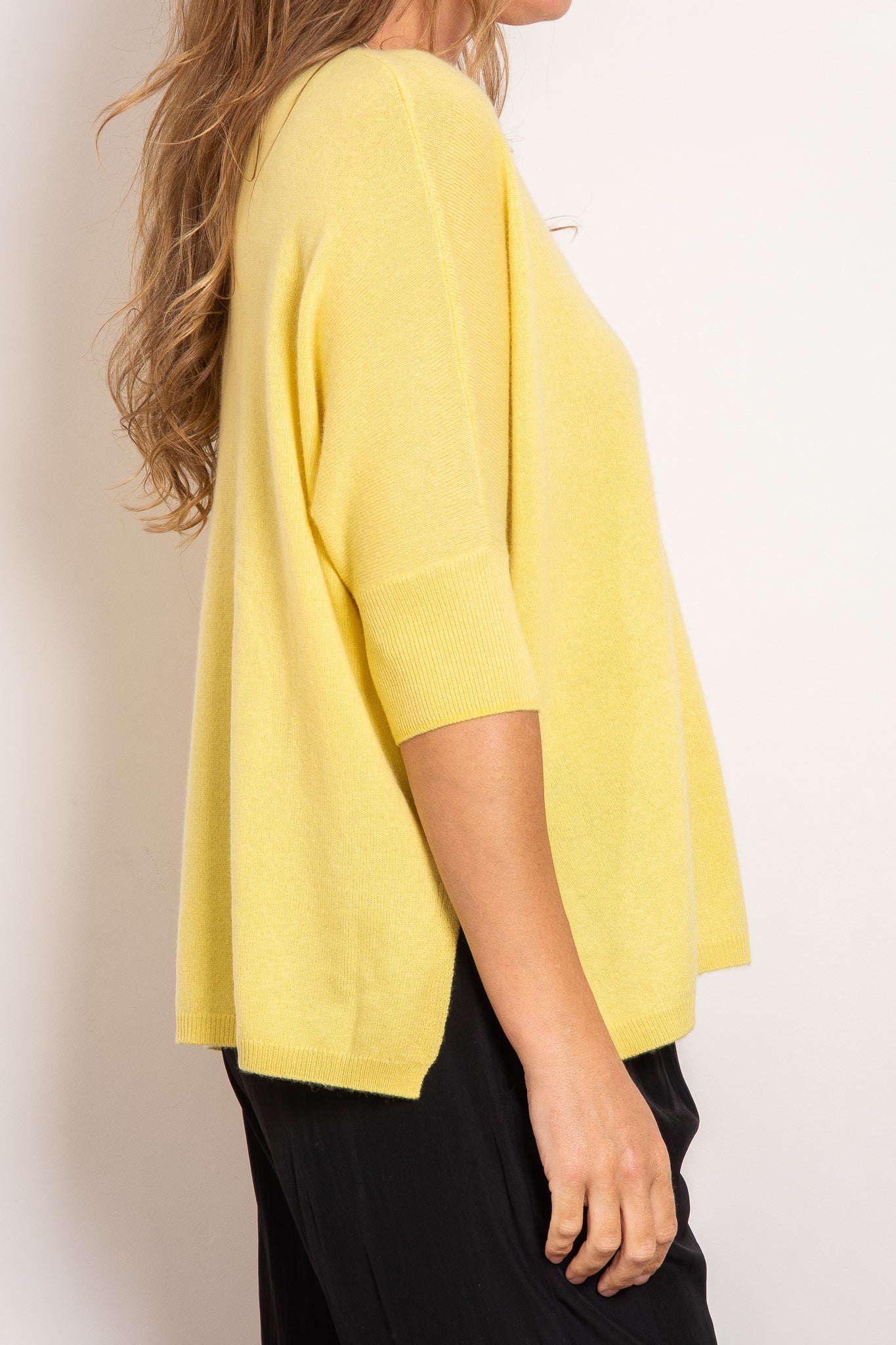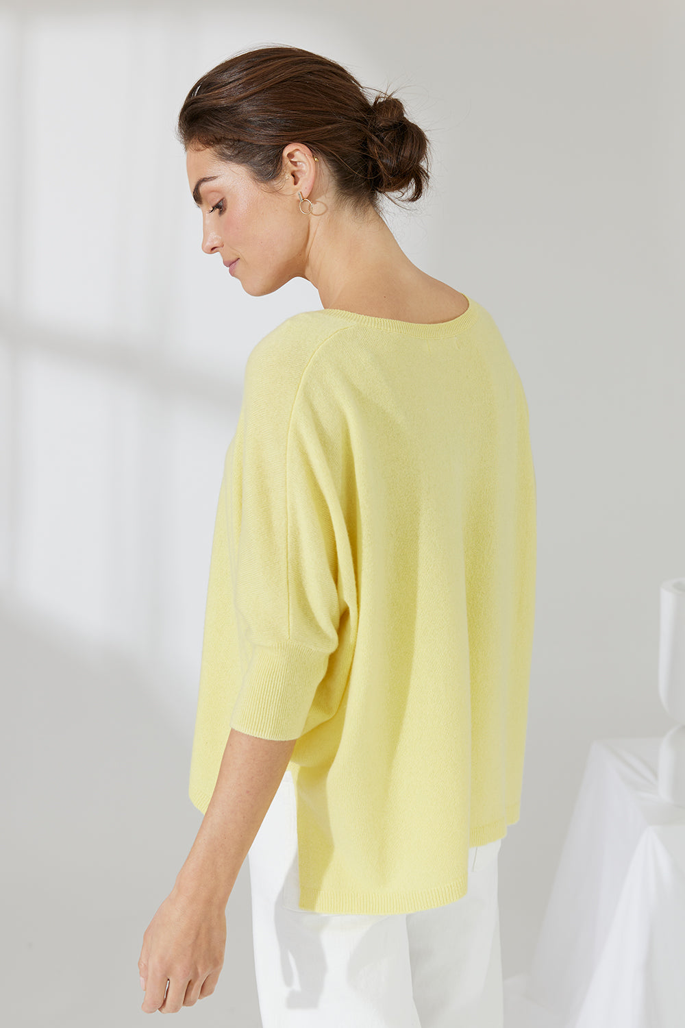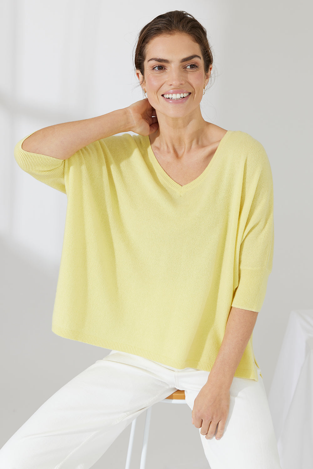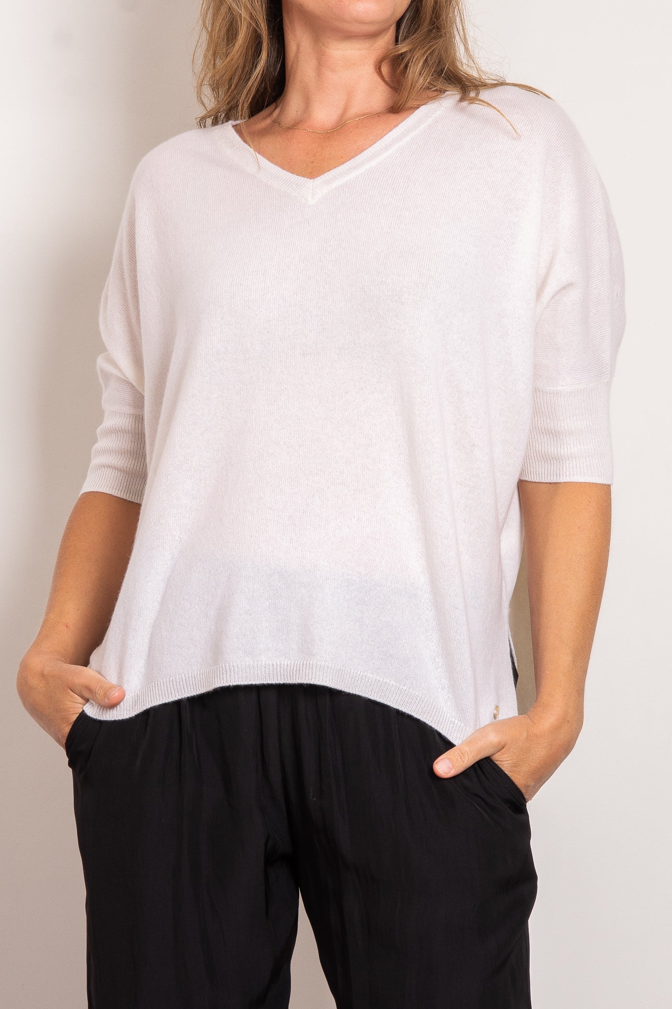 The lightweight and luxurious Hattie Wide Tee is our new everyday essential. This relaxed V-neck knit is spun from 100% cashmere and features a contemporary split hem with rib detailing. The 3/4 slim fit sleeves ensure a balanced silhouette that is both comfortable and flattering.