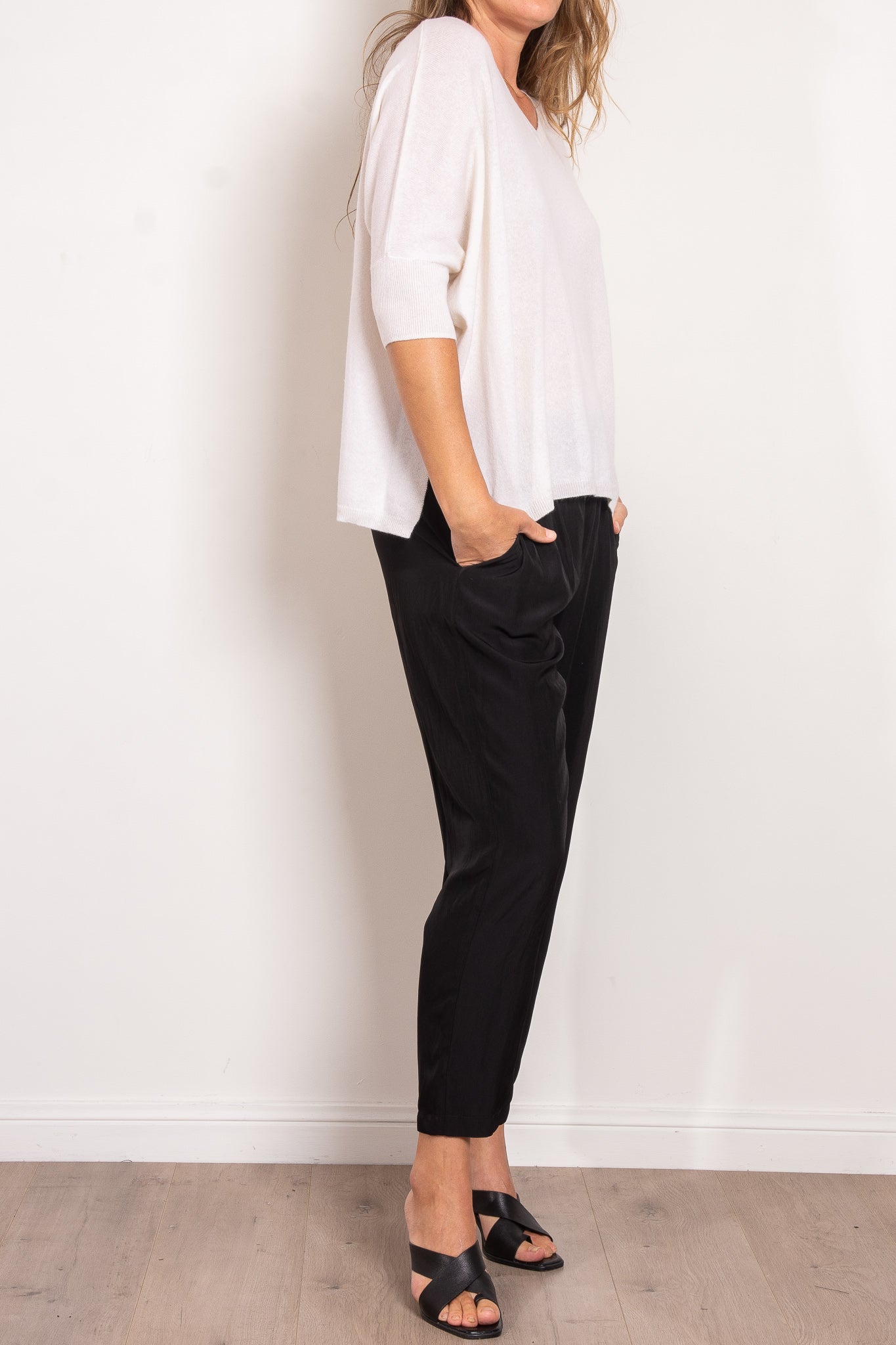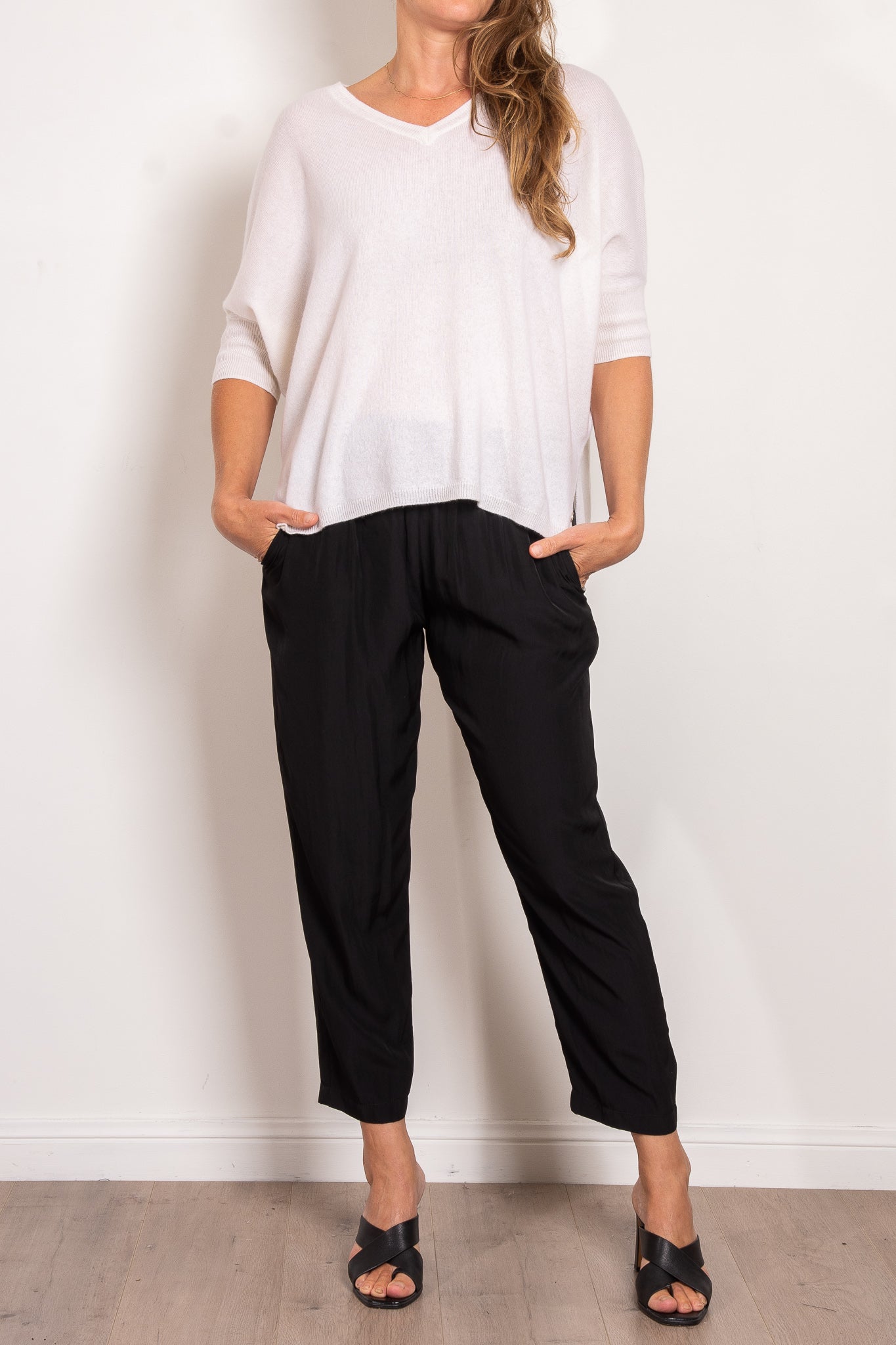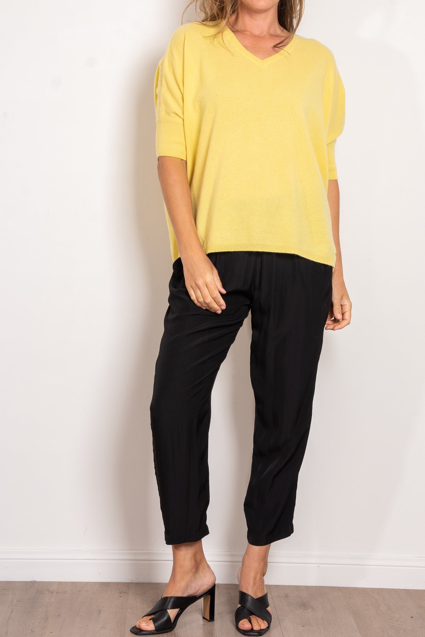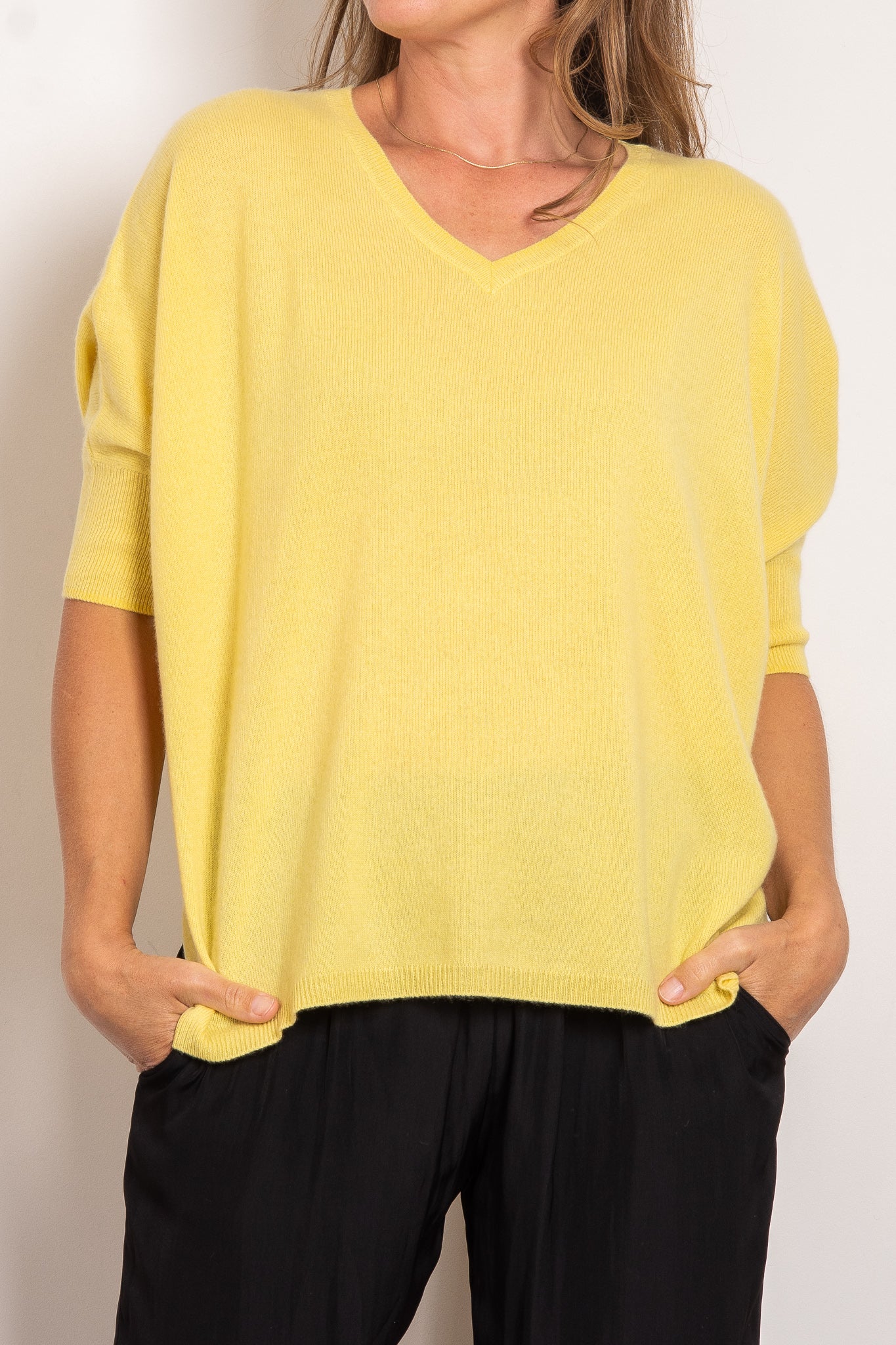 The lightweight and luxurious Hattie Wide Tee is our new everyday essential. This relaxed V-neck knit is spun from 100% cashmere and features a contemporary split hem with rib detailing. The 3/4 slim fit sleeves ensure a balanced silhouette that is both comfortable and flattering.