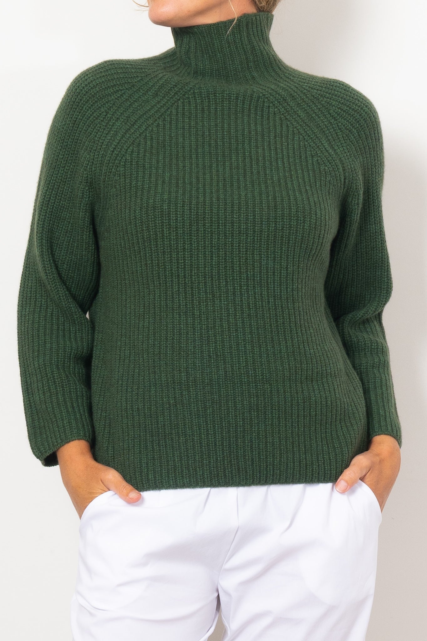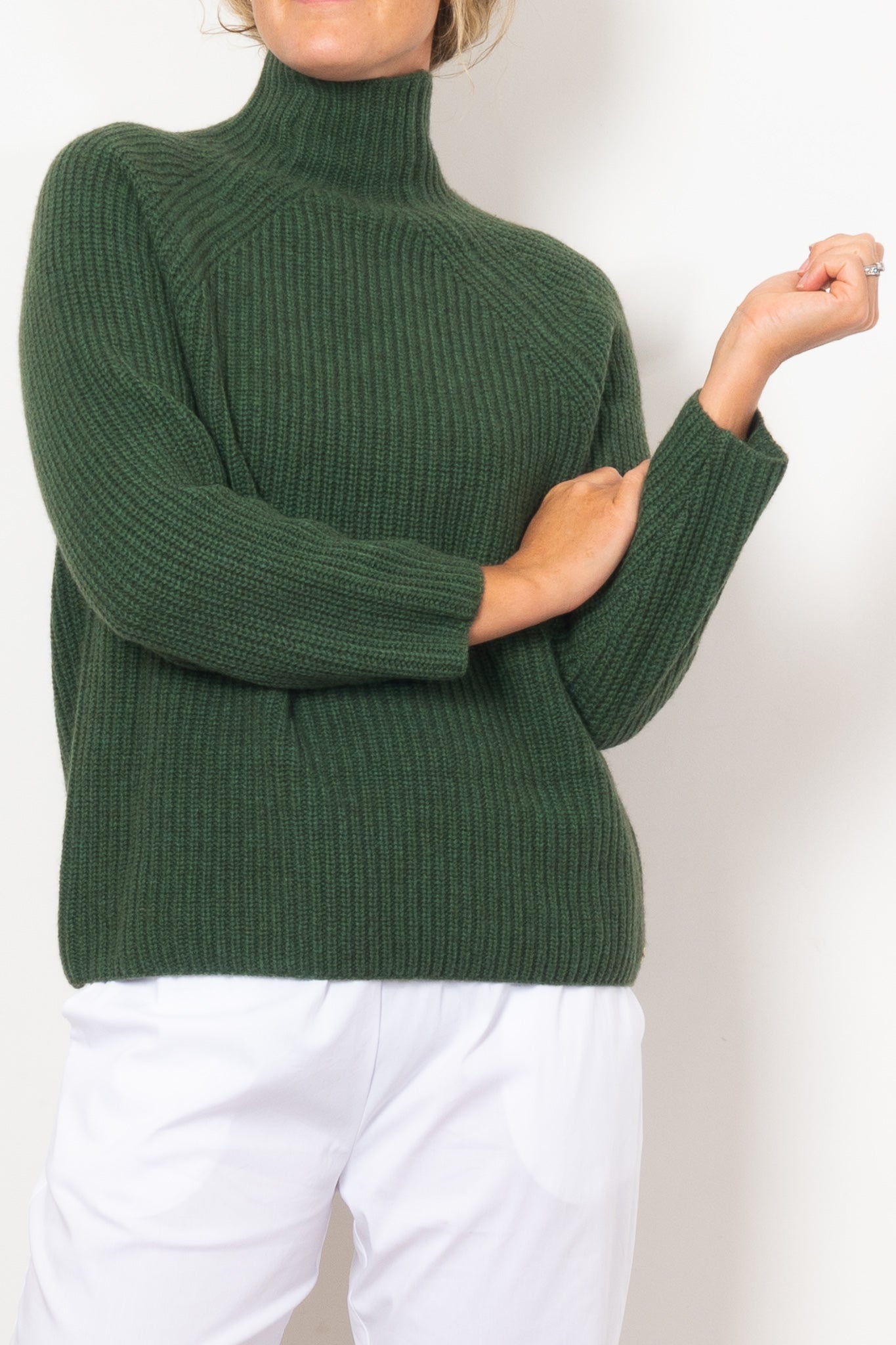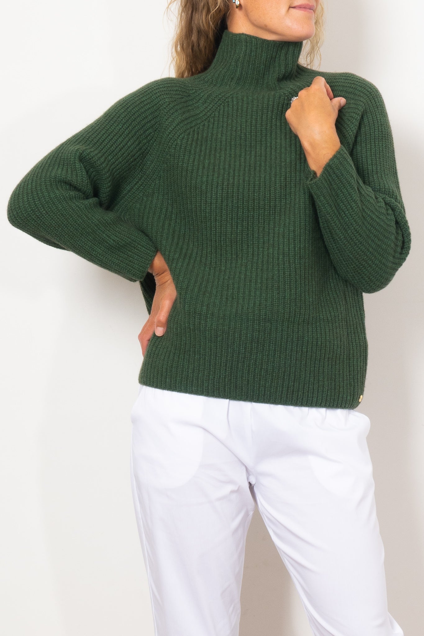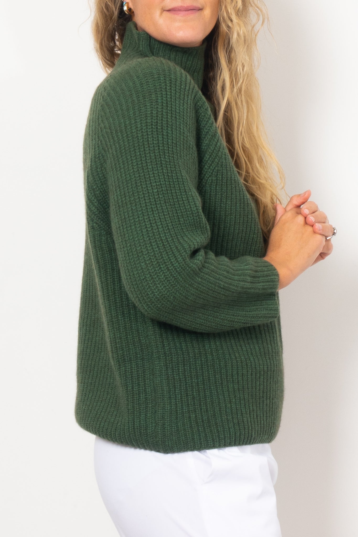 Experience the ultimate comfort and luxury with our Mia Fratino Luna Pullover. Stay cosy and warm in this earthy green sweater featuring a roll neck for added warmth and a relaxed fit for effortless style. Made from a premium blend of merino and cashmere, this sweater will be your Winter go-to.