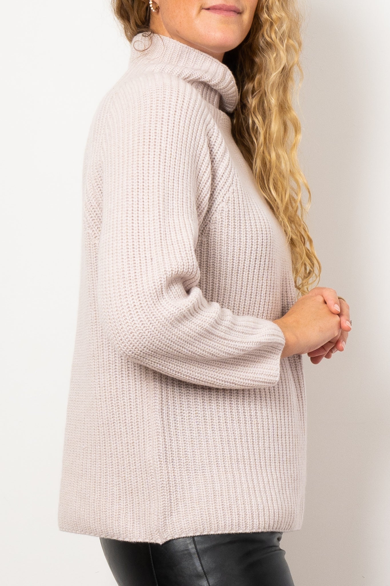 70% Merino Wool. 30% Cashmere. Gentle cool hand wash.
