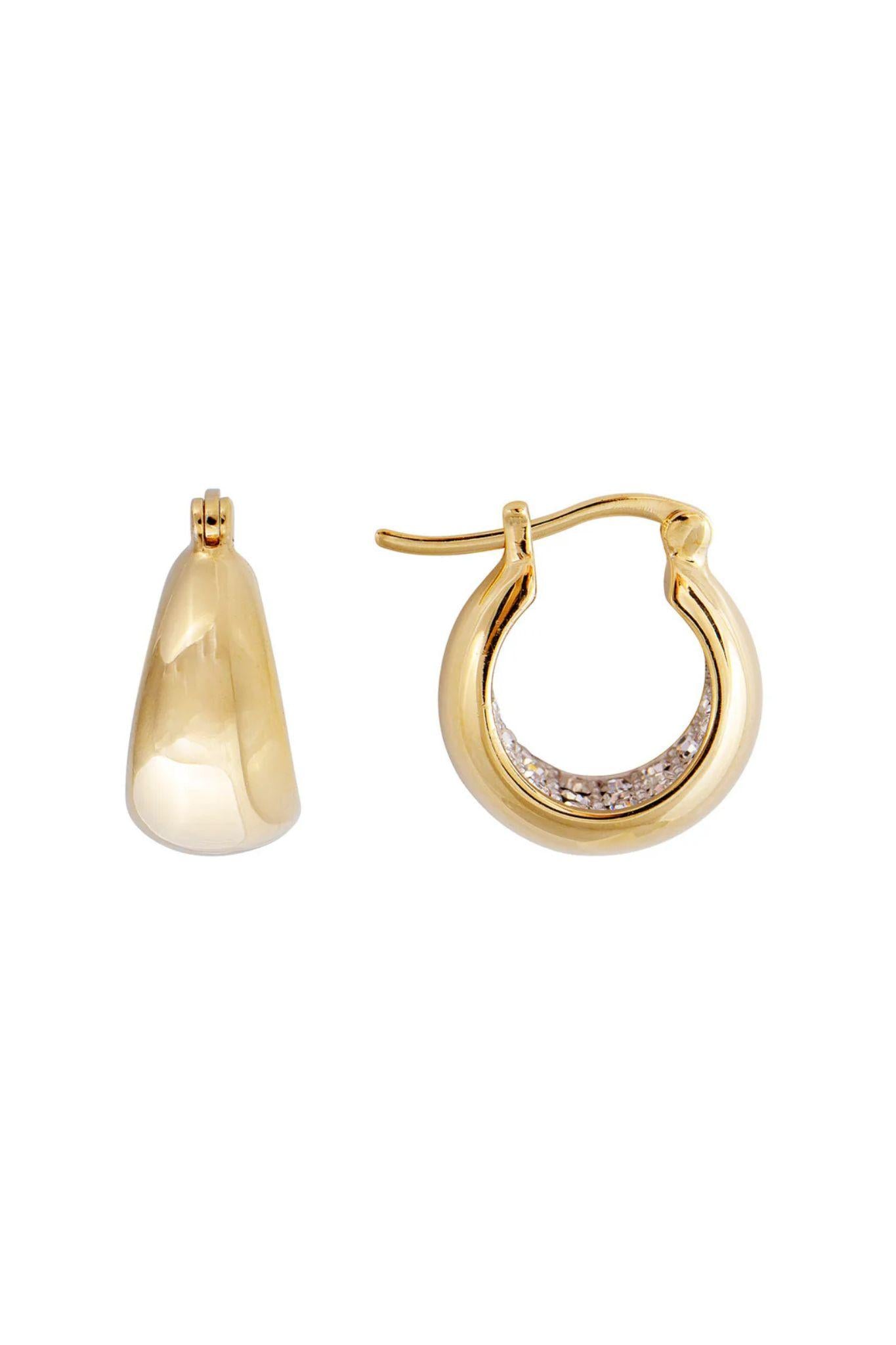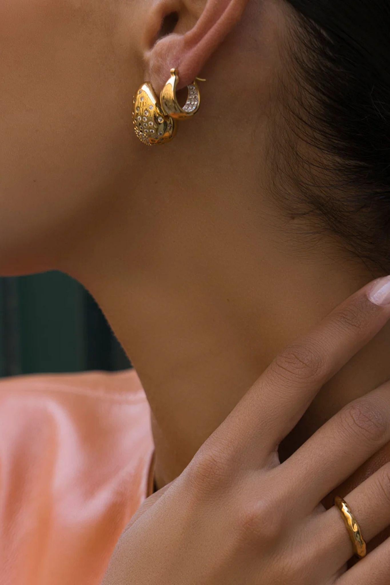 A modern twist on a timeless silhouette, the Crystal Flared Midi Hoops are designed to dazzle. Featuring a sleek flared shape and encrusted with tiny sparkling crystals, they strike the perfect balance between bold and refined. Whether styled with a crisp white shirt or an evening look, these hoops add a hint of glamour and effortless sophistication.