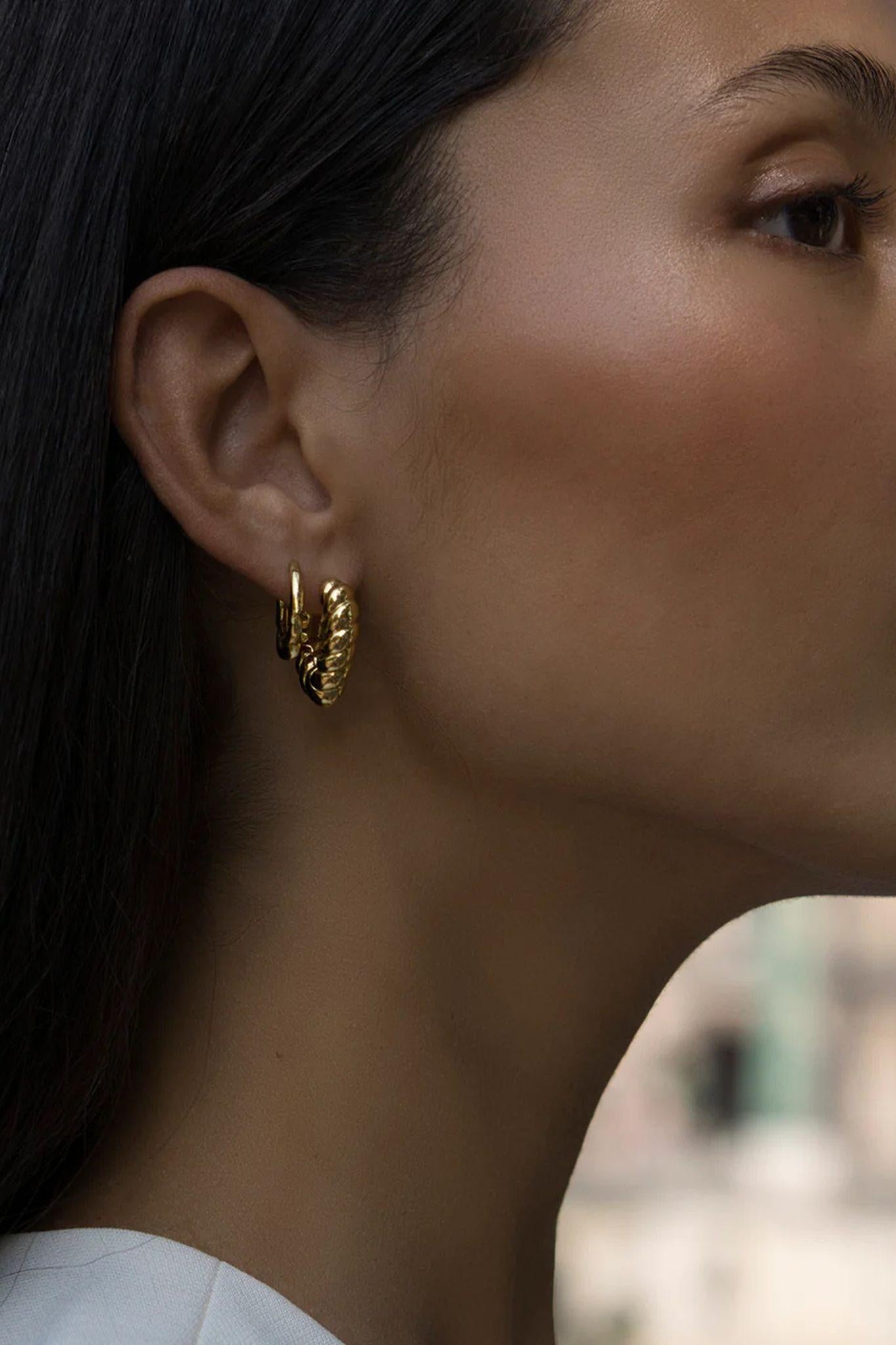 A love letter to timeless romance, the Romance Hoops are crafted in polished gold and sculpted into a delicate braided heart shape. Inspired by sunlit Mediterranean escapes and vintage glamour, these hoops blend bold femininity with soft, romantic curves—perfect for daydreamers, lovers, and style sophisticates alike.