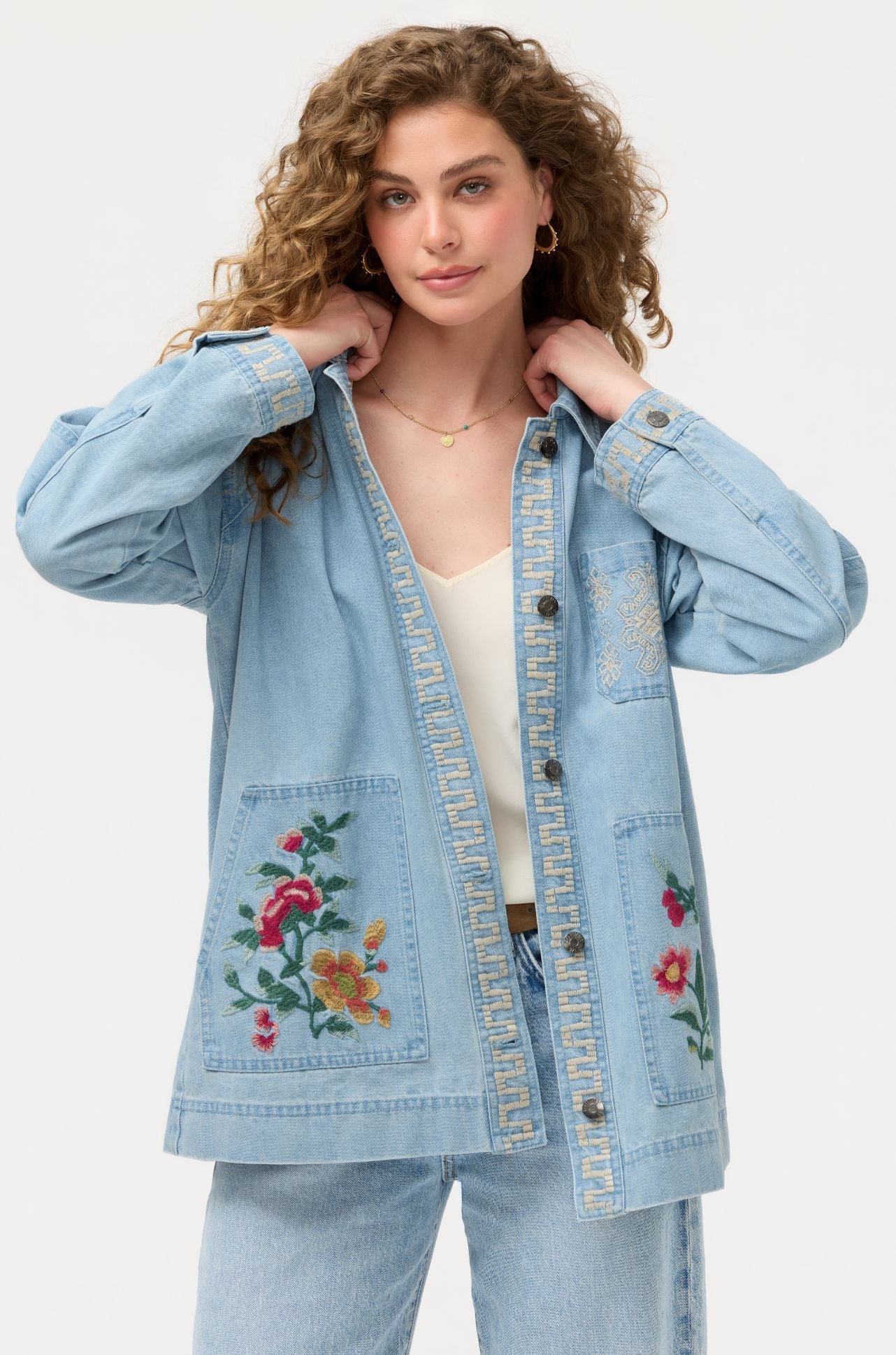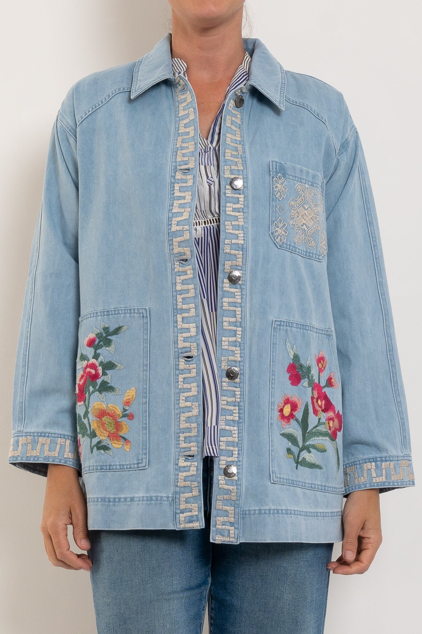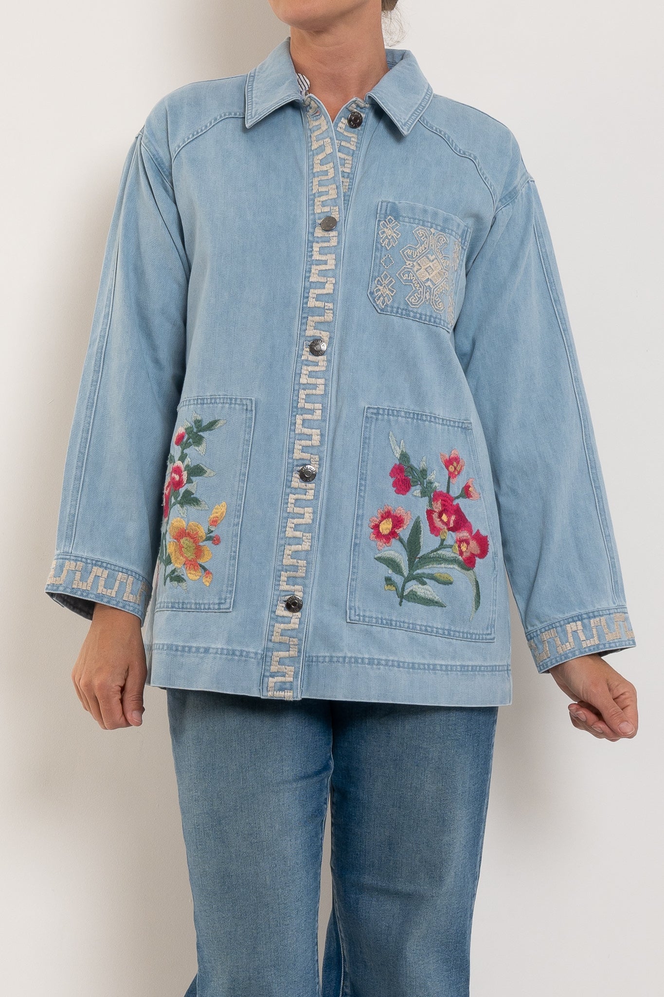 Johnny Was Oversized Denim Trucker Jacket Sunnie