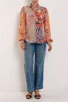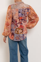 Effortless elegance meets bohemian charm in this Kachel Lorelai Blouse. Crafted from luxuriously soft viscose, the fabric drapes beautifully with a fluid, breathable feel perfect for warm weather styling. Billowing sleeves feature refined cuff detailing, while a gathered back yoke adds subtle dimension and movement. The standout colourful boho patchwork print brings artistic flair to your everyday wardrobe. A versatile piece that transitions seamlessly from casual to dressed-up occasions.