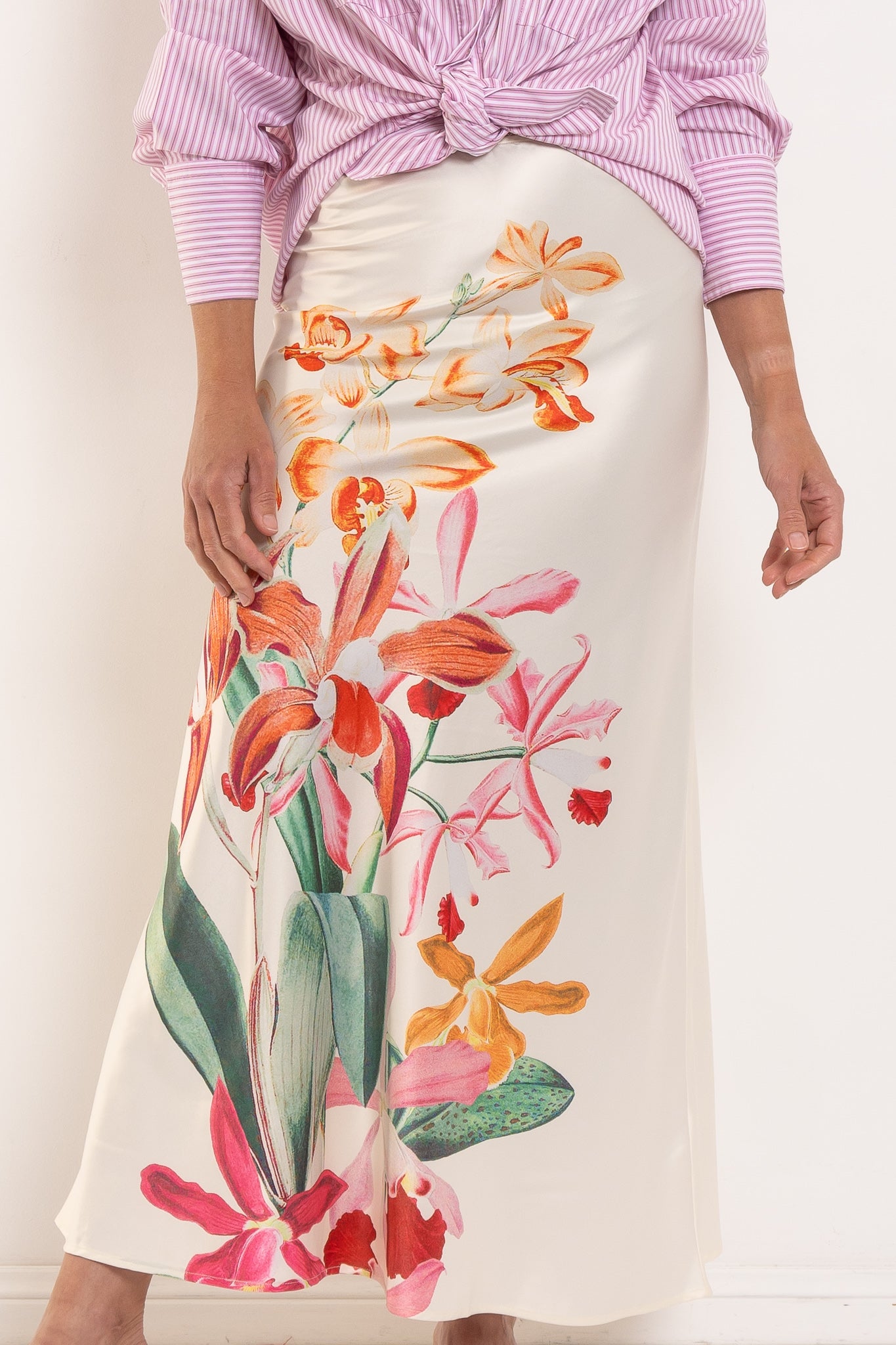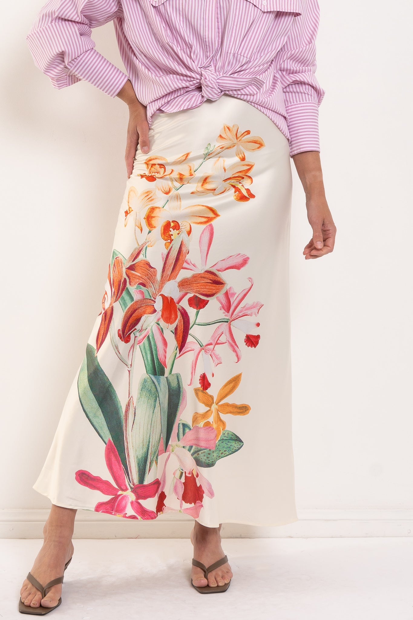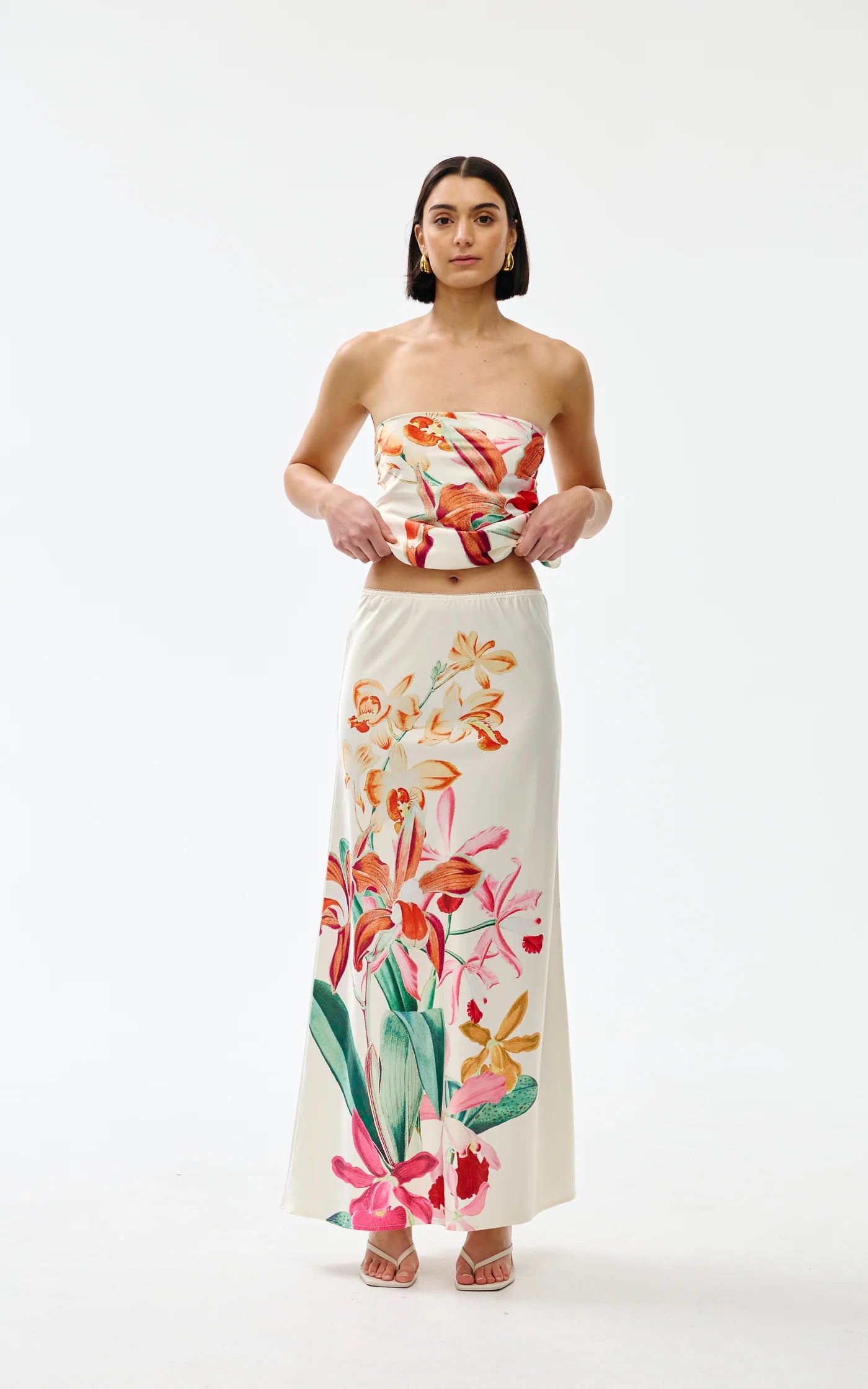 The Kinney Gia Skirt brings effortless elegance to your wardrobe with its expertly bias-cut design and graceful drape. Crafted from luxuriously lightweight fabric, this maxi skirt adapts to your style—wear it low on the hips for a relaxed vibe or high on the waist for refined sophistication. The stunning Positano print bursts with vibrant summer hues of yellow, orange, red, and pink that instantly elevate any occasion. Whether you're dressing for sun-soaked days or evening events, this flattering silhouette skims the body with ease, making it the versatile piece you'll reach for again and again.