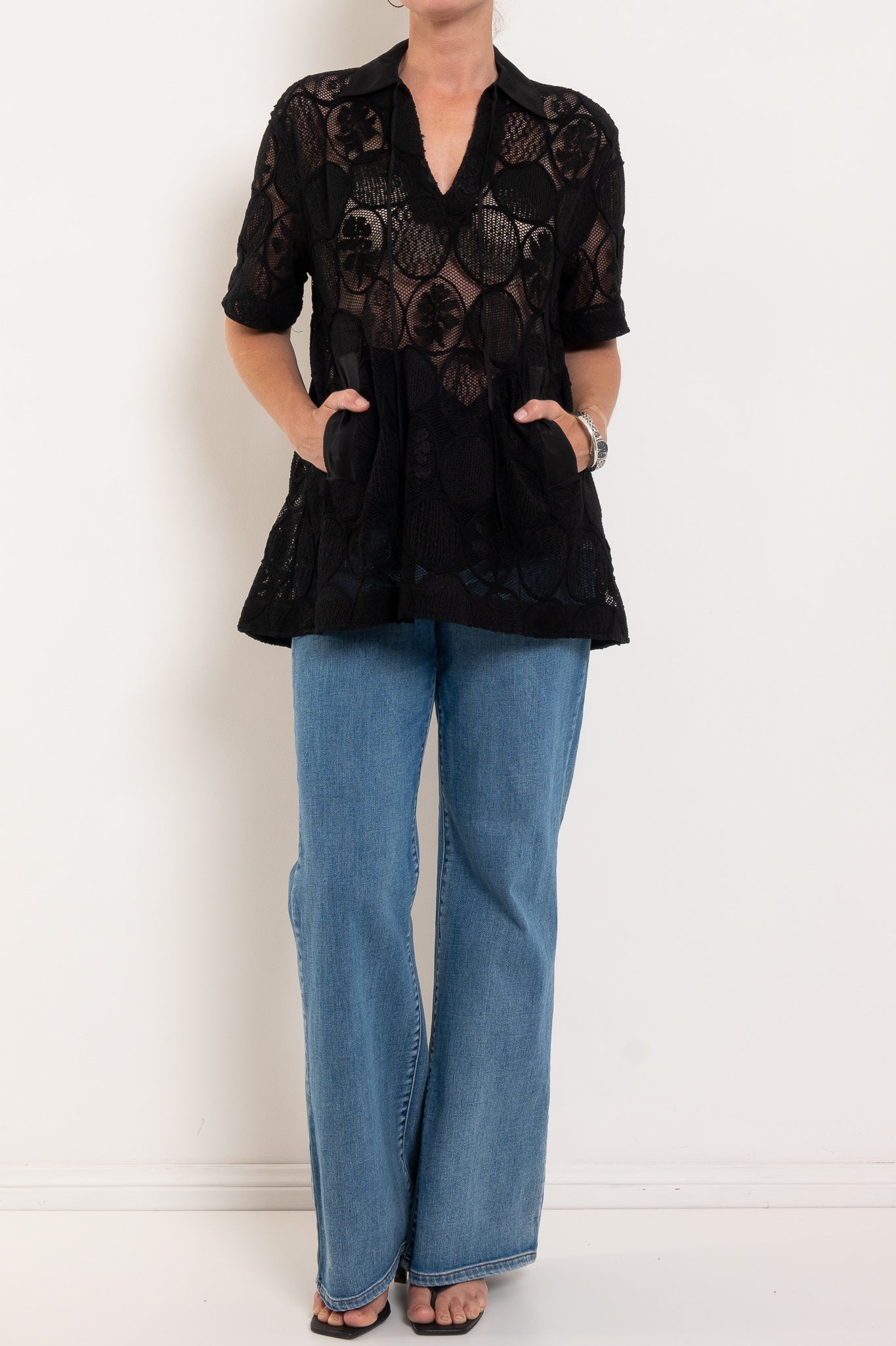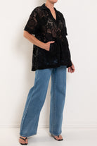 A little drama, a lot of ease. The Lounge the Label Samos Shirt is your new go-to layering piece when you want something relaxed yet undeniably special. With its sheer circular lace and easy, throw-on shape, it adds instant interest to simple jeans, slim pants or a sleek column dress underneath. See full product description below for fabric and fit info.