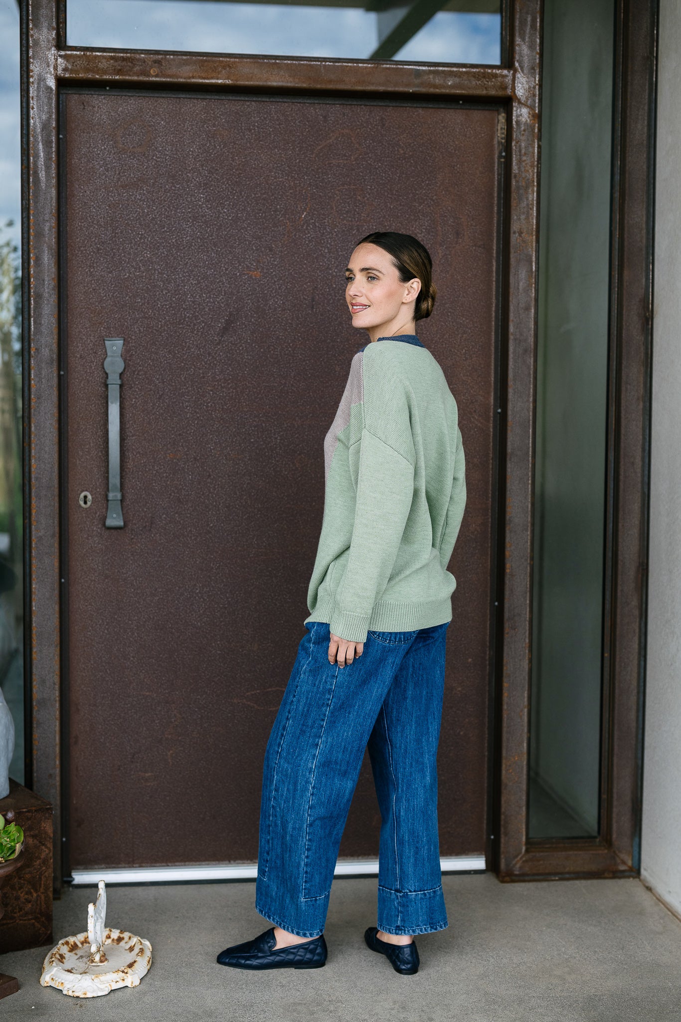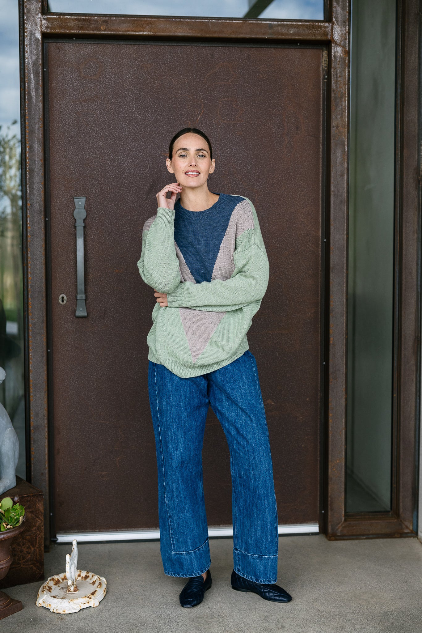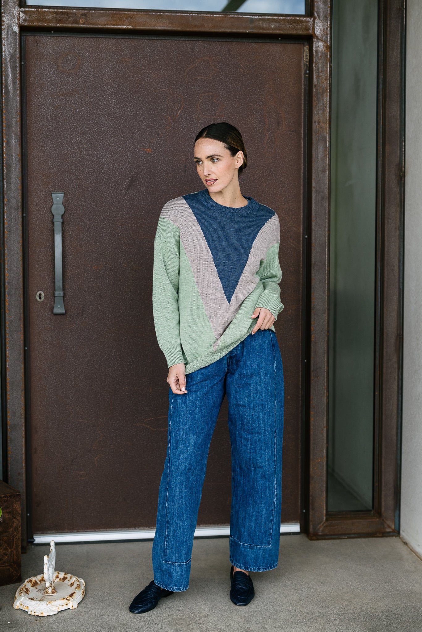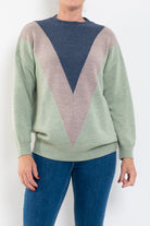 This lightweight knit brings a modern edge to your winter wardrobe with its striking colour-block design. The soft blend of sage, blush and deep blue creates a flattering V-shaped panel that naturally draws the eye, adding interest without overwhelming. Easy to wear yet distinctly different, it’s the kind of piece that makes getting dressed simple—just add your favourite denim or tailored pants and you’re good to go.