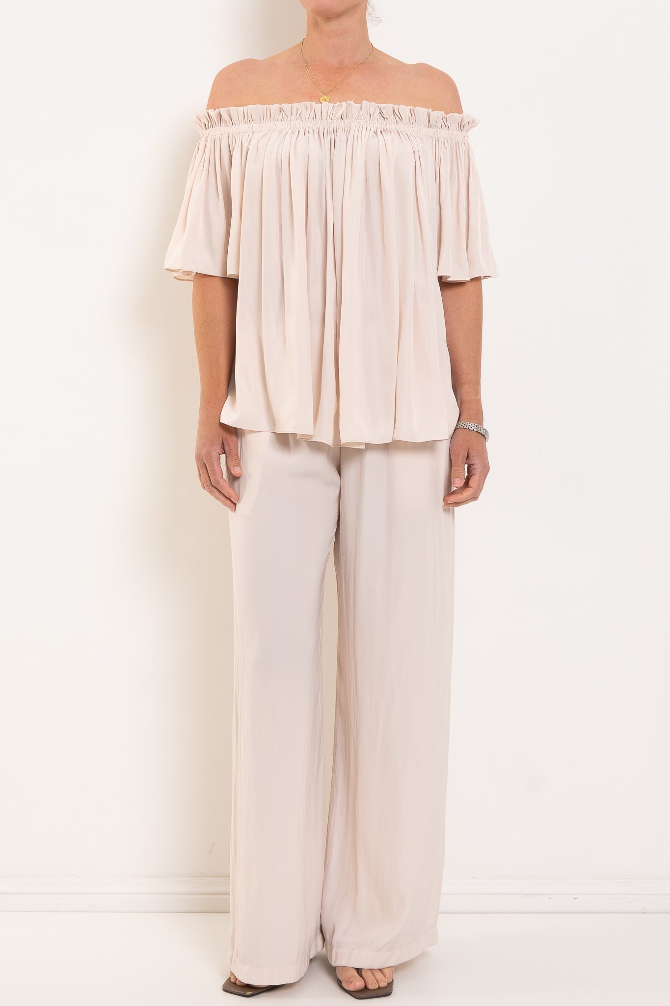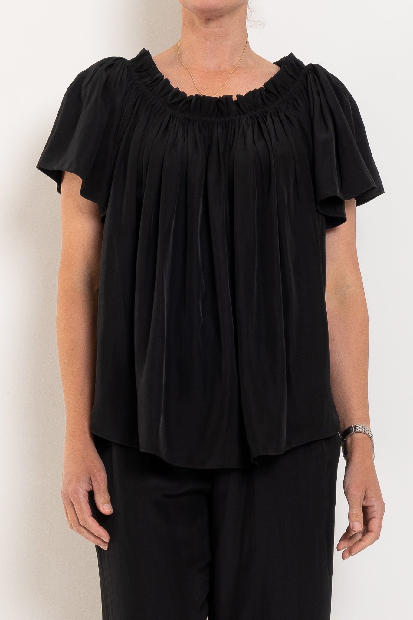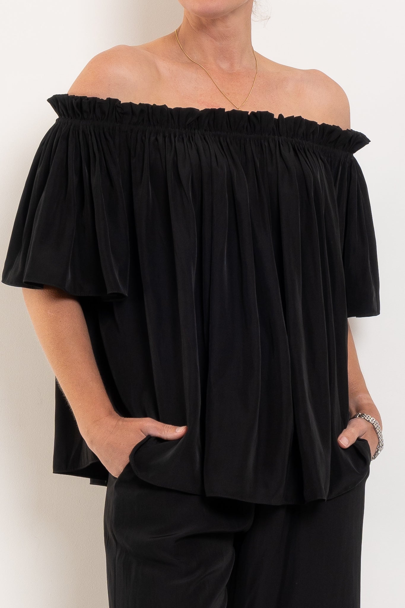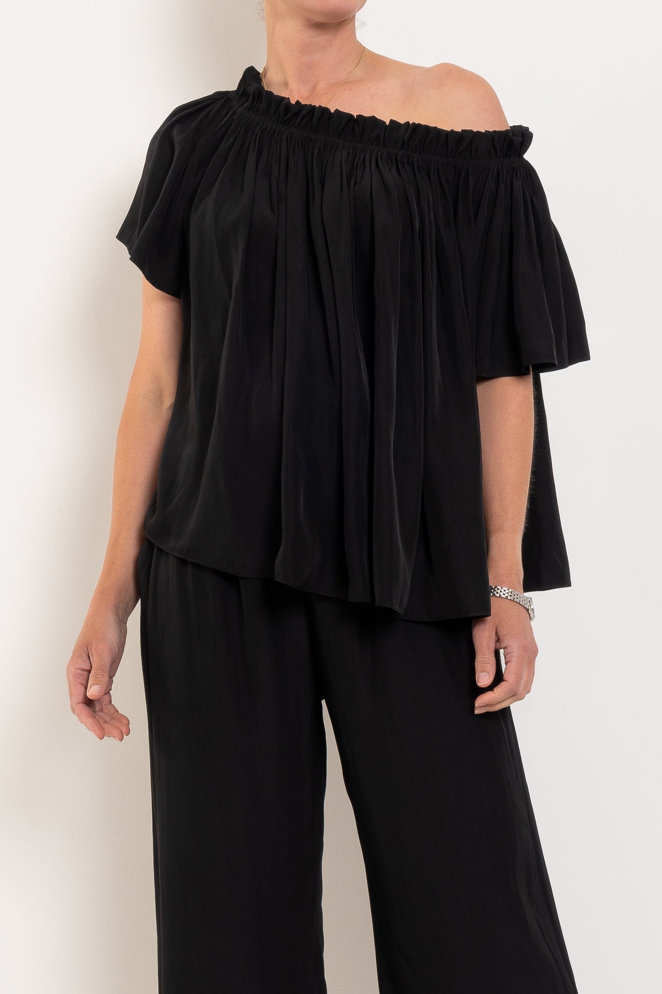 The Breeze Blouse is crafted in Mela Purdie’s luxurious Mache — a smooth Japanese technical fabric known for its soft drape, subtle sheen and incredible ease of wear. Designed with a softly elasticated neckline that can be worn on or off the shoulder, this piece is endlessly versatile. Voluminous sleeves with elastic cuffs add a touch of romance, while the relaxed fit skims the body without clinging. Light, polished and effortlessly chic, it’s a warm-weather staple you’ll reach for again and again.