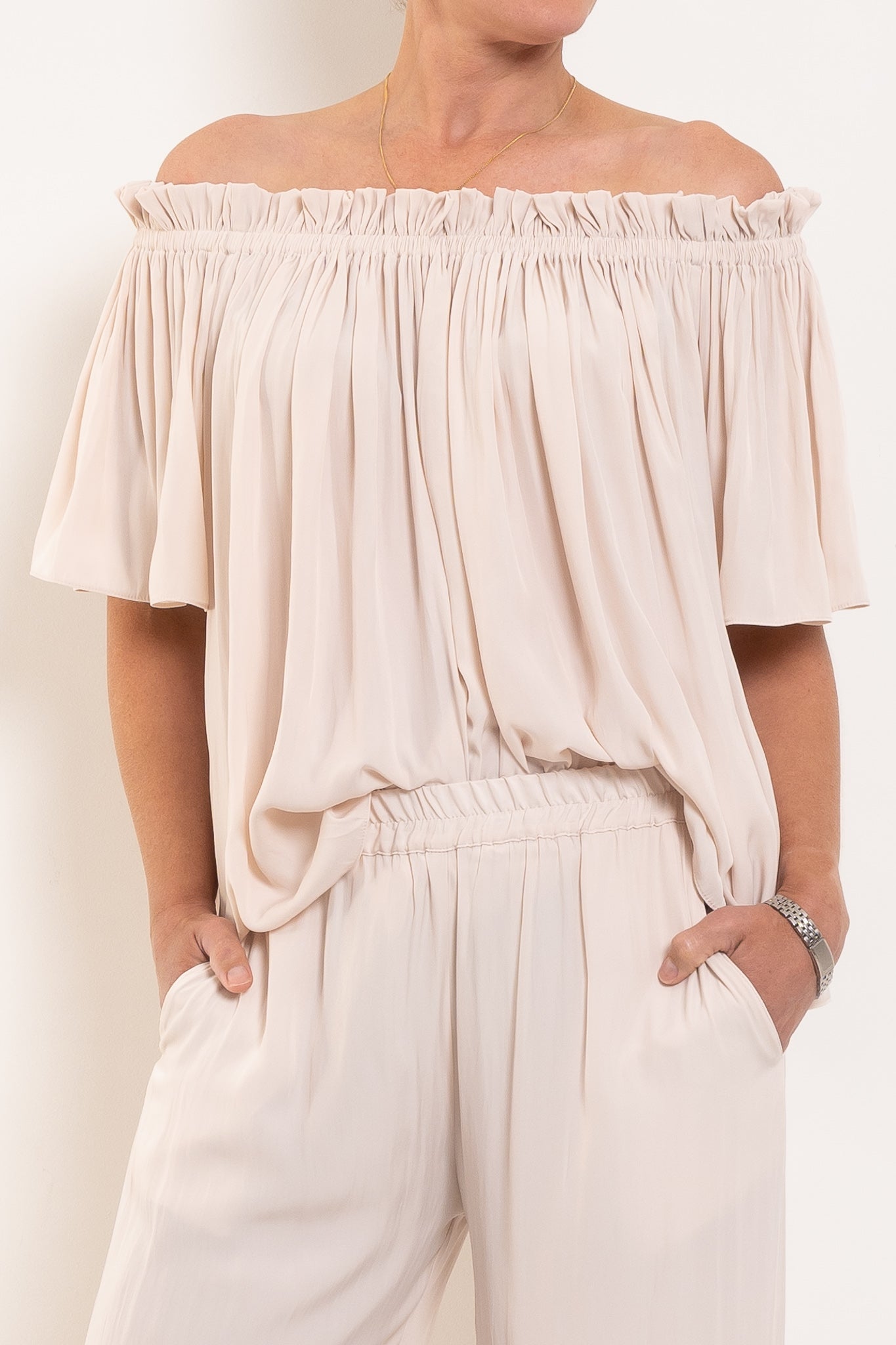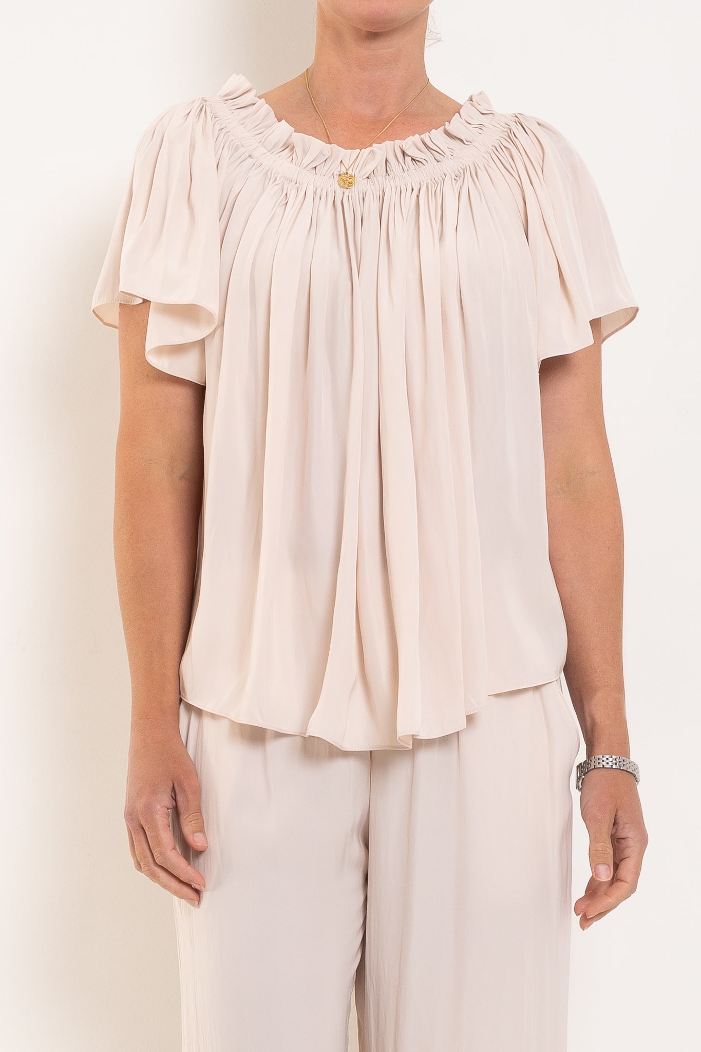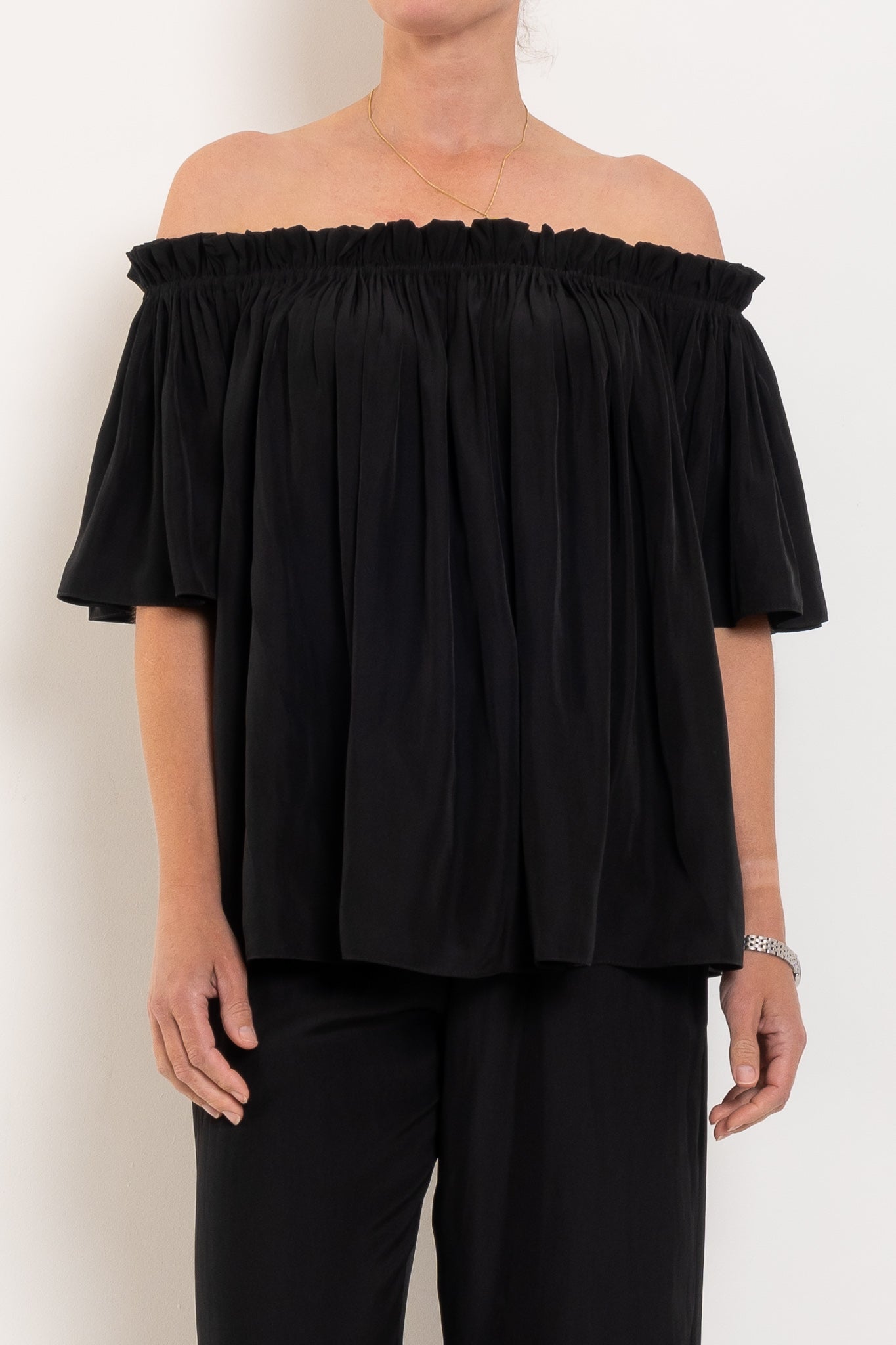 The Breeze Blouse is crafted in Mela Purdie’s luxurious Mache — a smooth Japanese technical fabric known for its soft drape, subtle sheen and incredible ease of wear. Designed with a softly elasticated neckline that can be worn on or off the shoulder, this piece is endlessly versatile. Voluminous sleeves with elastic cuffs add a touch of romance, while the relaxed fit skims the body without clinging. Light, polished and effortlessly chic, it’s a warm-weather staple you’ll reach for again and again.