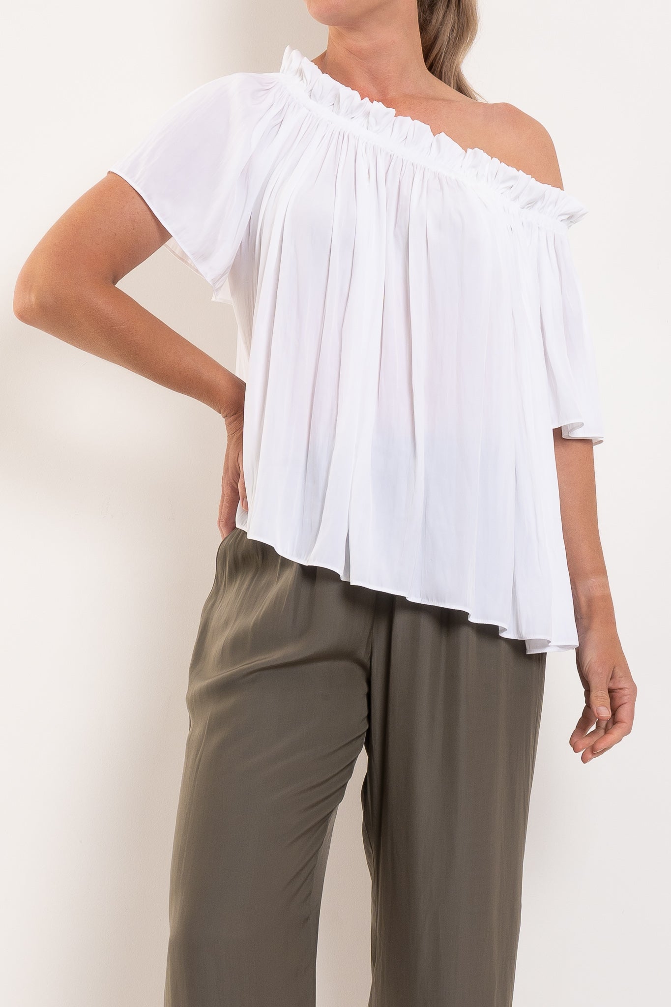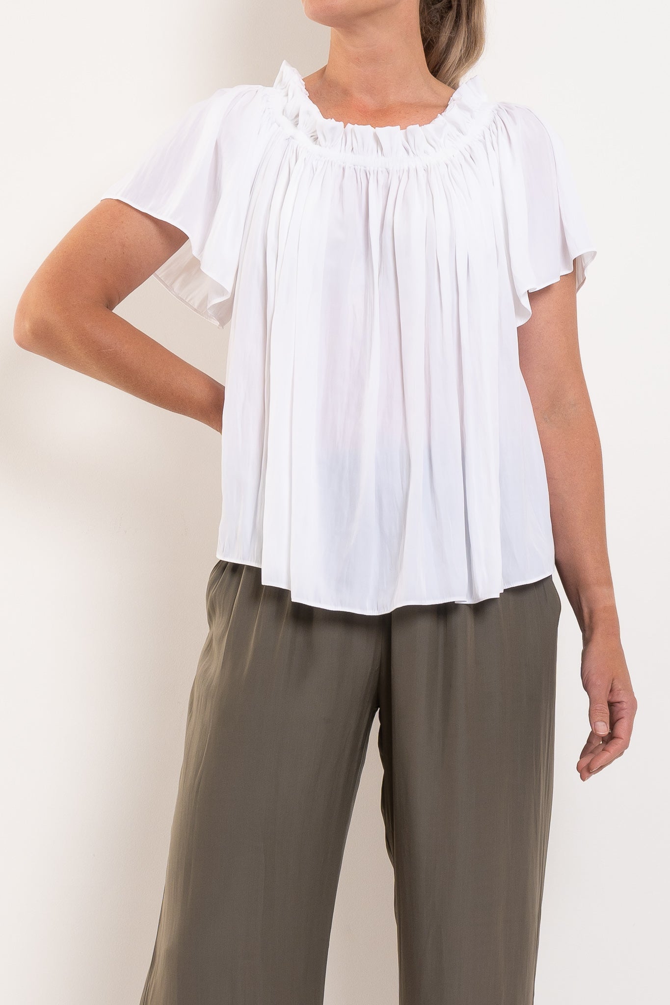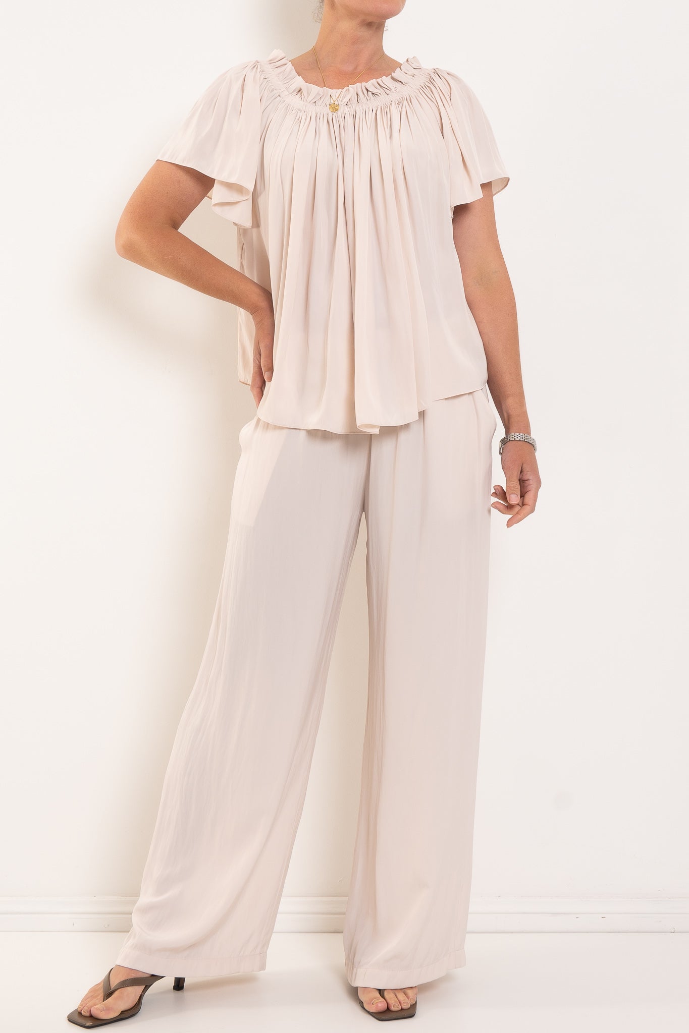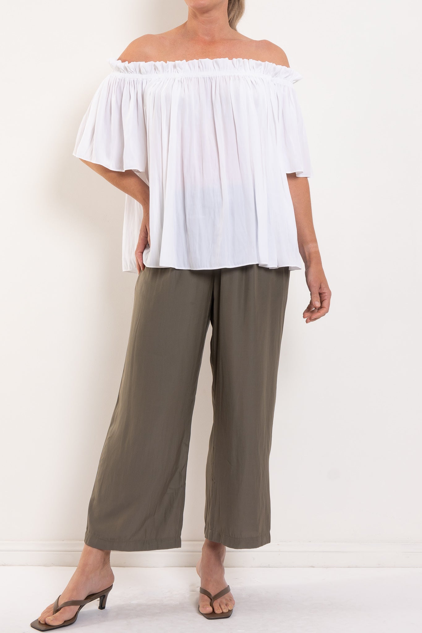 The Breeze Blouse is crafted in Mela Purdie’s luxurious Mache — a smooth Japanese technical fabric known for its soft drape, subtle sheen and incredible ease of wear. Designed with a softly elasticated neckline that can be worn on or off the shoulder, this piece is endlessly versatile. Voluminous sleeves with elastic cuffs add a touch of romance, while the relaxed fit skims the body without clinging. Light, polished and effortlessly chic, it’s a warm-weather staple you’ll reach for again and again.