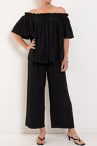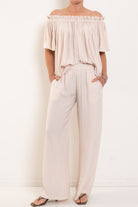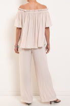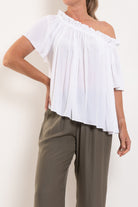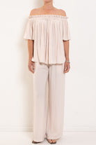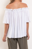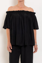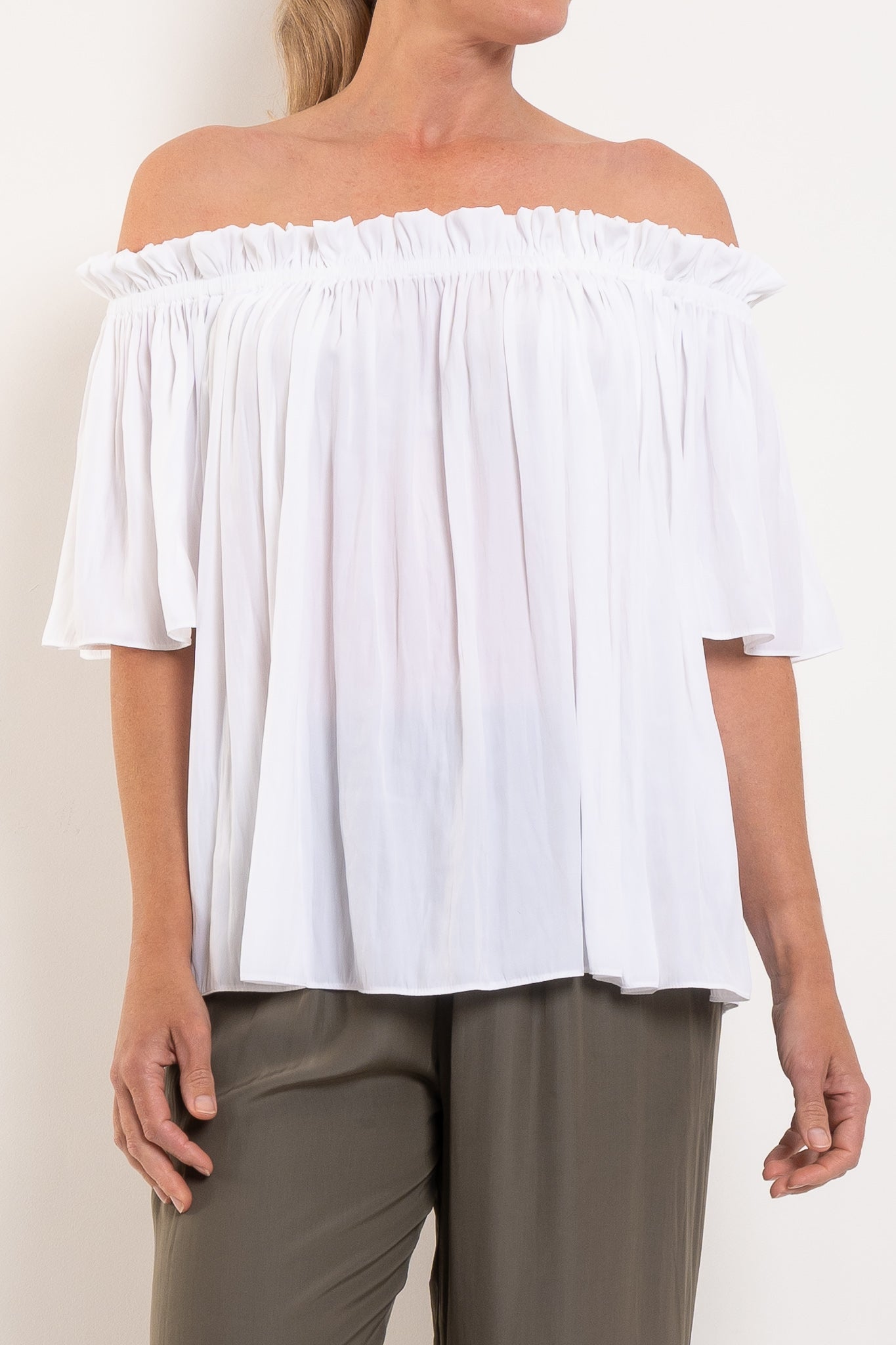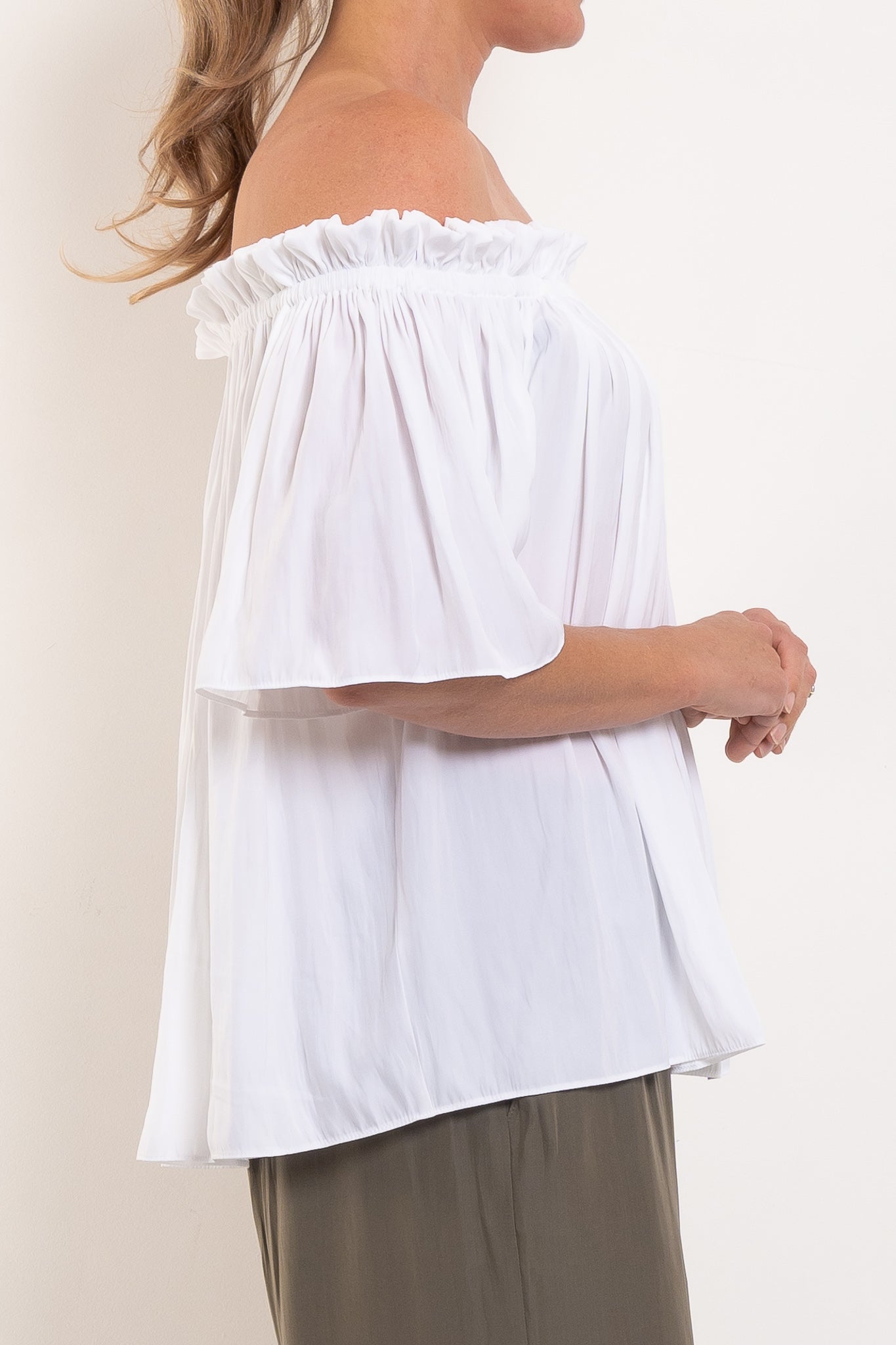 - Elasticated neckline with ribbon trim — wear on or off the shoulder