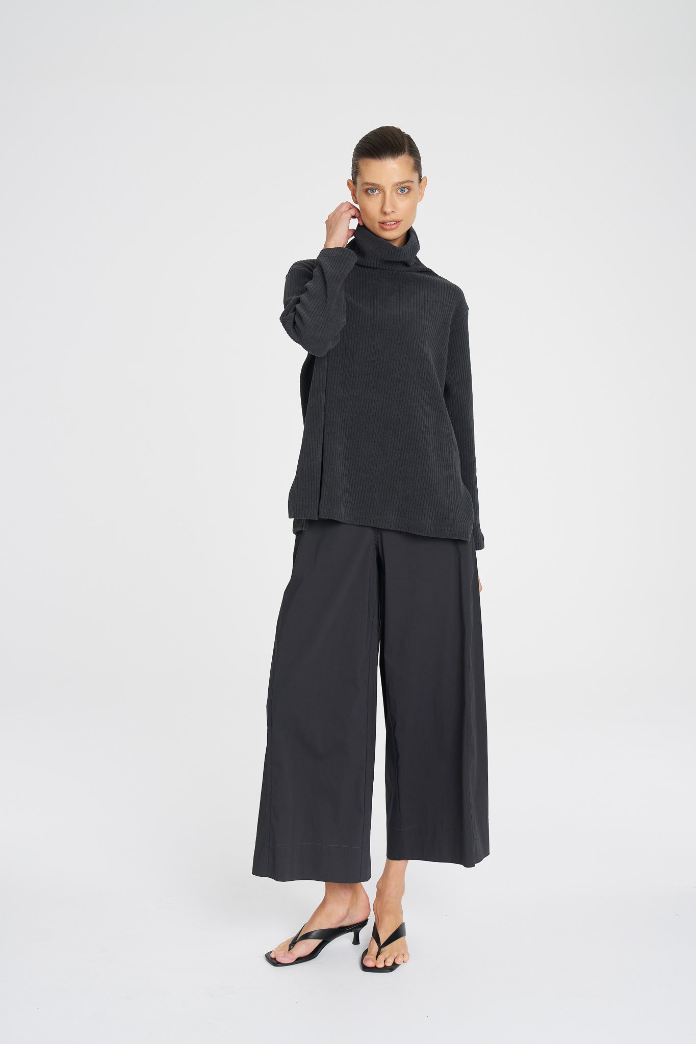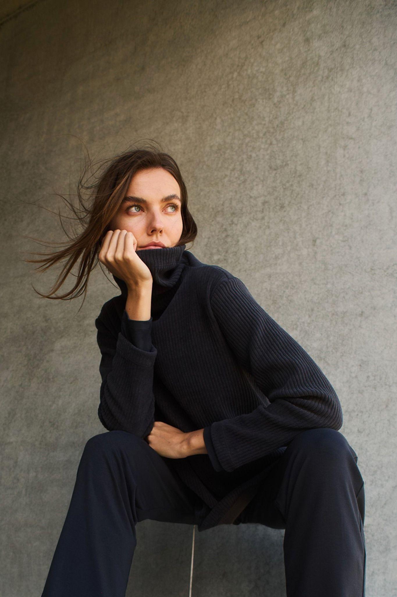 - Modern funnel neckline for cosy coverage and polish