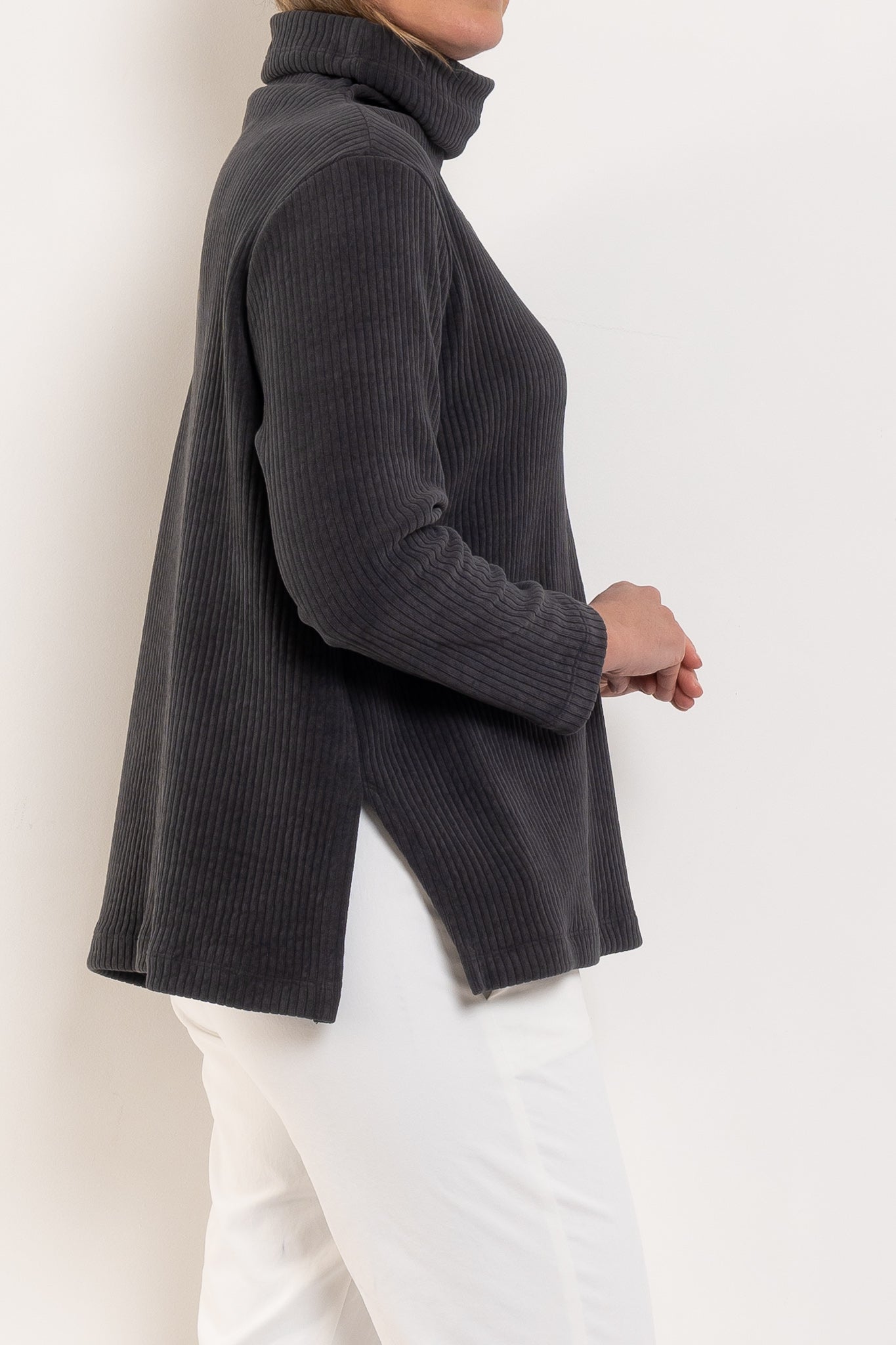 - Side seam splits for comfort and flattering movement