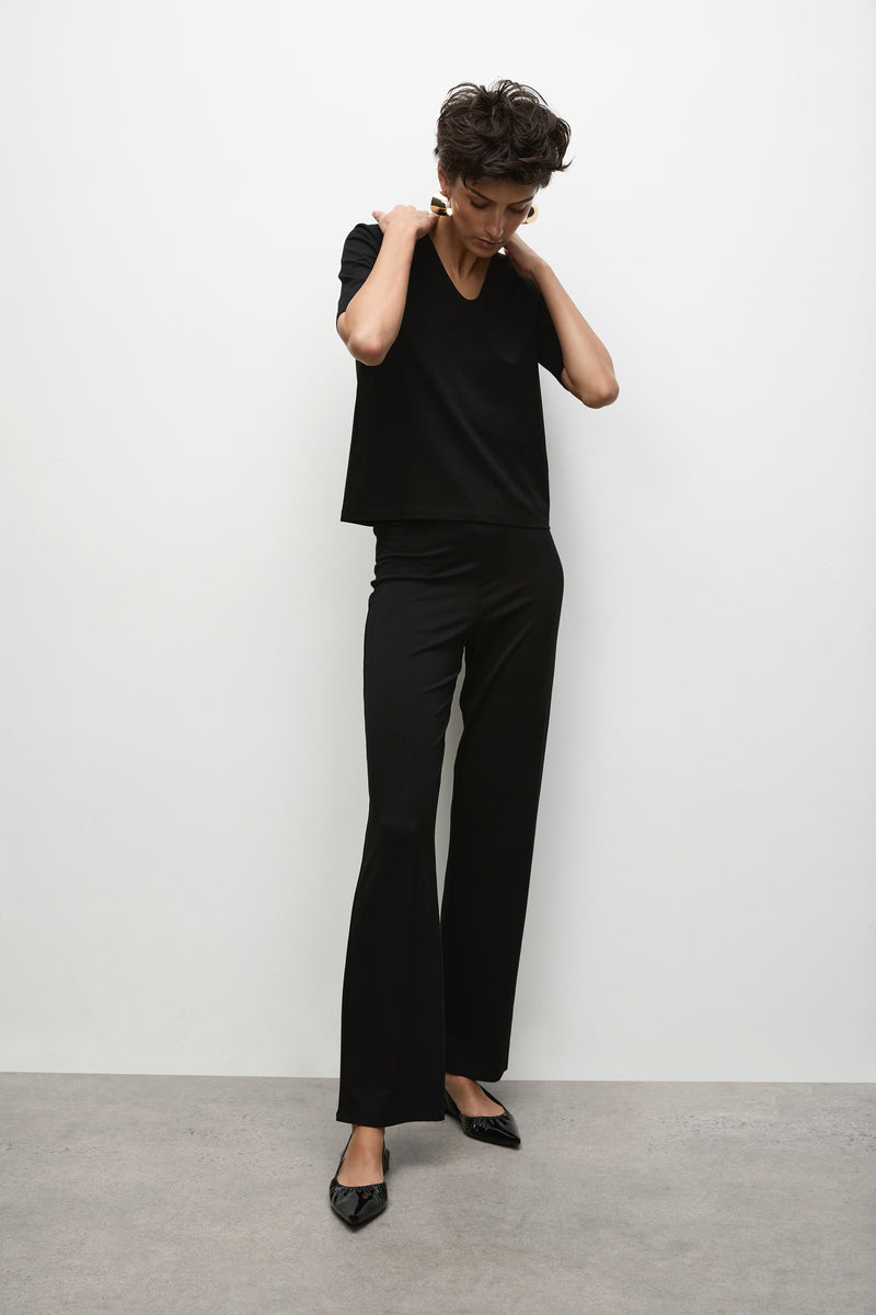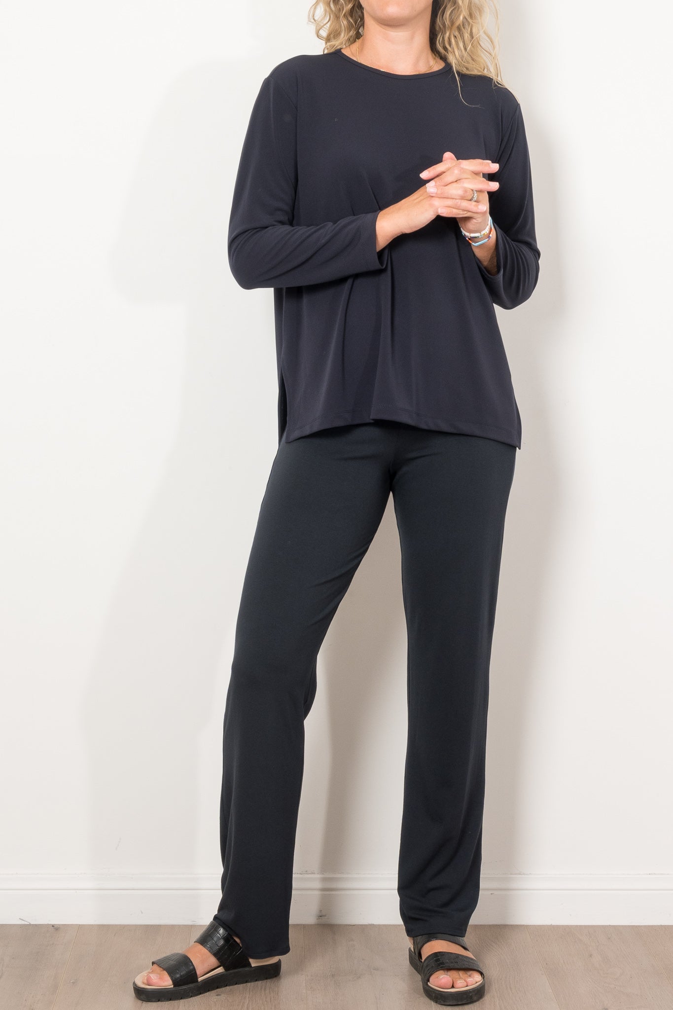 Mela Purdie’s best selling jersey pant. This classic long line pant has the perfect straight leg and an easy flat comfort fit 1cm elasticated waist, the slim waistband ensures a premium level of comfort, no uncomfortable digging in around the trunk. A great starting block to any wardrobe and the perfect soft leisure travel or loungewear piece. This style has been going strong for more than 10 years in the range, it's a true essential.