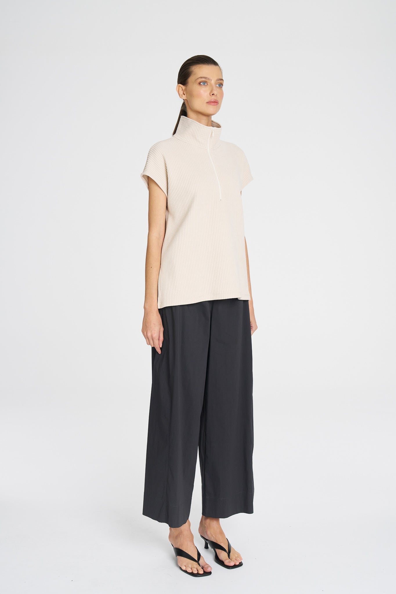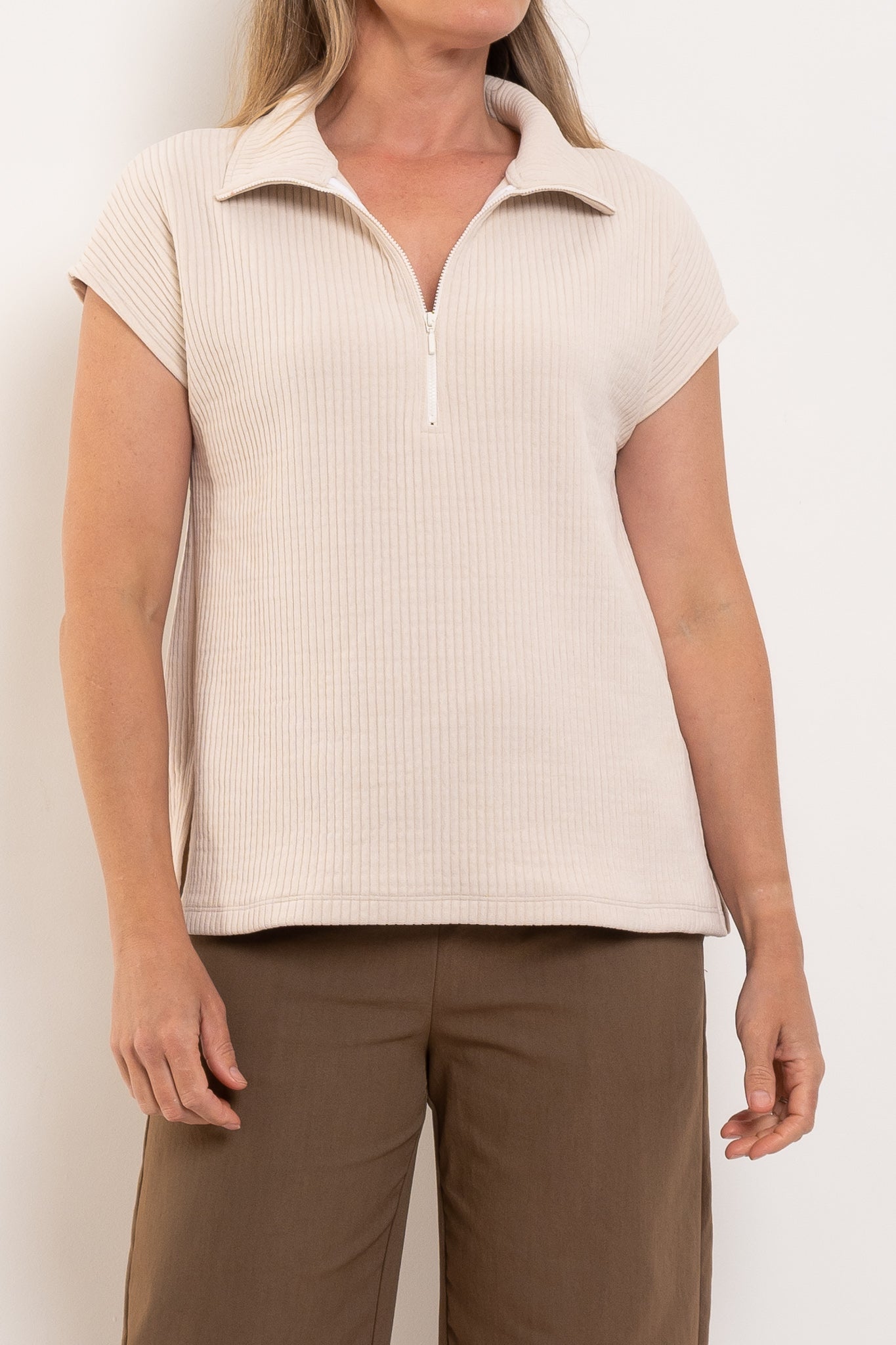 - Half zip front for adjustable neckline styling