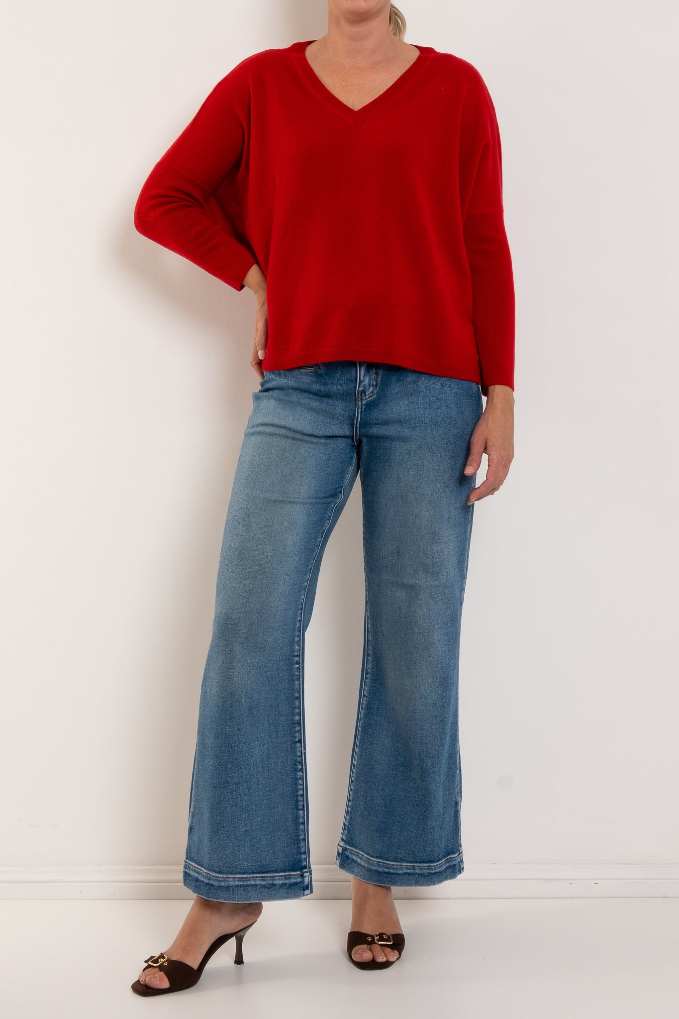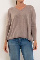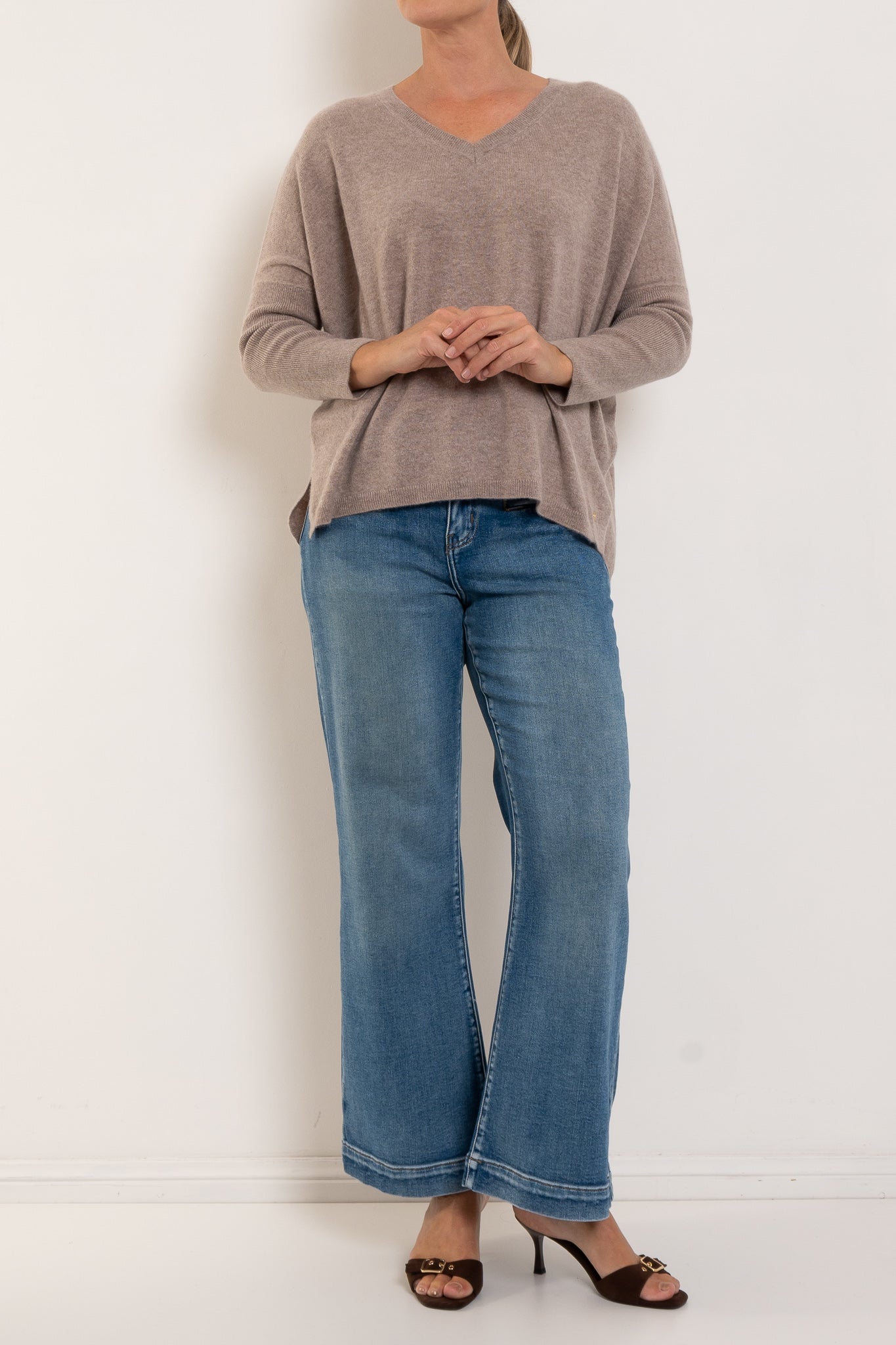 The Mia Fratino Margot Vee combines contemporary ease with refined craftsmanship. Its intentional oversized silhouette is balanced by a flattering V-neckline and dropped shoulders, creating a modern yet elegant profile. Crafted from pure natural fibres in a smooth, high-density knit, this piece offers understated luxury and versatility. Subtle ribbed detailing at the cuffs and hem adds definition to the relaxed fit, making it an essential foundation piece for any considered wardrobe.