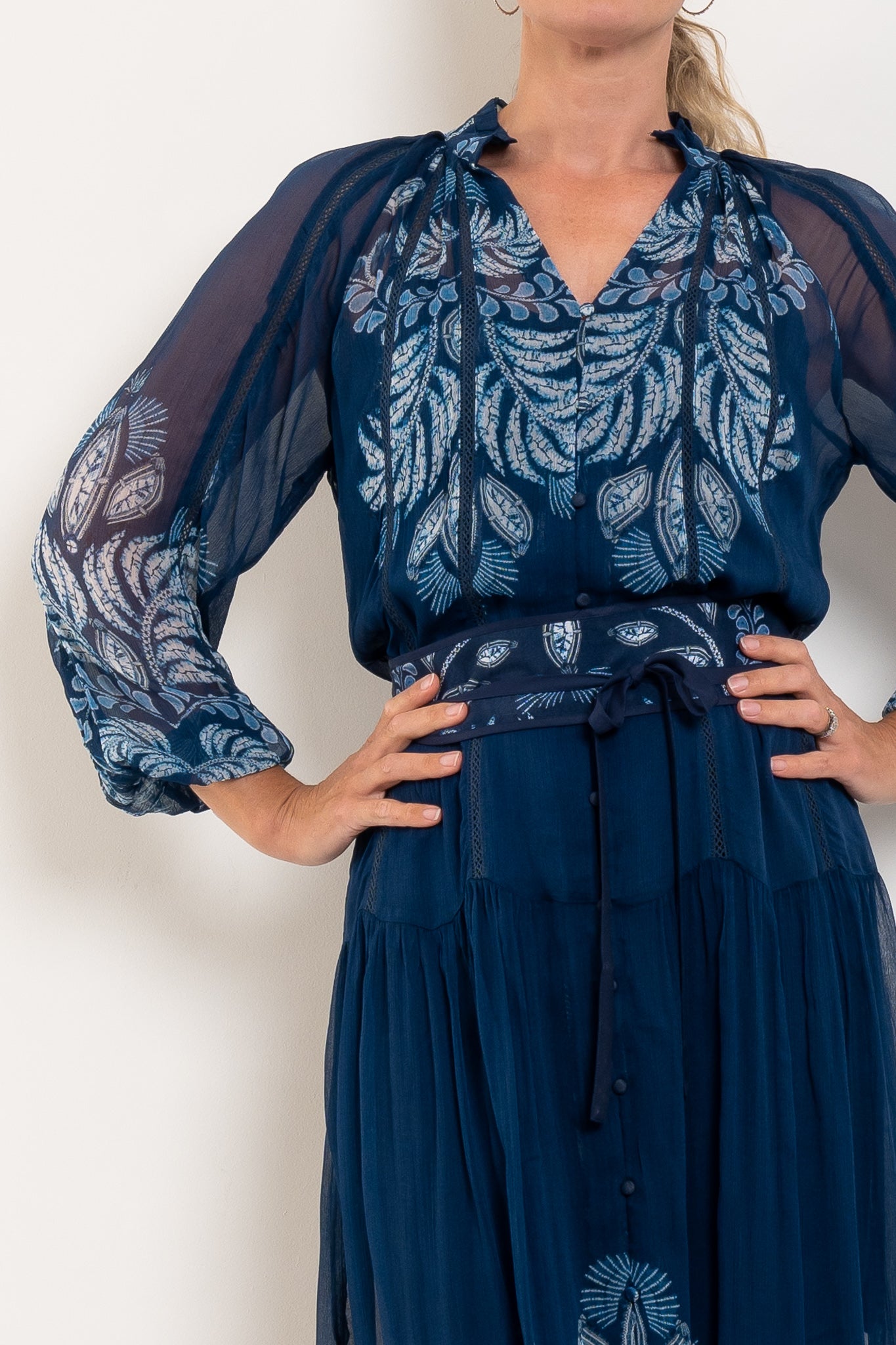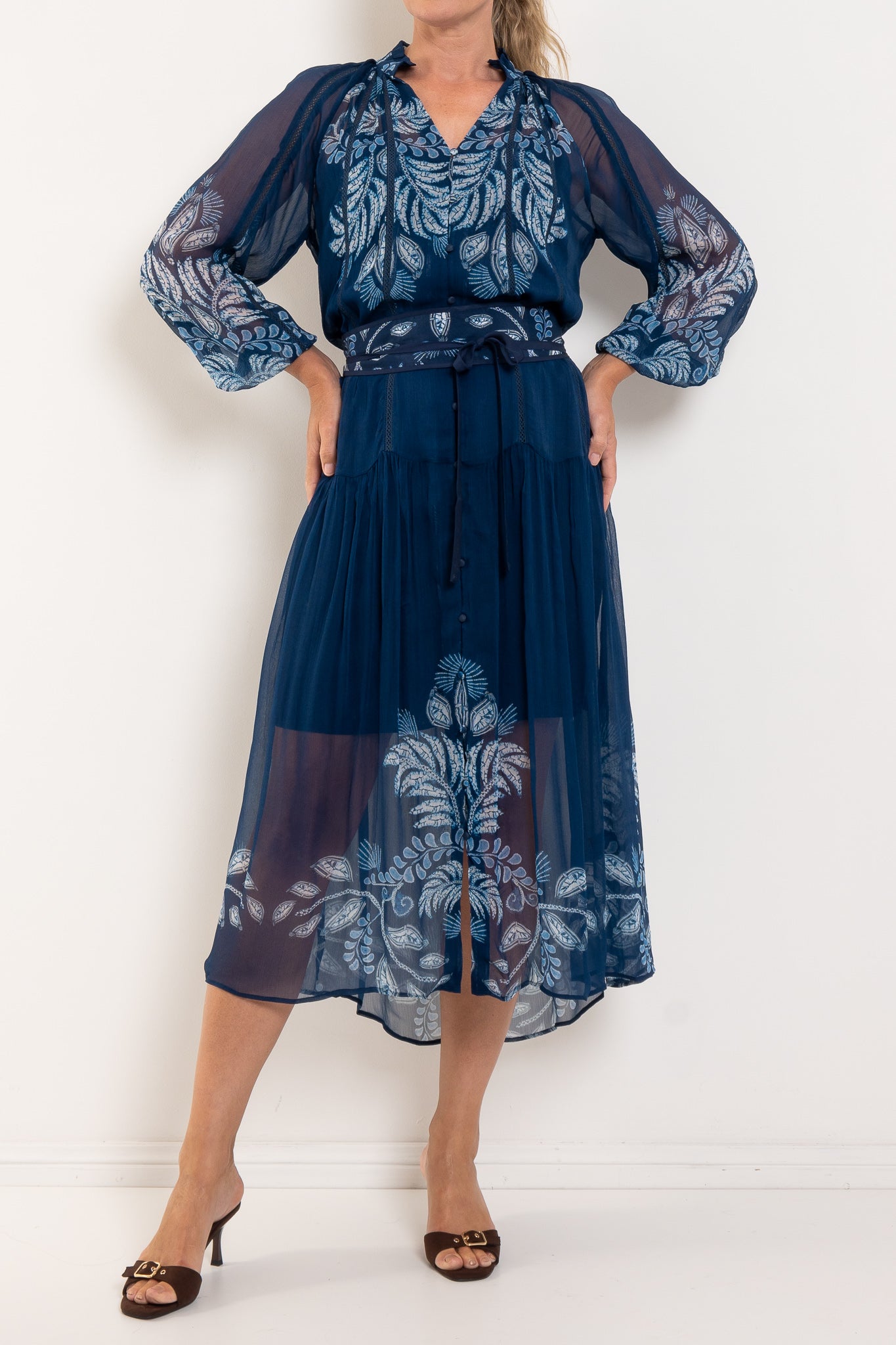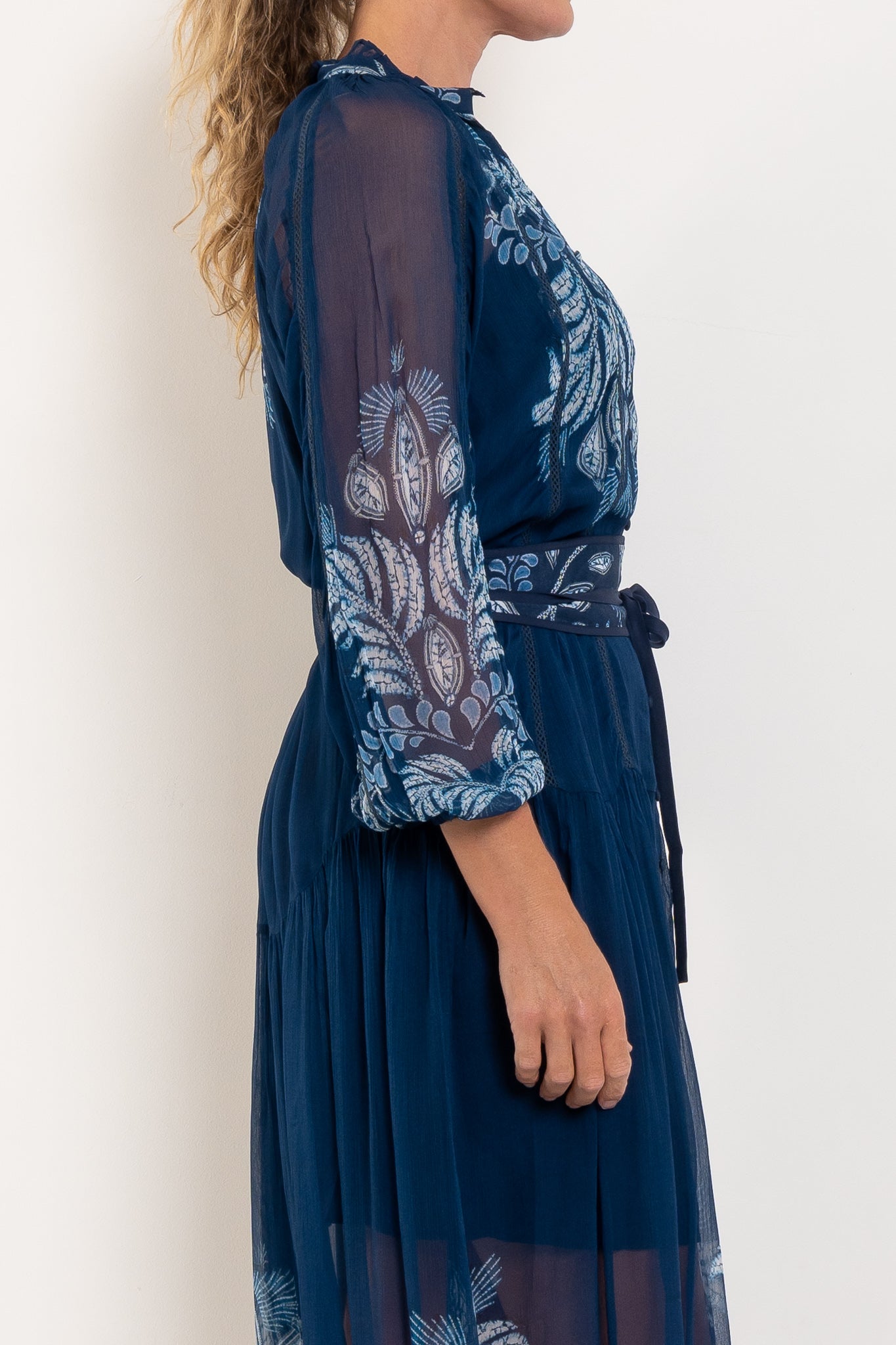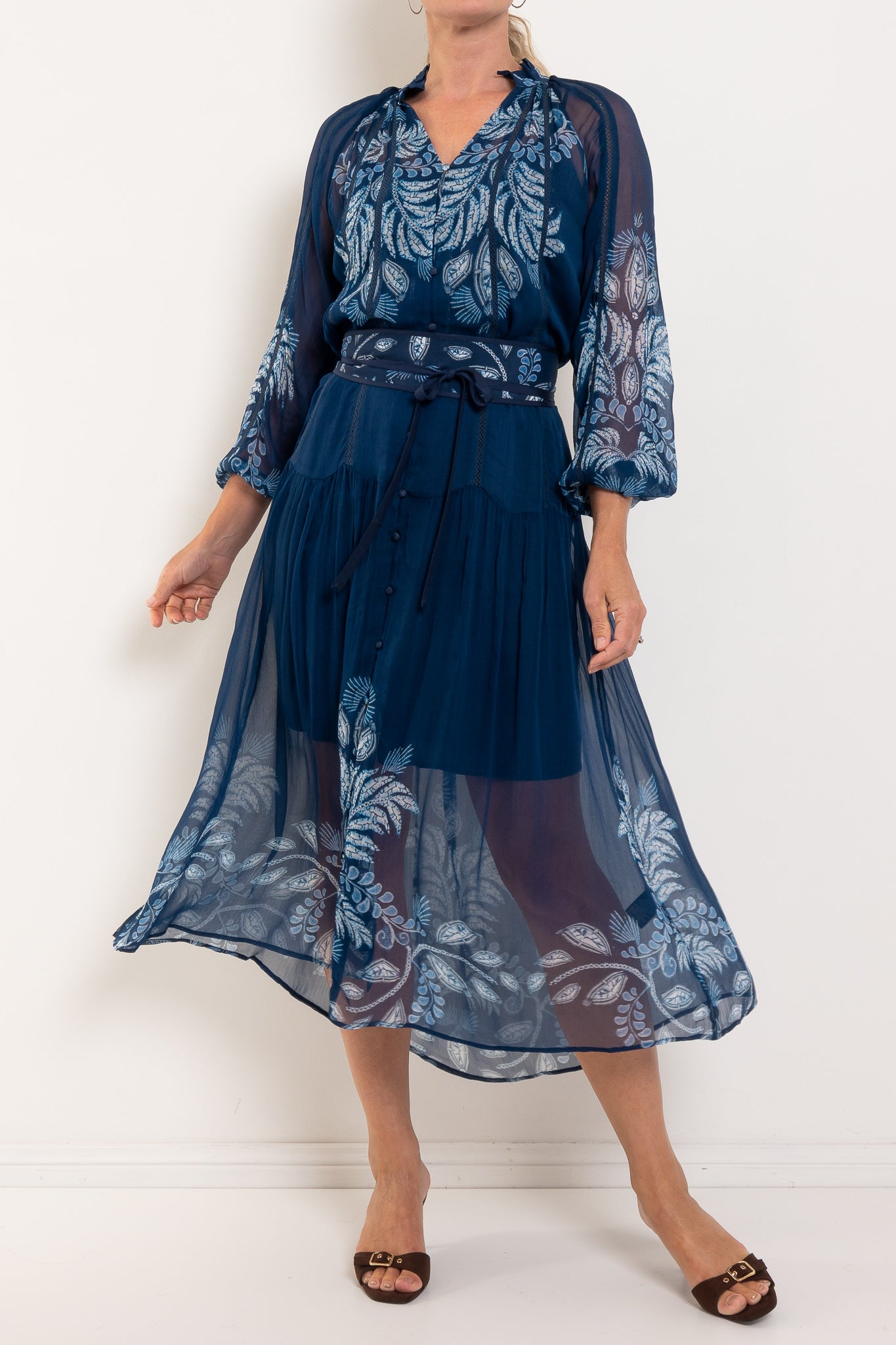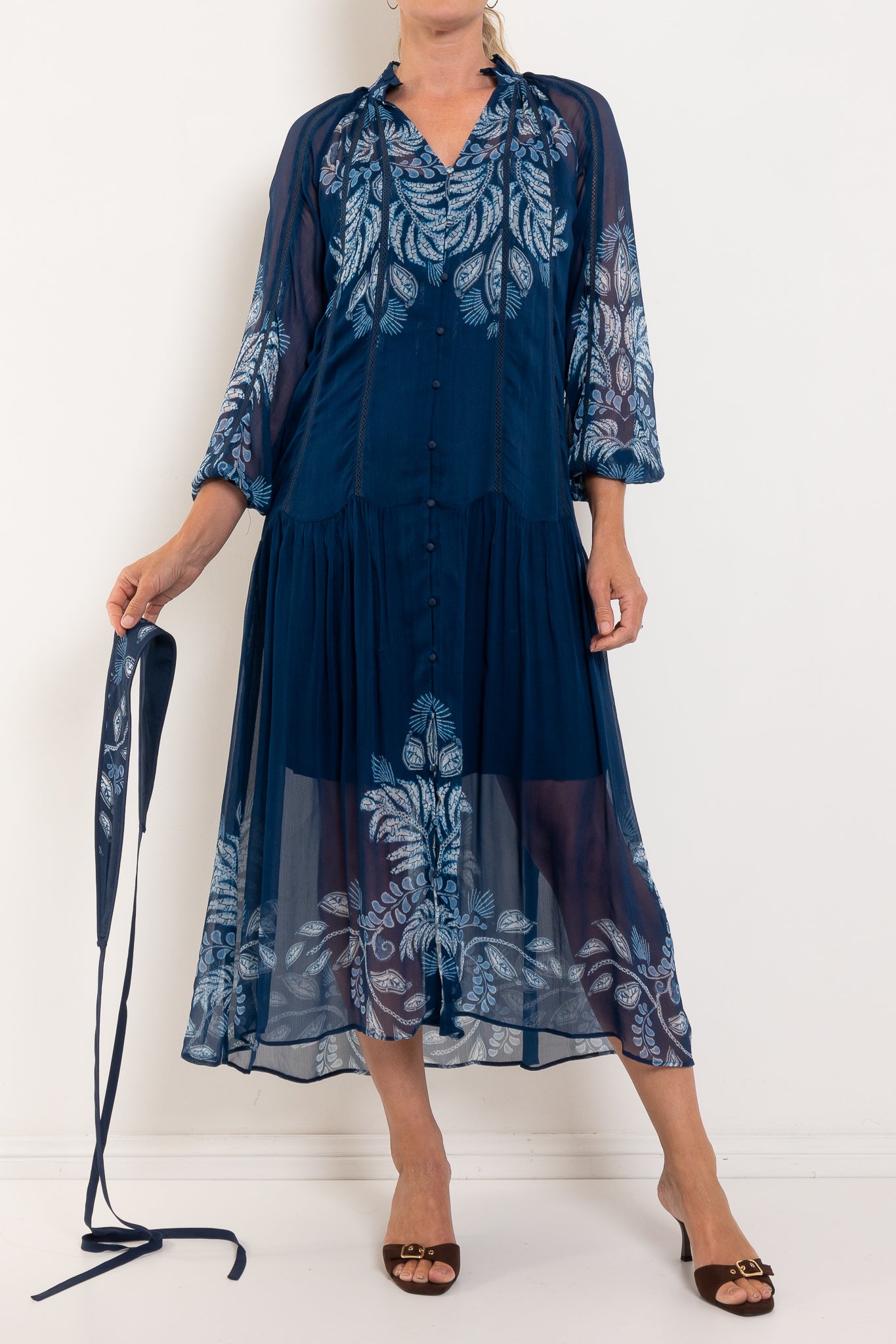 Once Was Sloane Moonlit Batik Print Chiffon Dress