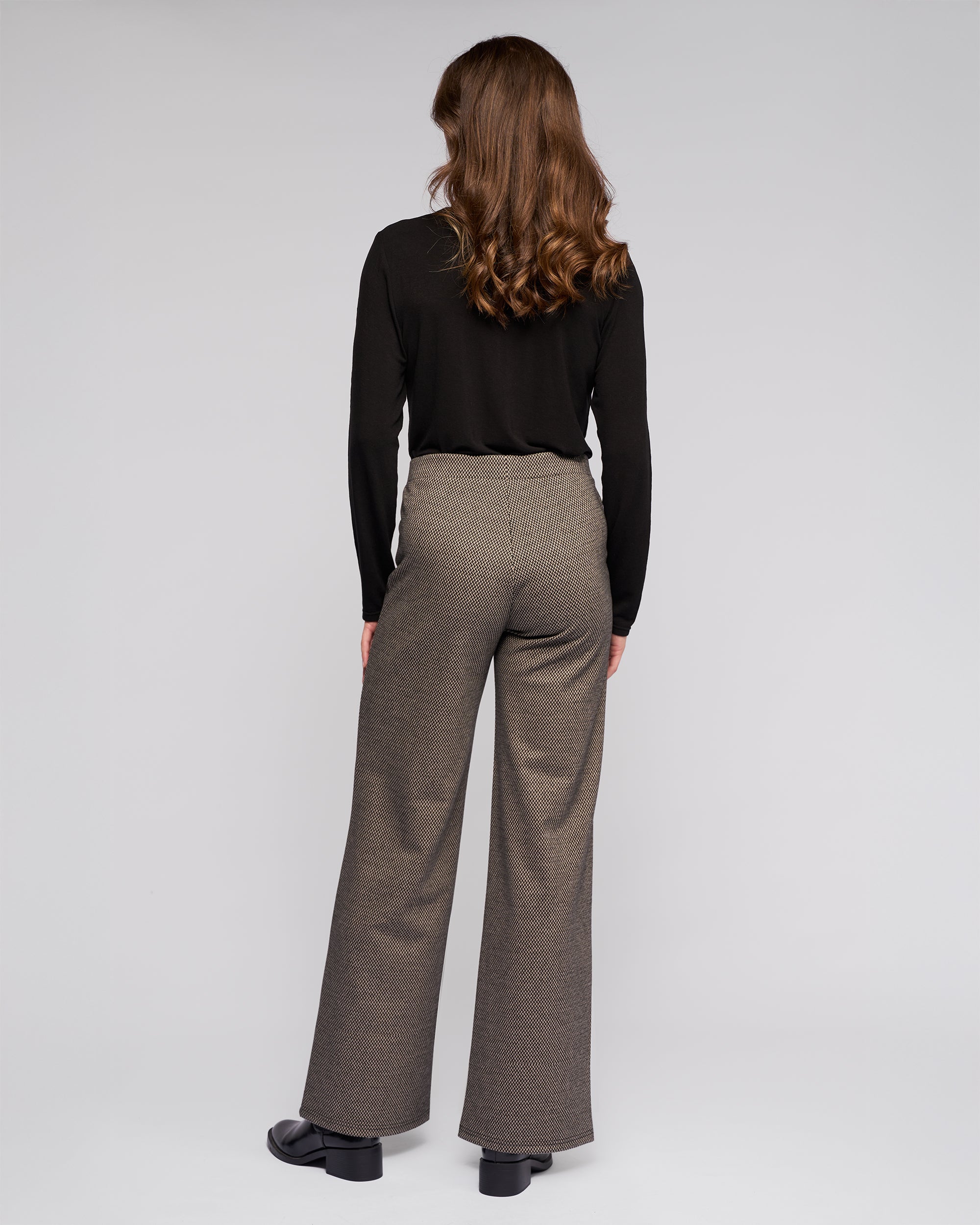 Effortless elegance meets everyday comfort in this full-length wide-leg pant. Crafted from Vassalli's signature soft stretch ponti fabric, it features a pull-on elasticated waistband for easy dressing and a streamlined silhouette without pocket detailing. The relaxed leg drapes beautifully while the subtle stretch ensures all-day wearability. A versatile wardrobe essential that transitions seamlessly from casual to polished occasions.
