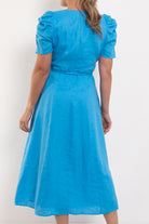 Experience understated luxury with the Zoe Kratzmann Glimmer Dress, expertly tailored in breathable linen. The elegant V-neckline draws the eye inward with carefully placed front gathers that extend into softly bloused sleeves, creating dimension and grace. Balanced by a fitted, sculpted bodice, the A-line skirt flows with gentle movement, offering both comfort and flattering proportions. This thoughtfully designed piece celebrates the art of effortless sophistication, making it an essential addition to any refined wardrobe.
