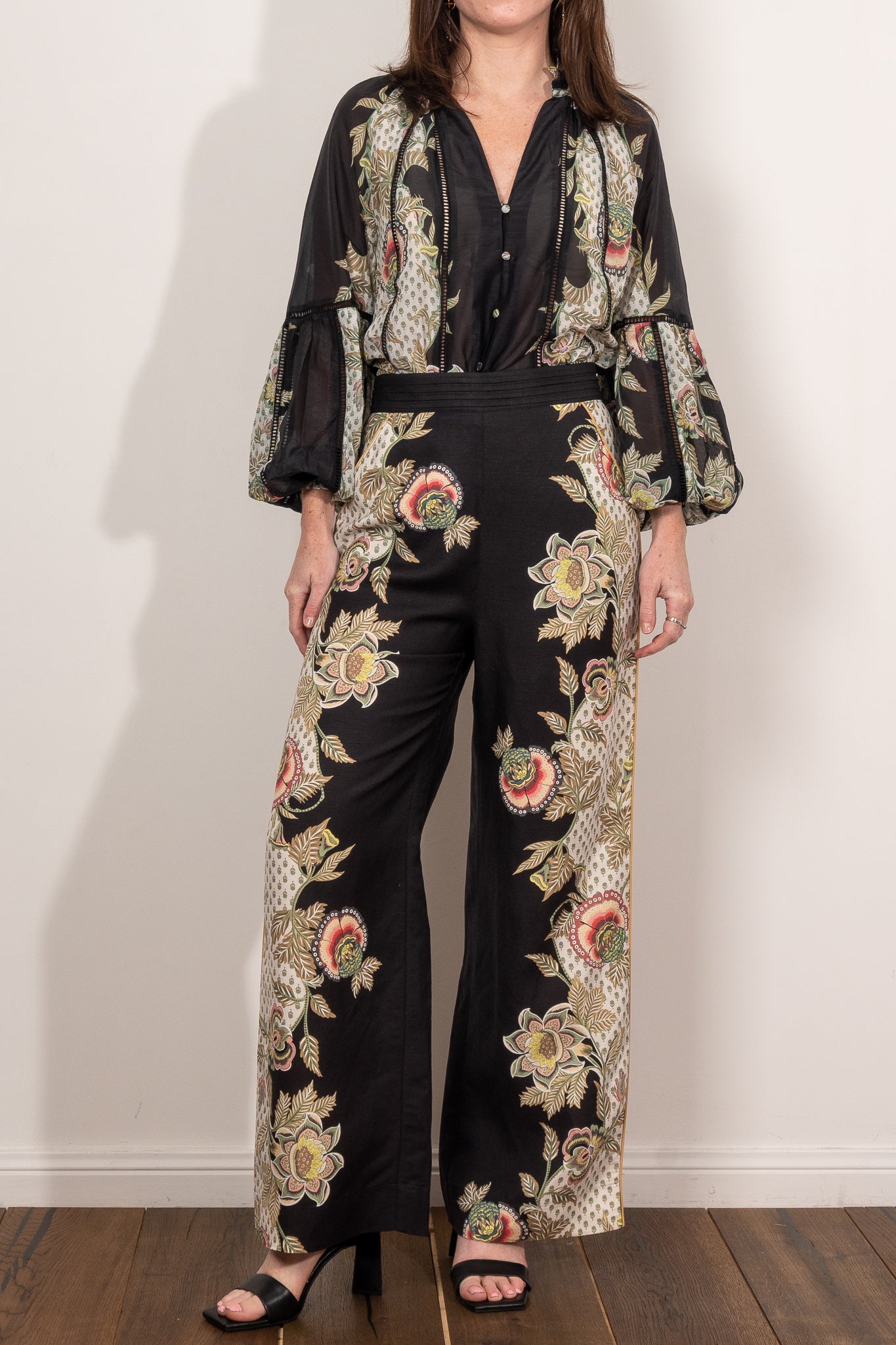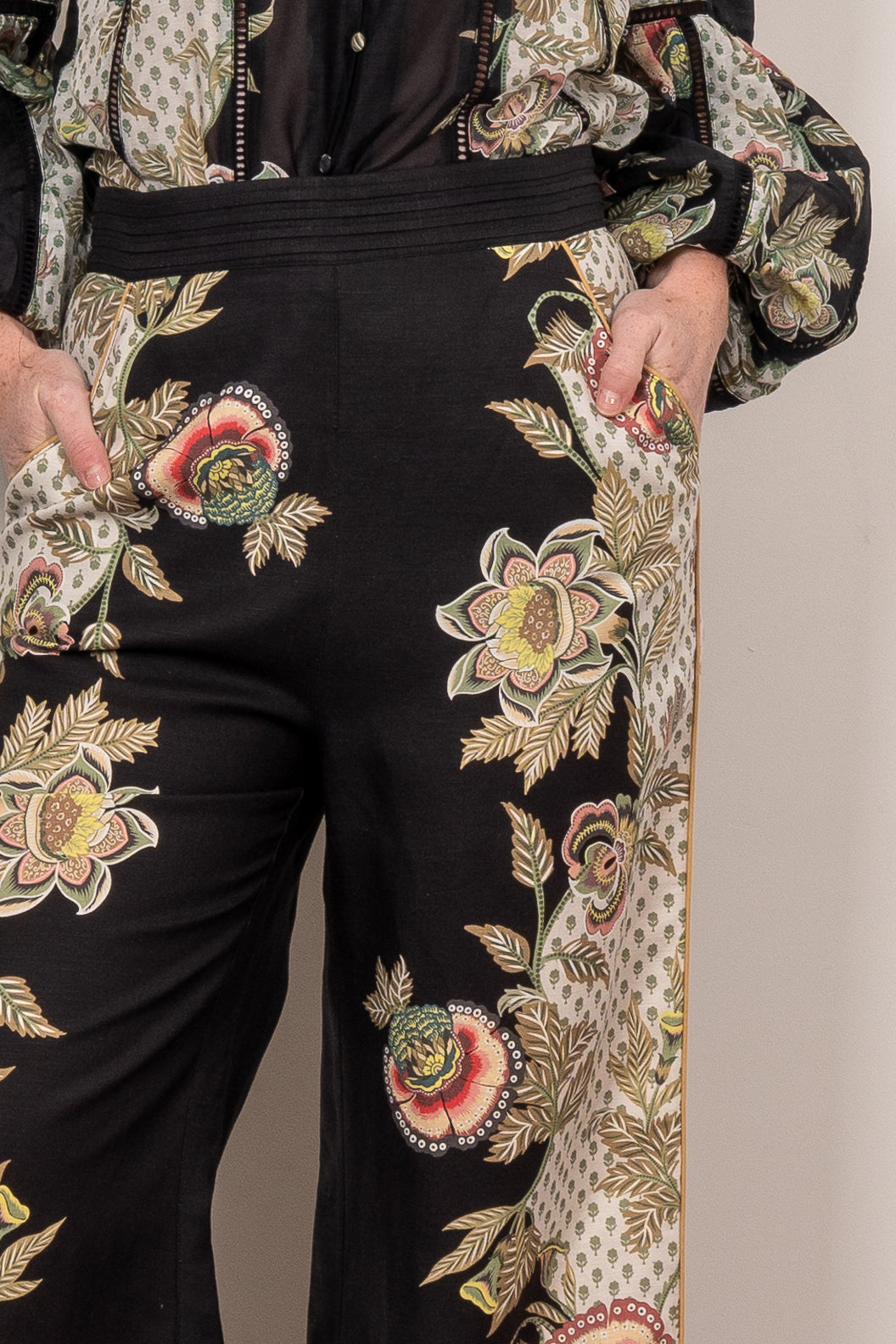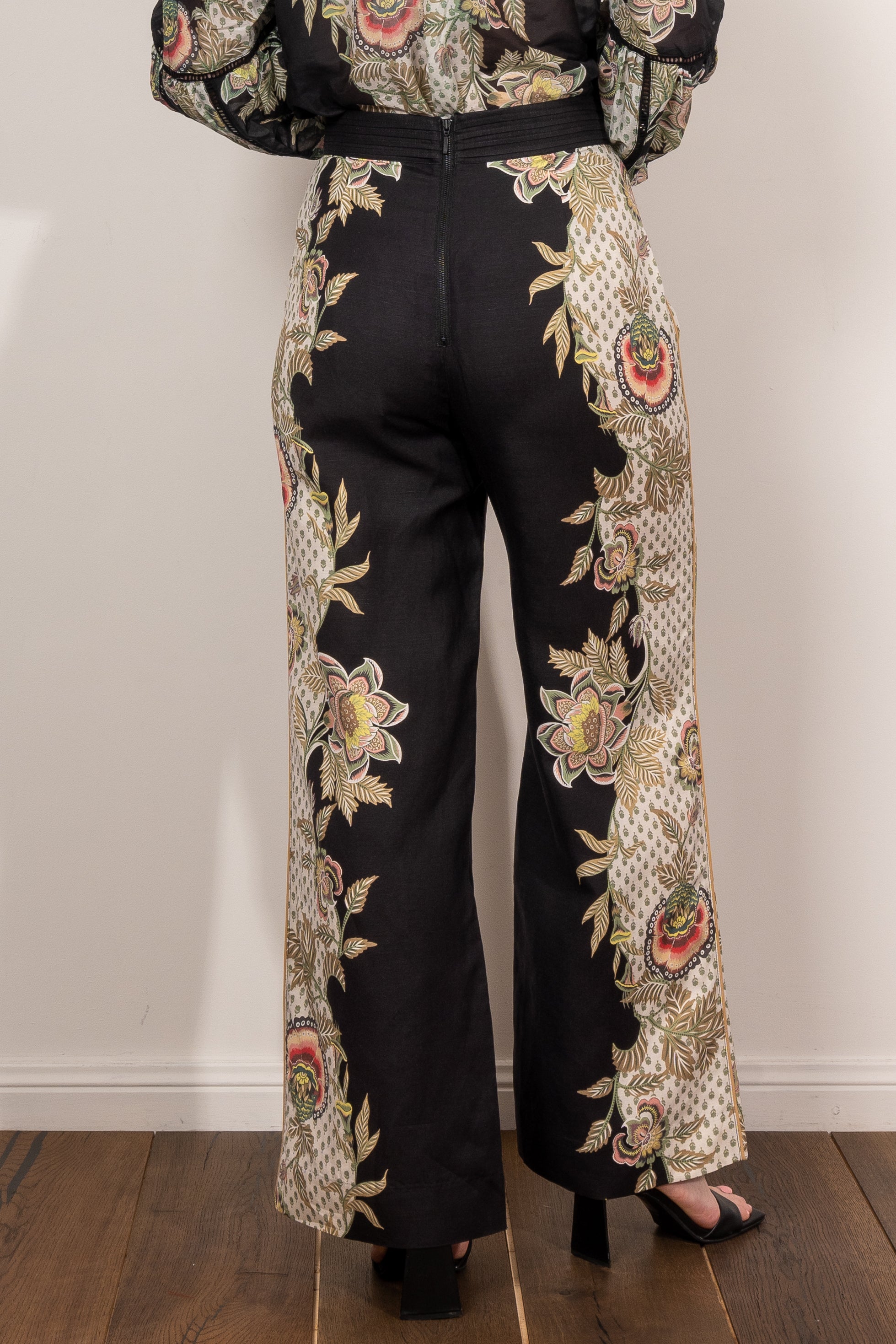 Add artistic elegance to your wardrobe with the Once Was Merida Linen Viscose Pant. A high-waisted, wide-leg silhouette offers effortless sophistication, while the Mariposa Nero print and embroidered seams add romance and intrigue. Crafted from a breathable linen-viscose blend, perfect for movement and structure.
