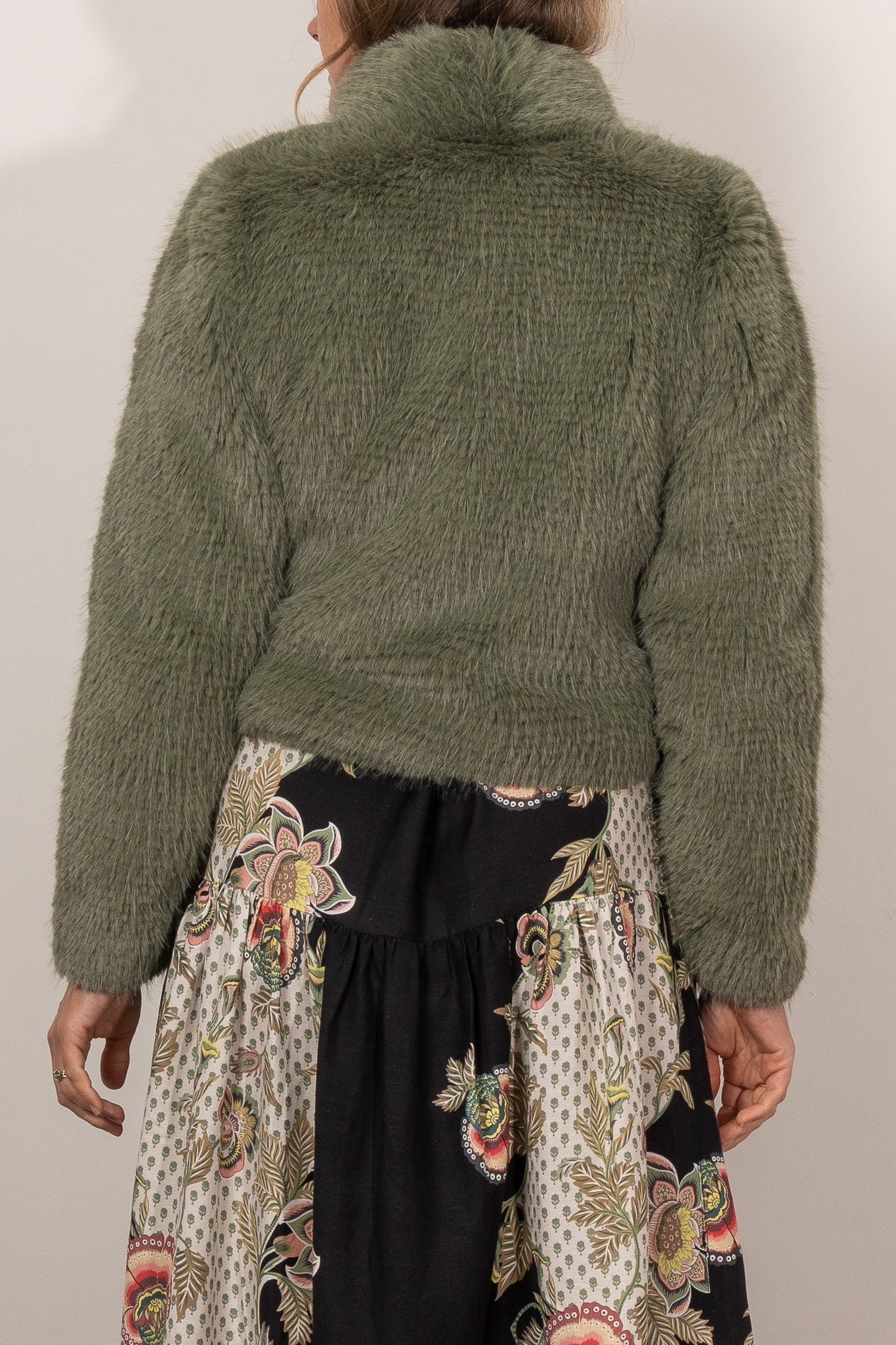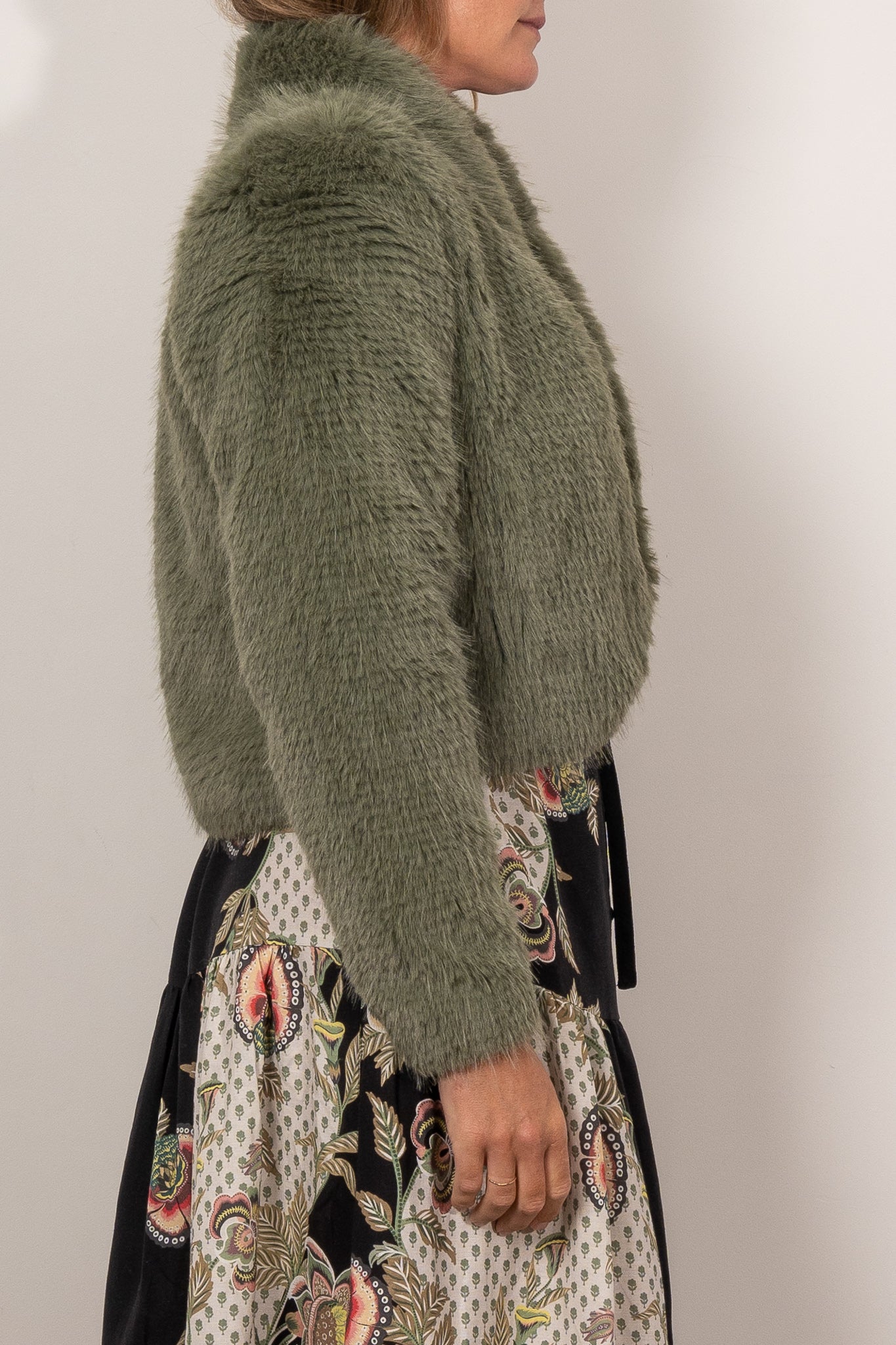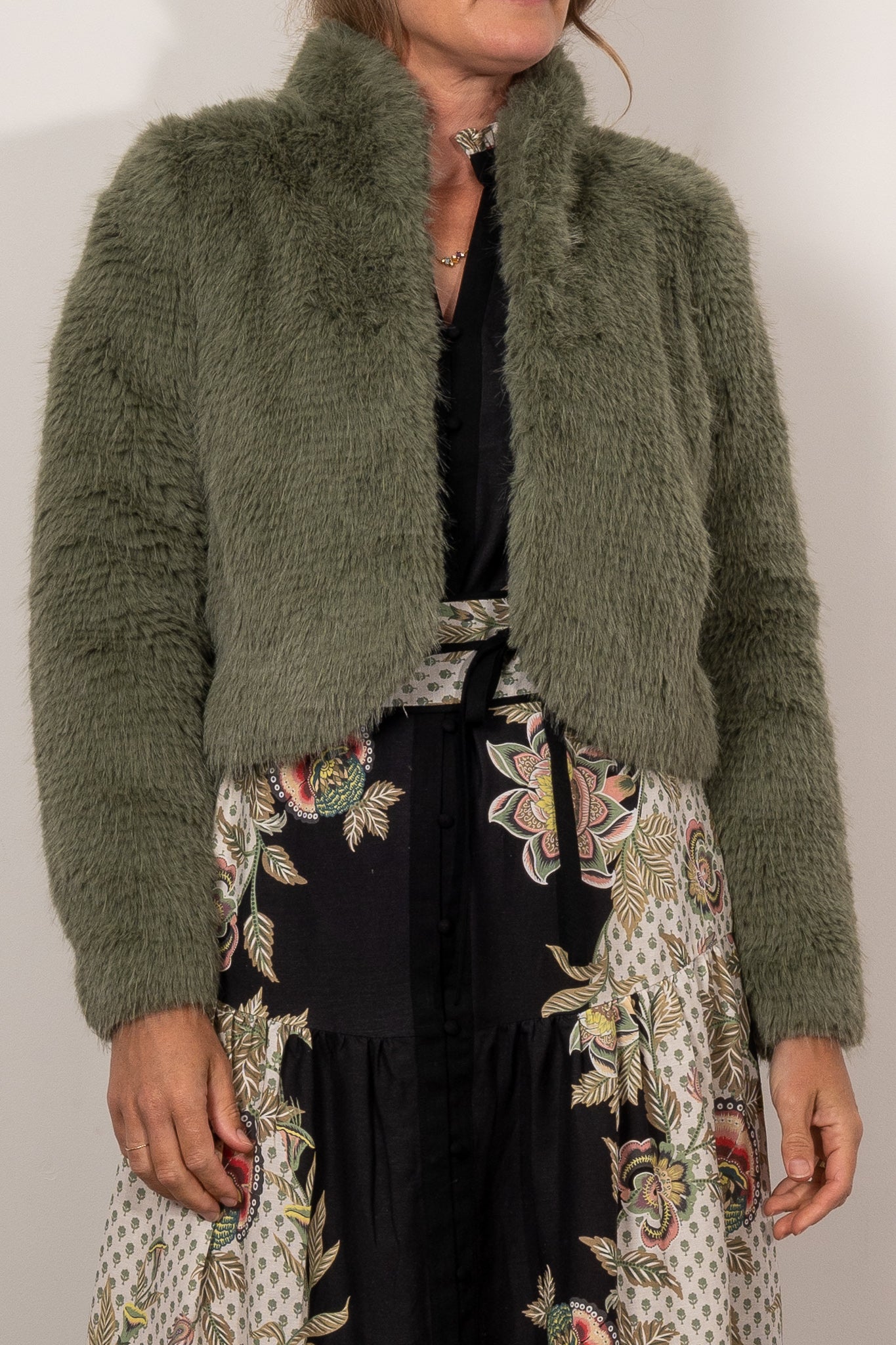 Embrace luxury with the Once Was Reina Faux Fur Cropped Jacket in Jade Mist. This statement piece exudes sophistication and modern elegance with its ultra-soft faux fur and muted jade mist hue. Perfect for transitioning through seasons, the Reina adds a touch of refined glamour to any outfit.