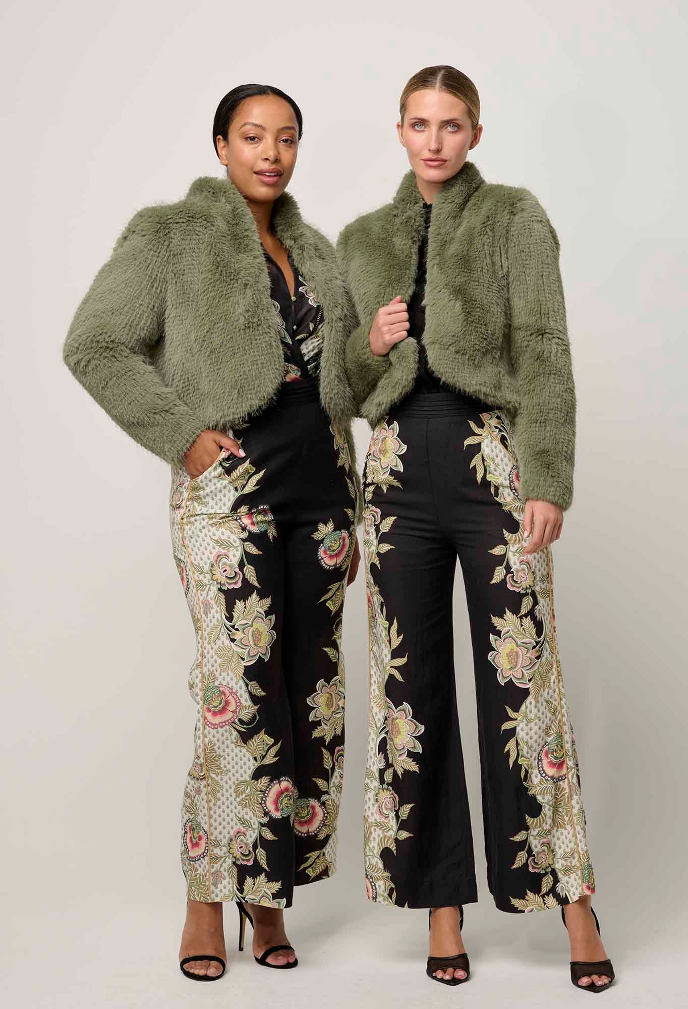 Embrace luxury with the Once Was Reina Faux Fur Cropped Jacket in Jade Mist. This statement piece exudes sophistication and modern elegance with its ultra-soft faux fur and muted jade mist hue. See full product description below for fabric and fit info.