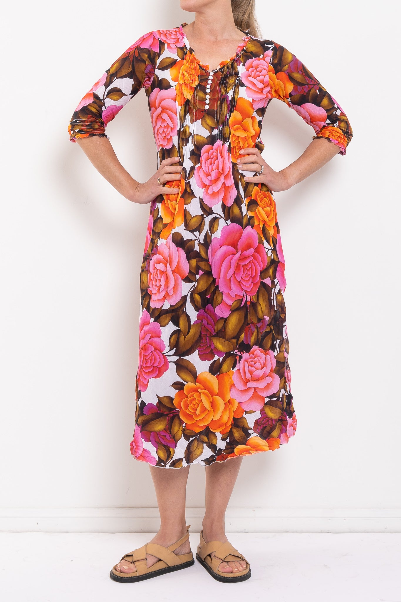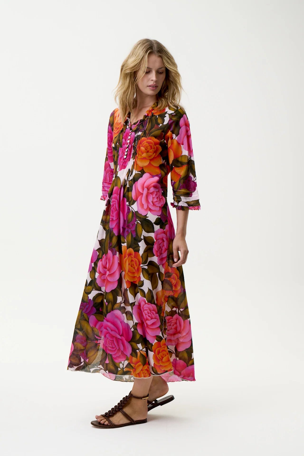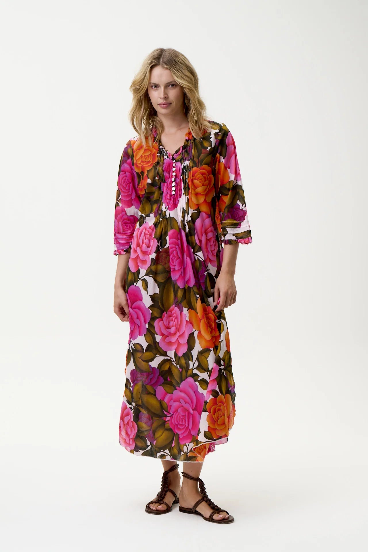The Long Poppy Dress is a One Season favourite, reimagined in the vibrant Deia Roses print. Designed with a flattering v-neckline and button-through front, it offers a relaxed yet polished silhouette that skims the figure without clinging. The maxi length creates a sense of easy drama, while the lightweight cotton fabric ensures cool comfort, whether you’re strolling through the city or holidaying by the sea. It’s an endlessly versatile piece you’ll wear on repeat all season long.