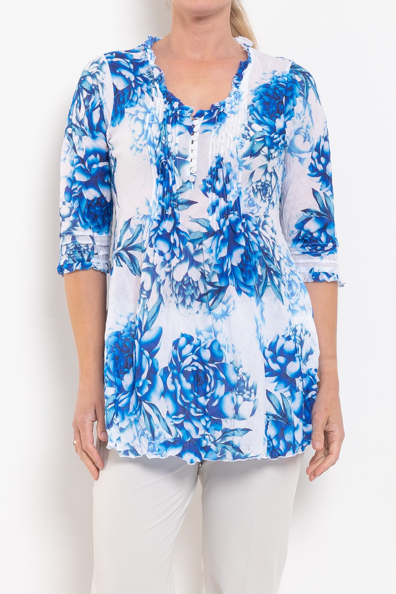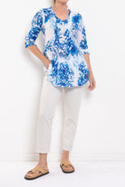 The Kefalonia Poppy Top from One Season is crafted in airy 100% cotton for breathable comfort and effortless polish. Featuring the exclusive Kefalonia print, this relaxed silhouette is finished with a soft v-neckline and lightly flared sleeves for ease and femininity. Designed to sit neatly over shorts, pants, or skirts, it’s the kind of top that slips seamlessly into your everyday wardrobe while adding a statement finish. Perfect for coffee dates, holidays, or casual Fridays in the office.