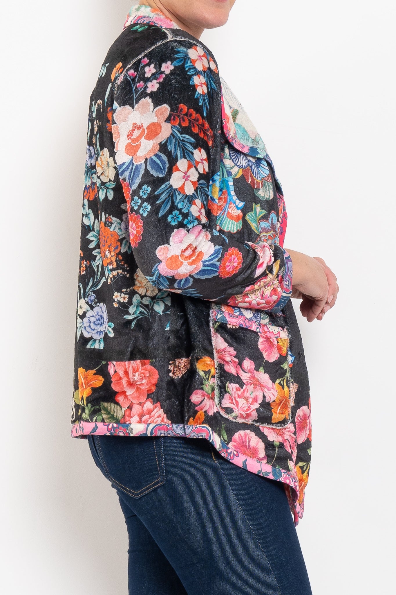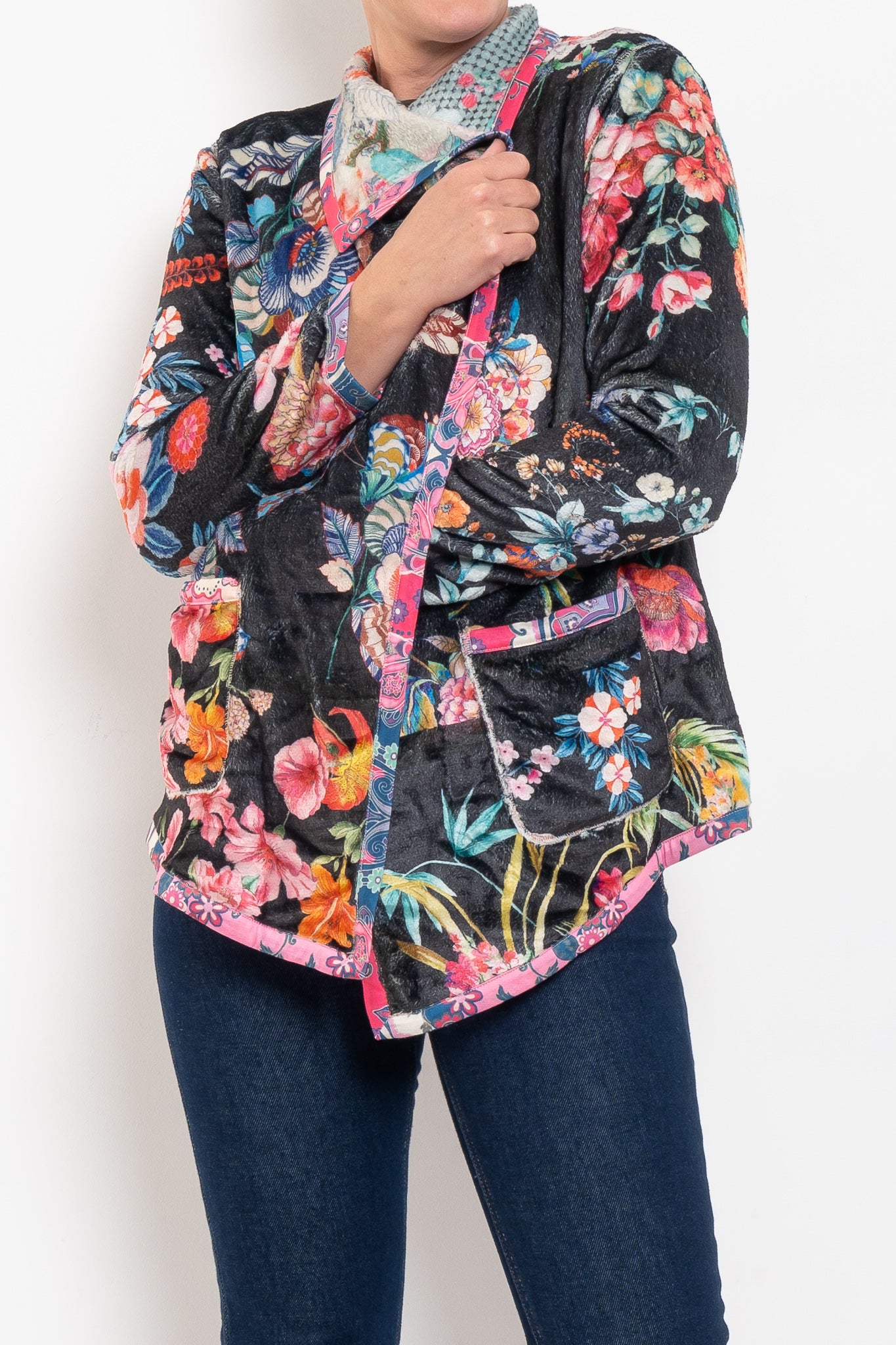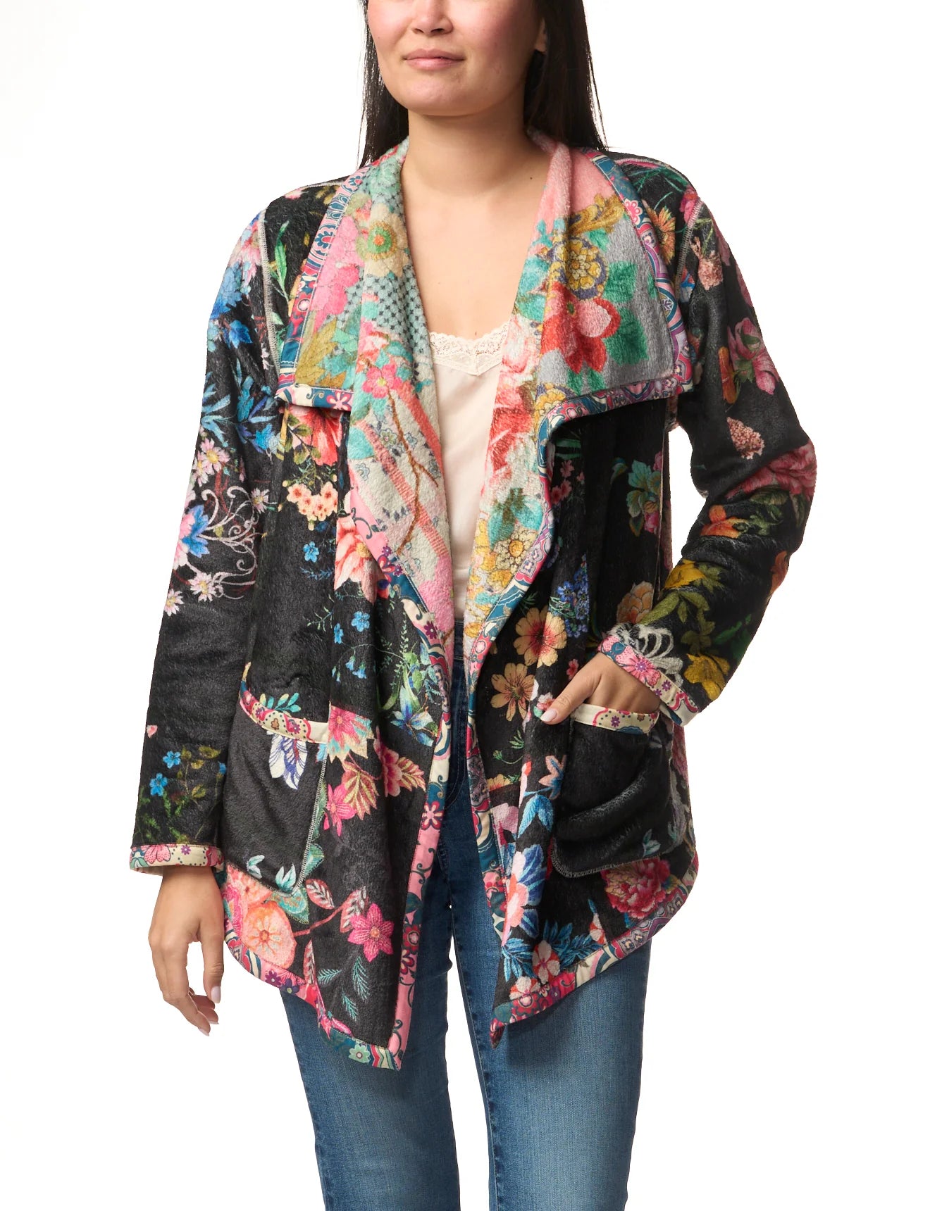 A true statement layer, the Joan Wrap Sherpa Jacket combines warmth with artistry. Featuring Johnny Was’s signature bold floral prints, this jacket is fully reversible, giving you two striking looks in one piece. Crafted with a soft sherpa finish, it wraps effortlessly for all-day comfort and style. Perfect for adding colour and personality to cool-weather outfitting, it’s a versatile layer that works over denim, dresses, or tailored pants.
