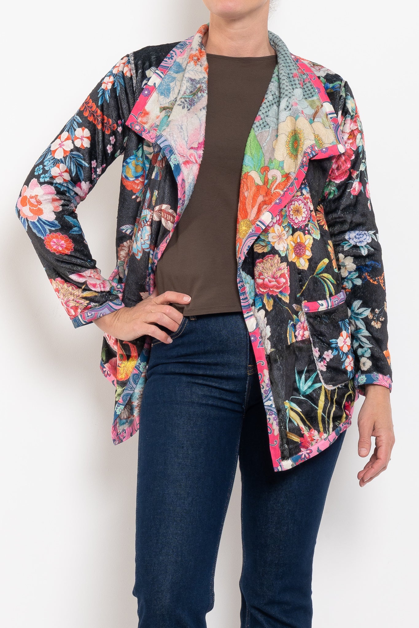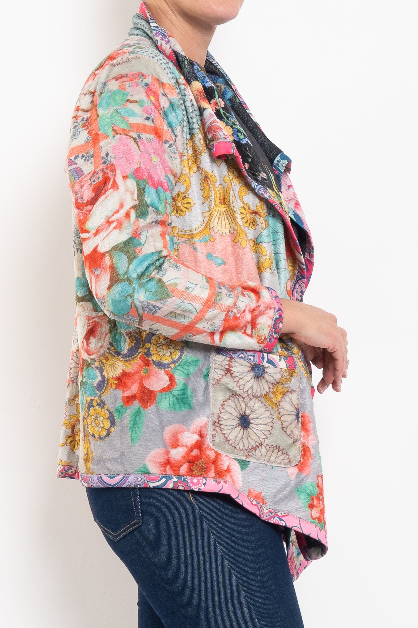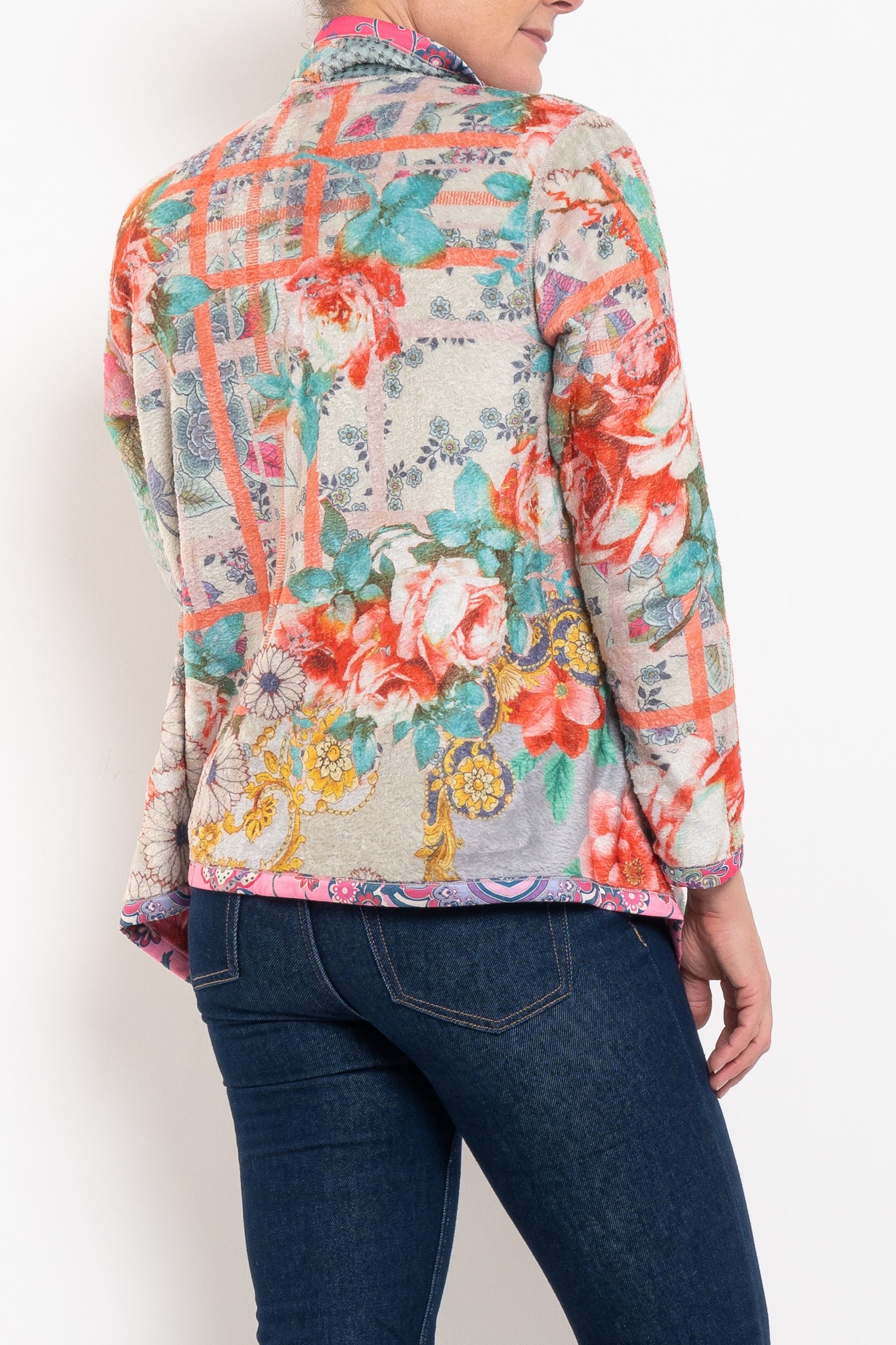 A true statement layer, the Joan Wrap Sherpa Jacket combines warmth with artistry. Featuring Johnny Was’s signature bold floral prints, this jacket is fully reversible, giving you two striking looks in one piece. Crafted with a soft sherpa finish, it wraps effortlessly for all-day comfort and style. Perfect for adding colour and personality to cool-weather outfitting, it’s a versatile layer that works over denim, dresses, or tailored pants.