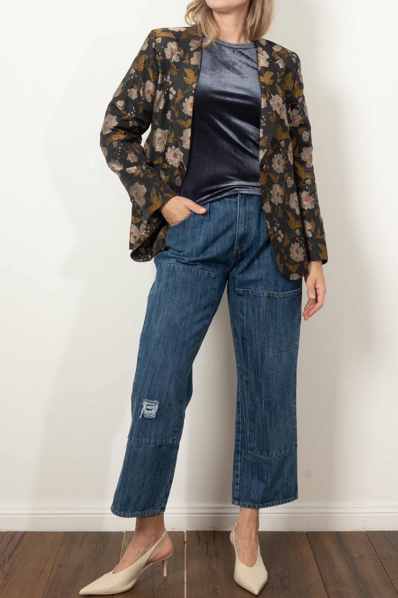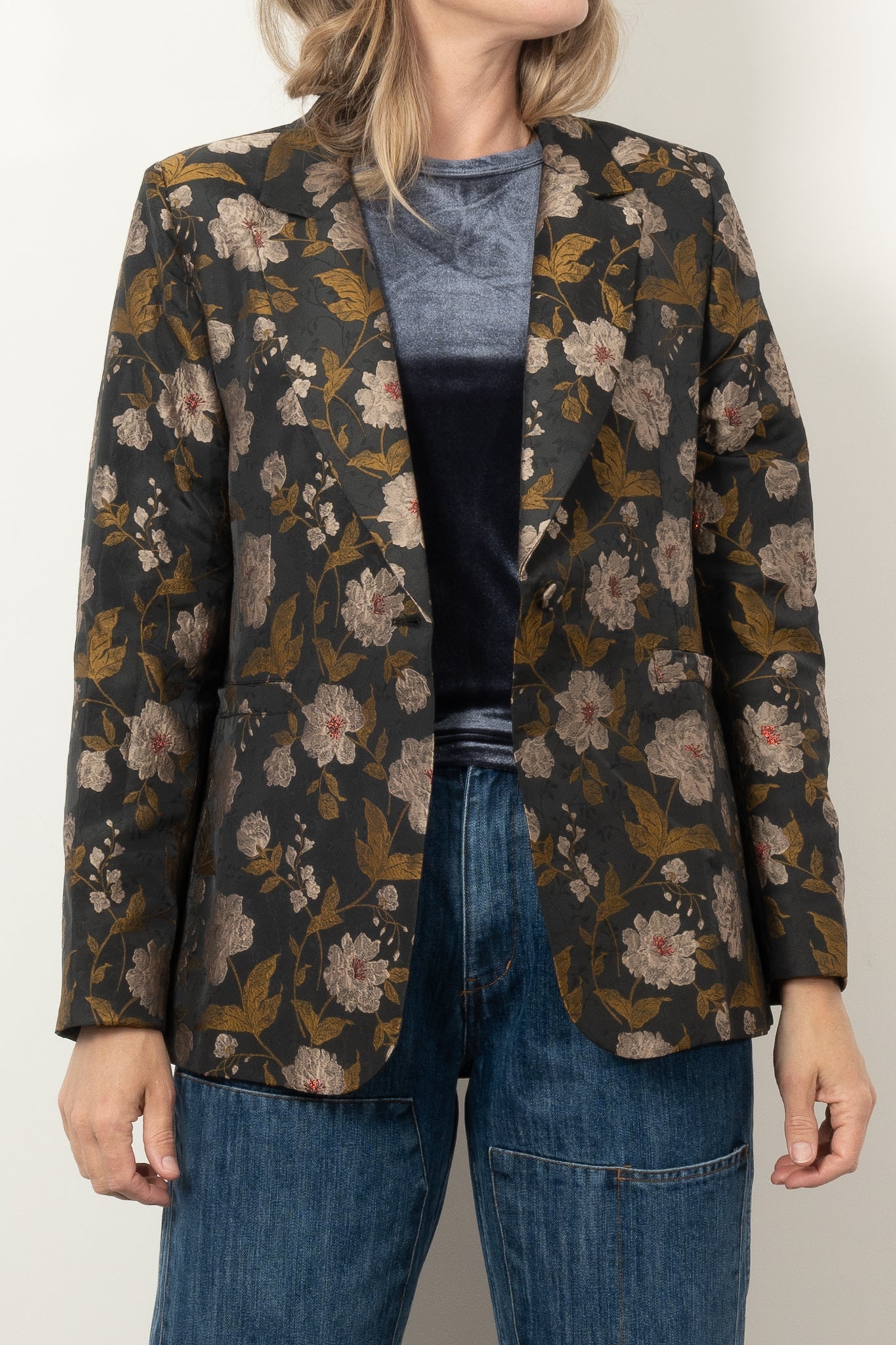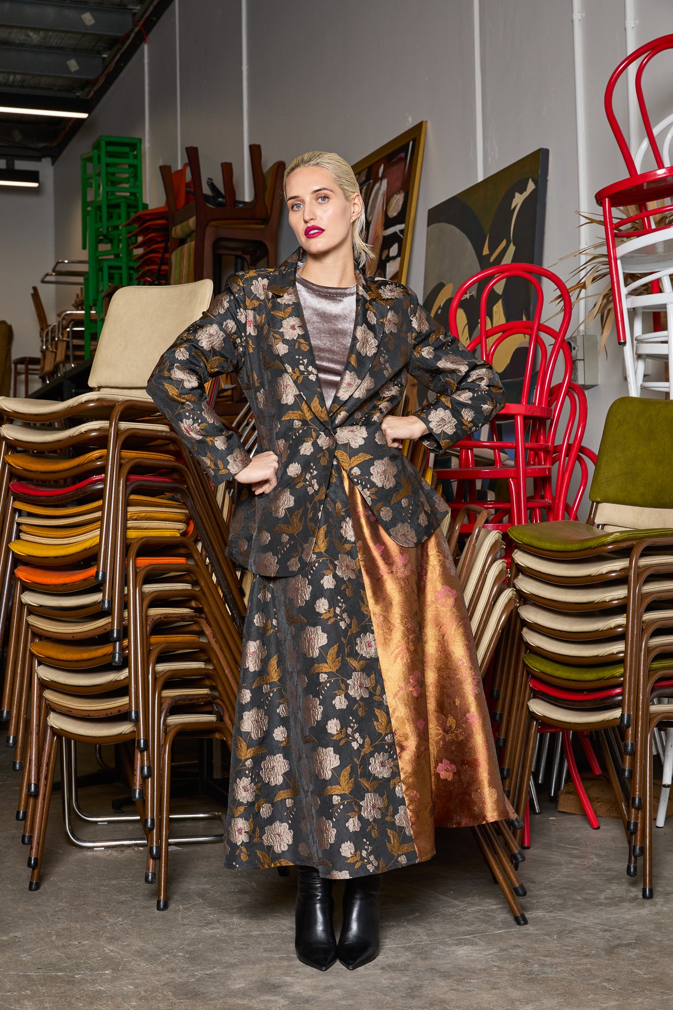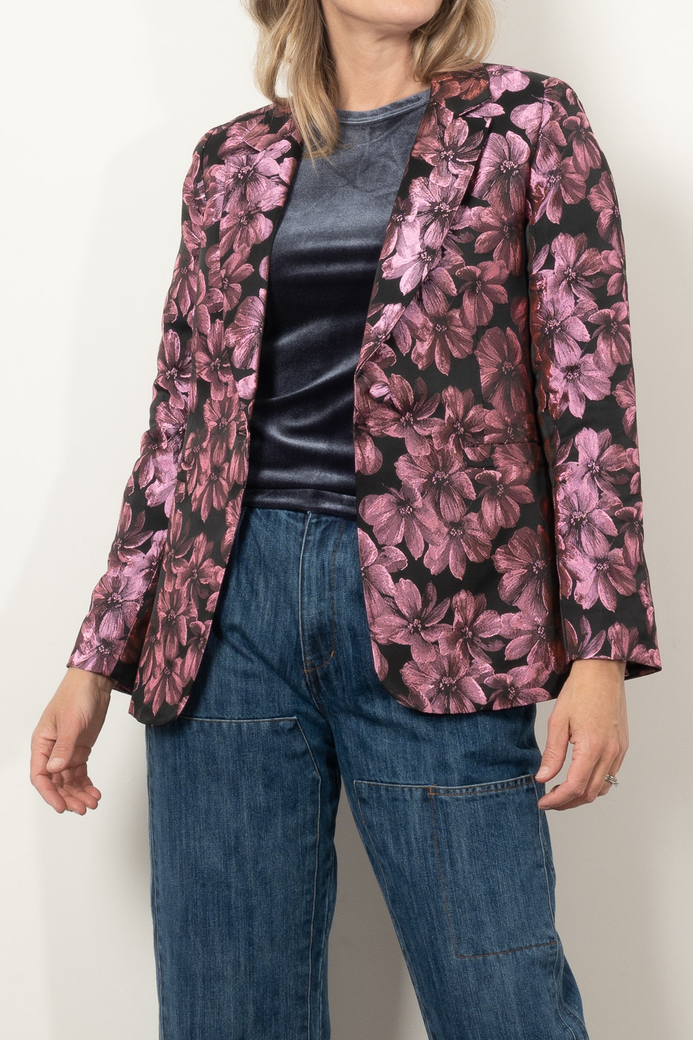 Tailored yet unapologetically bold, this shimmering brocade blazer by M.A. Dainty is a statement-maker in every sense. See full product description below for fabric and fit info.