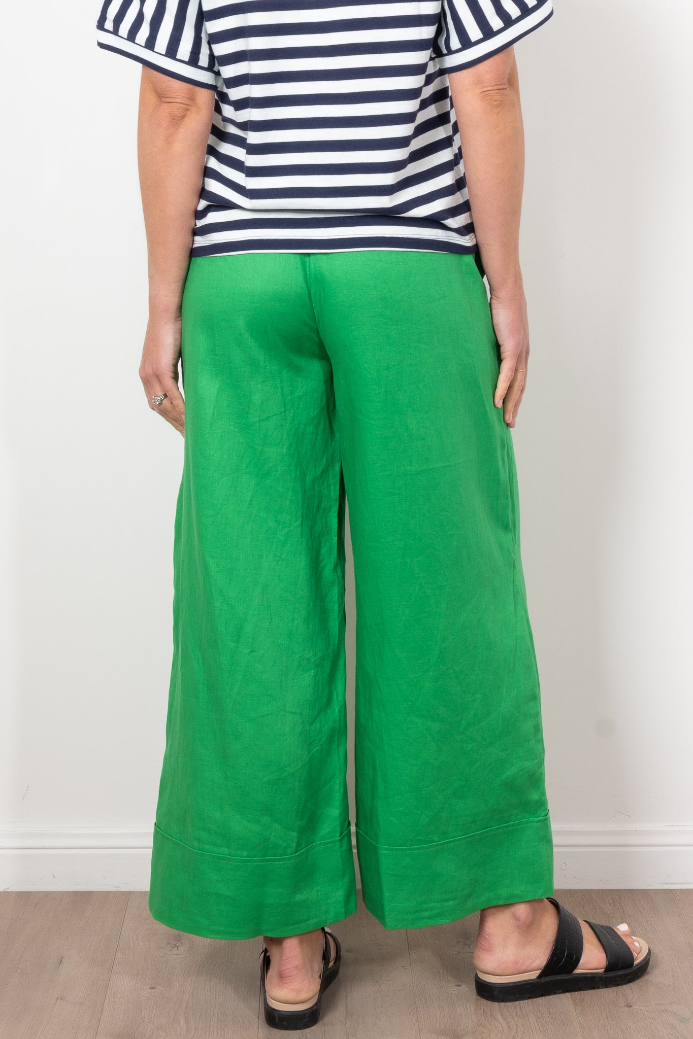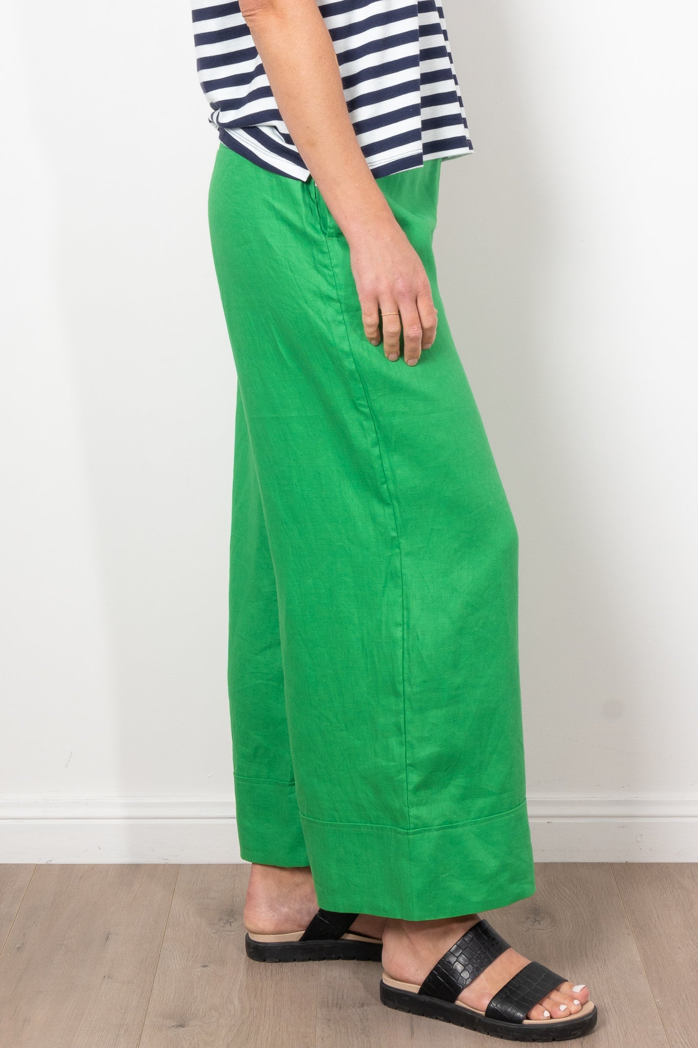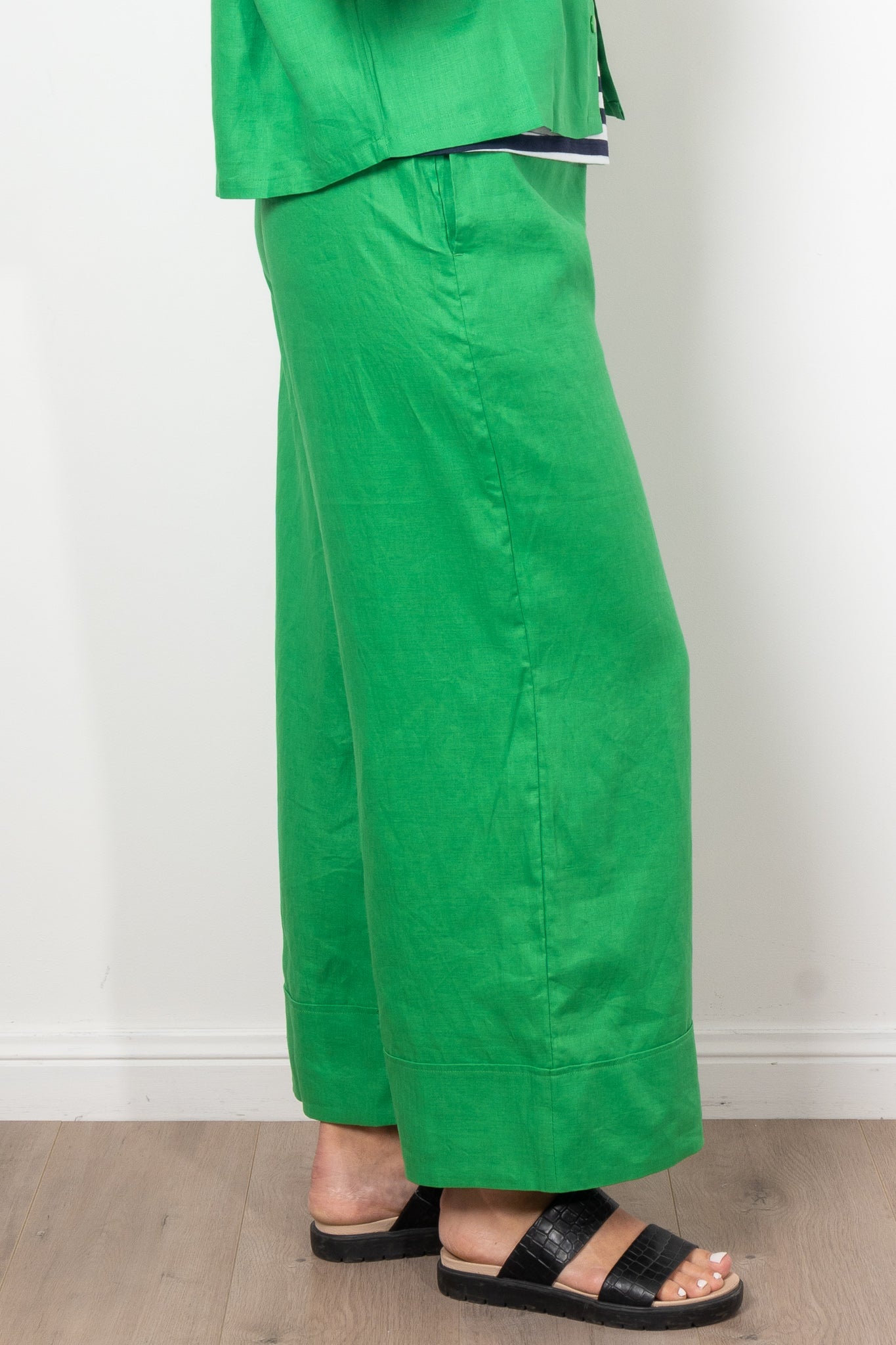 Upgrade your wardrobe with the ELK Anneli Light Pant. Made from vibrant French flax linen, this signature staple features a mid-rise waistline and full length leg. The statement cuff detailing adds a pop of colour and transforms this simple wide-leg trouser into a versatile and essential piece. Soft, breathable, and durable, it pairs perfectly with any top.