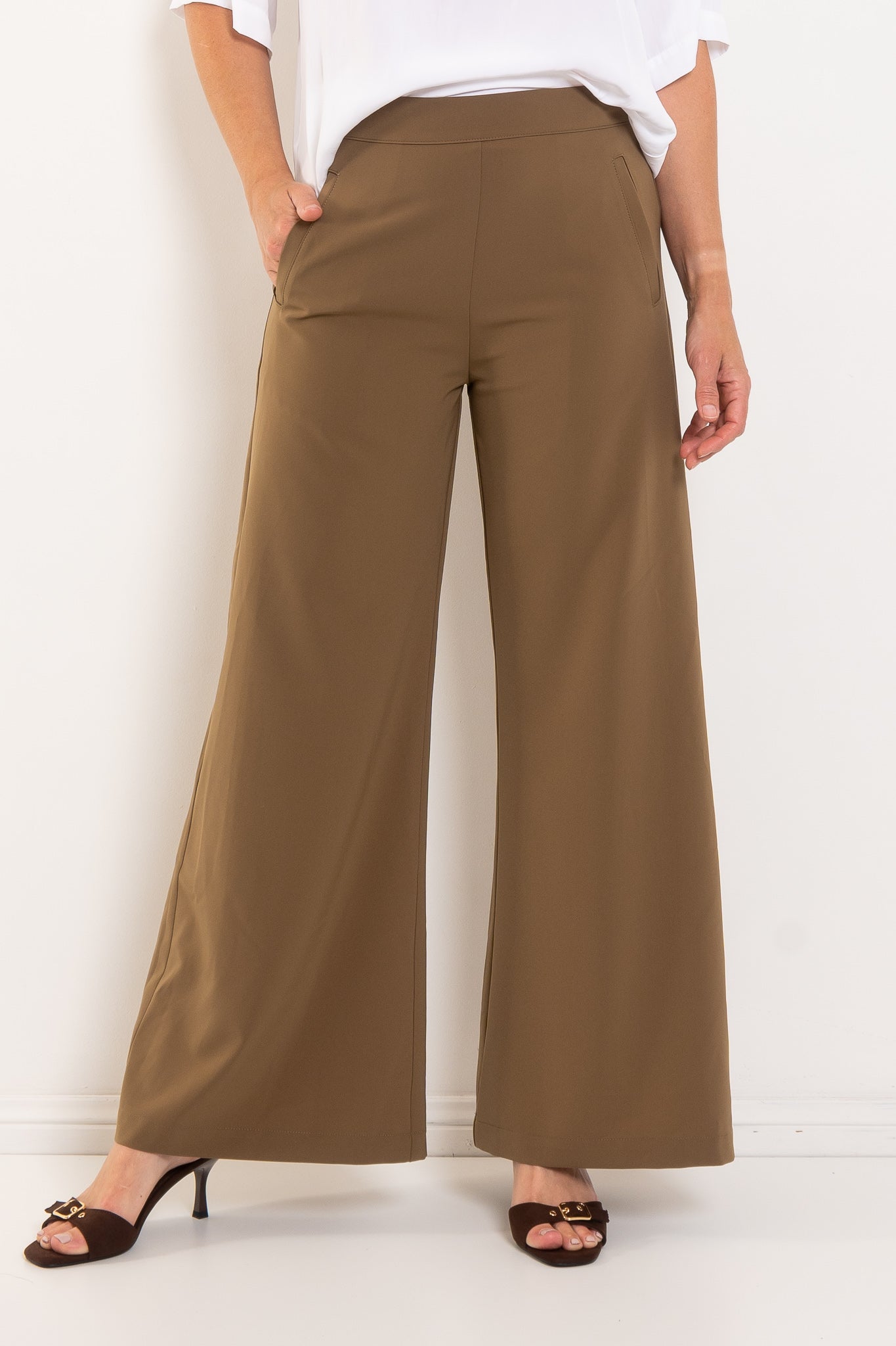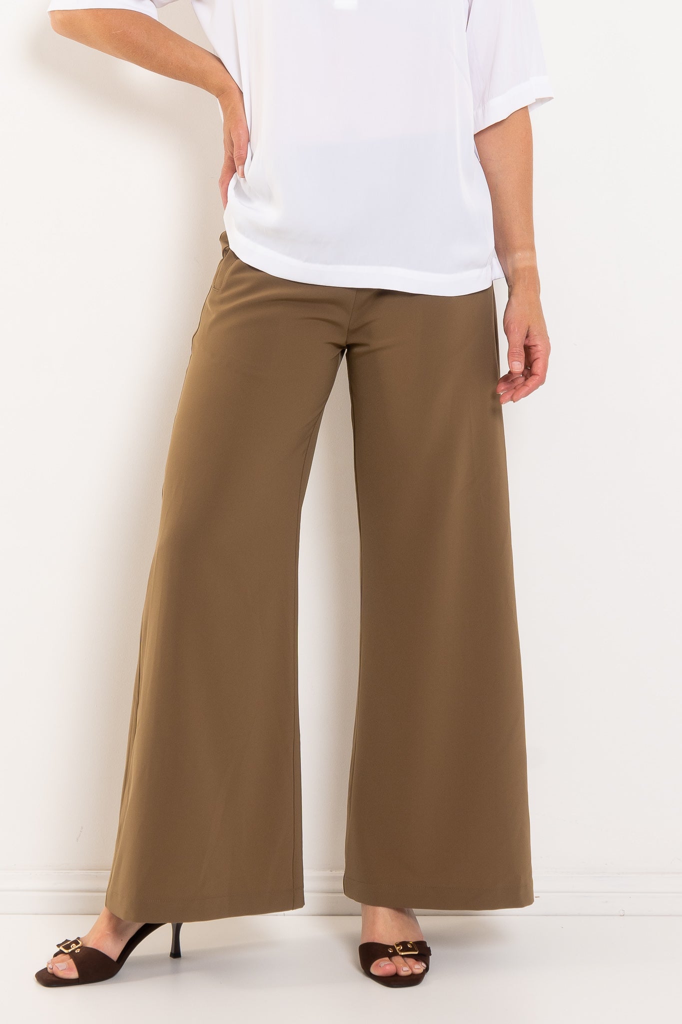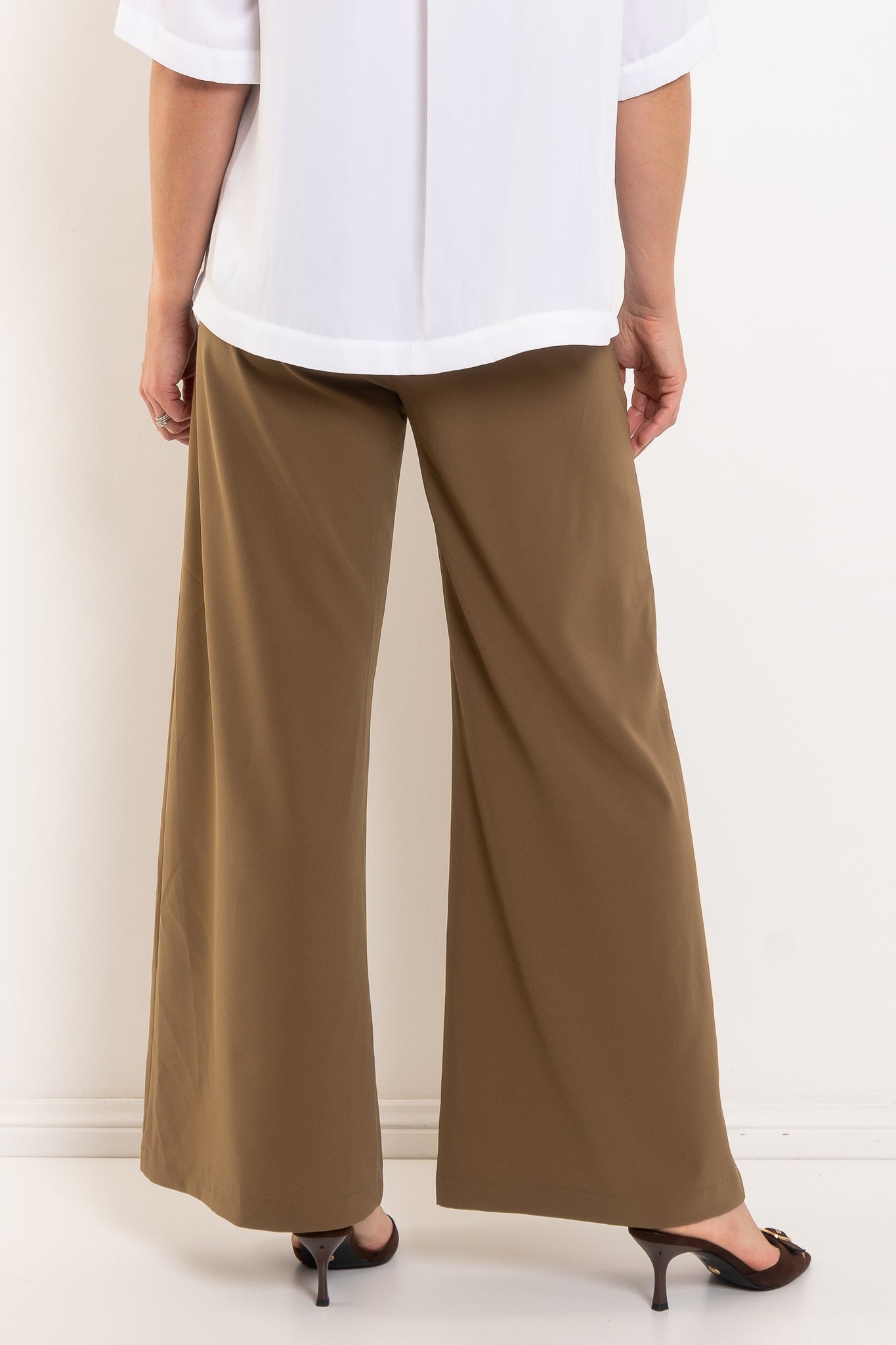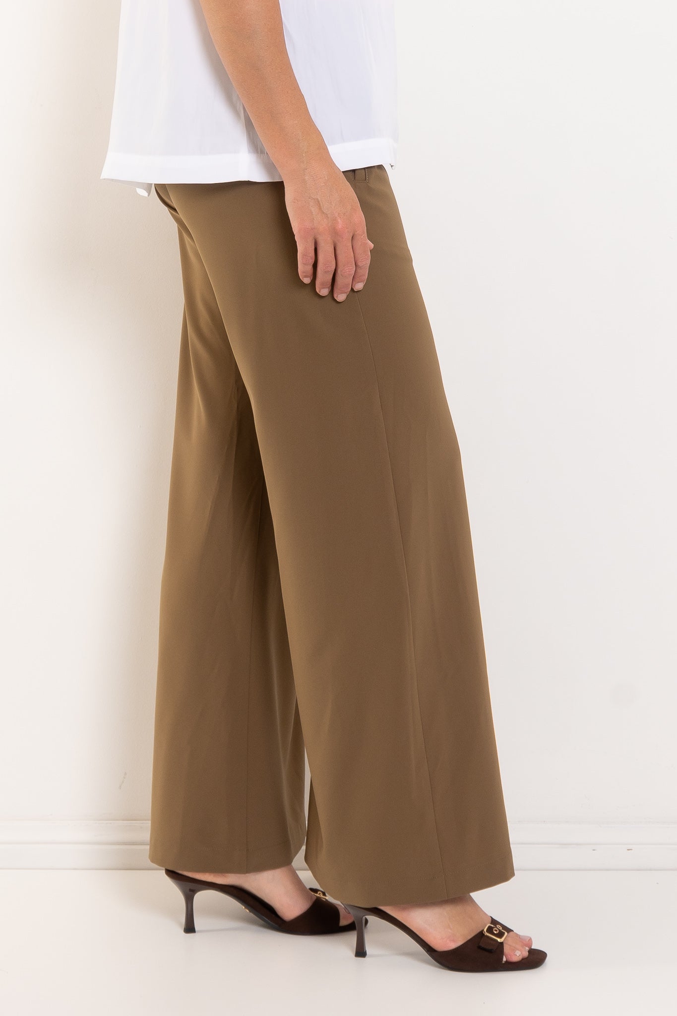 - Wide leg silhouette for modern proportion