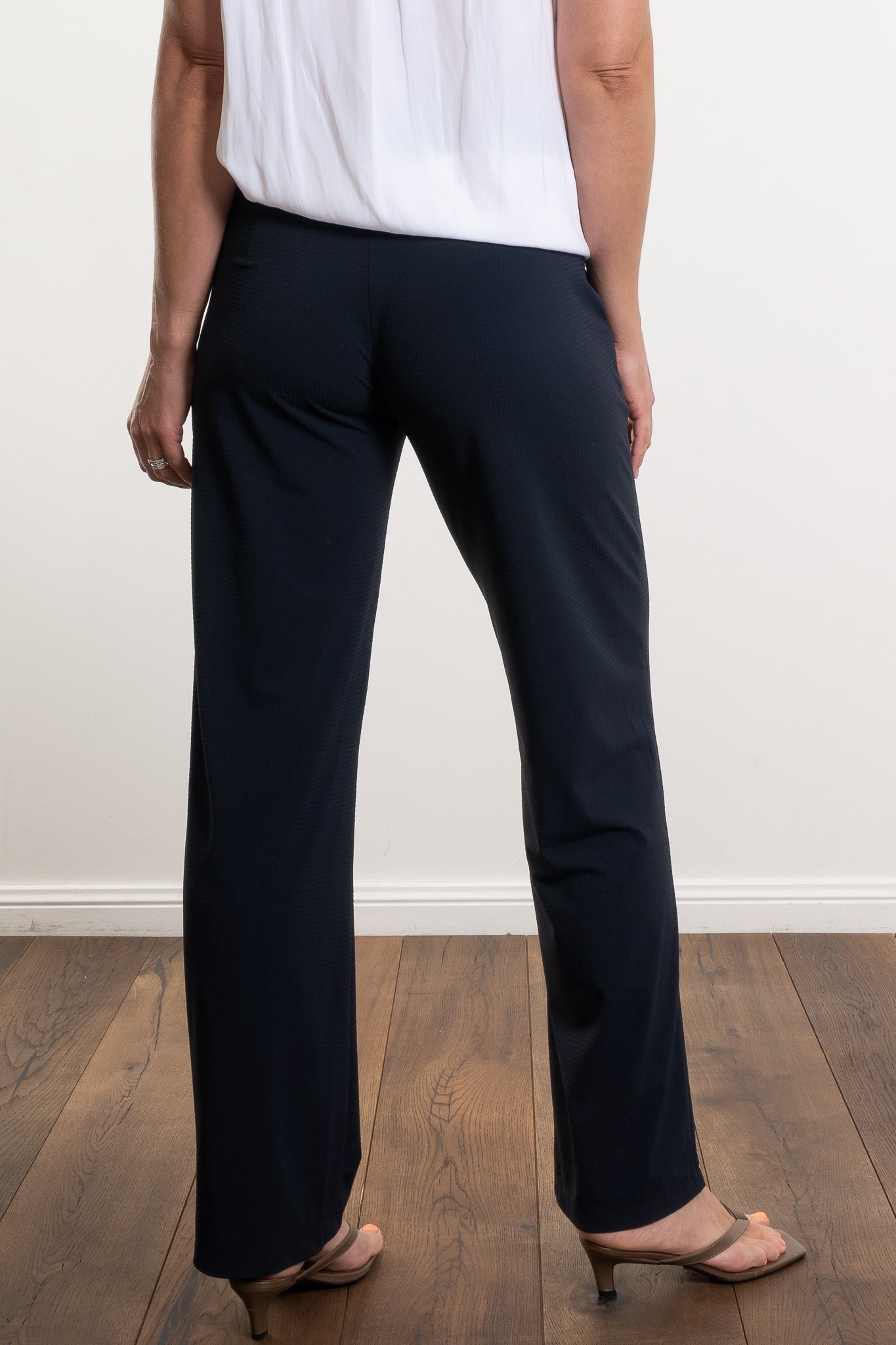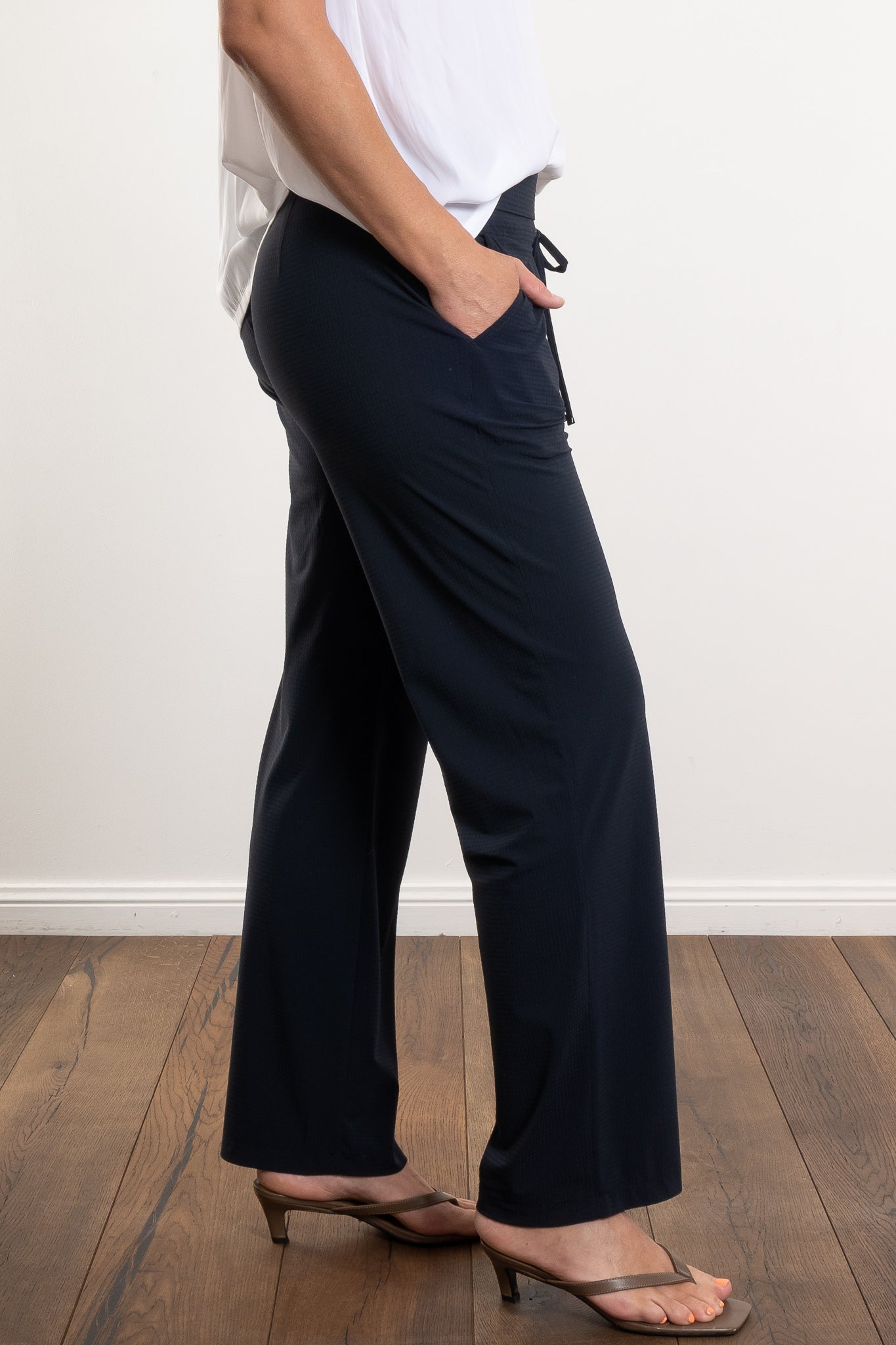 An elevated essential with a sporty soul. The Candice pant offers the ease of a jogger with the polish of a chino—cut in soft, crease-resistant jersey with a subtle all-over minisquare texture for added interest.