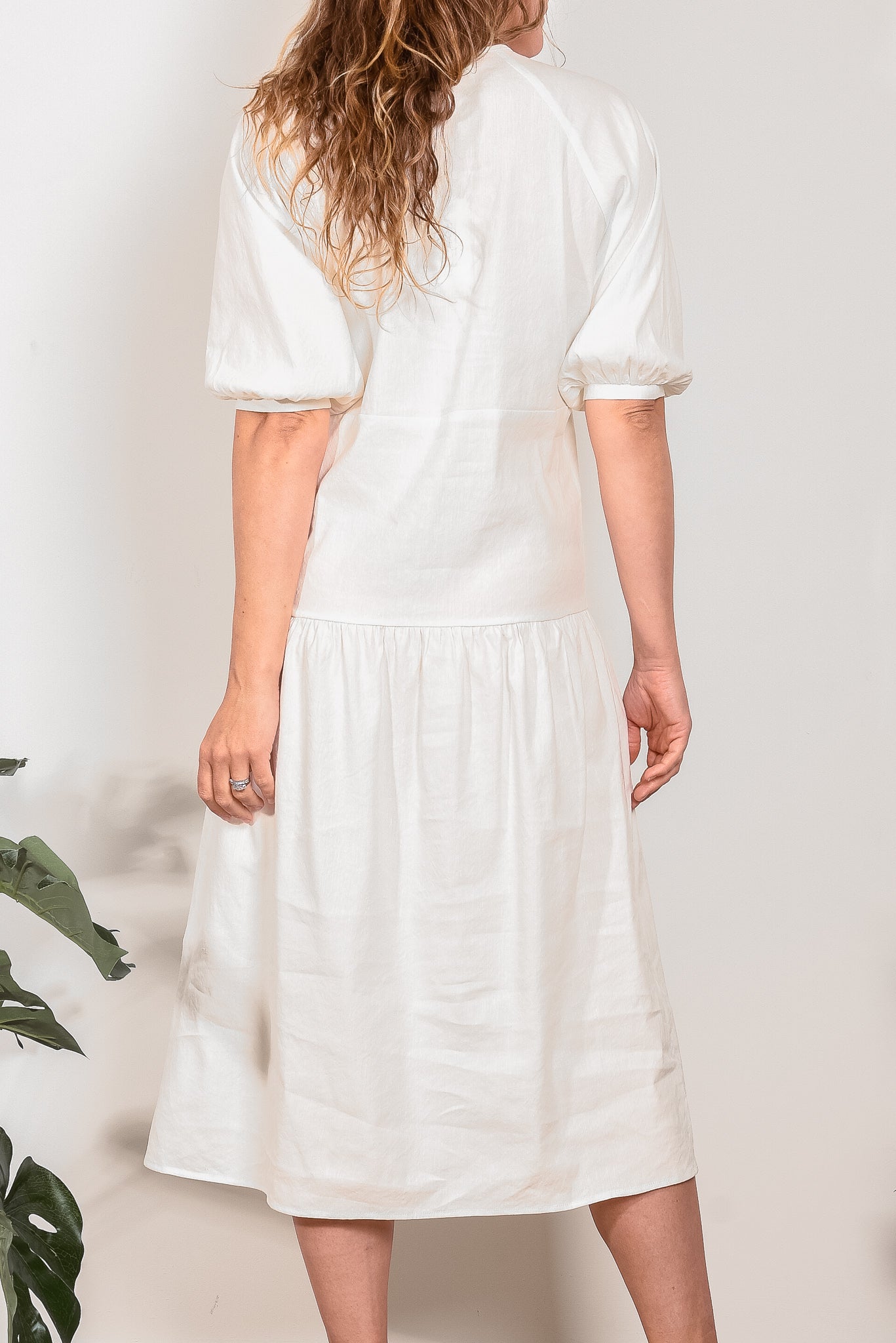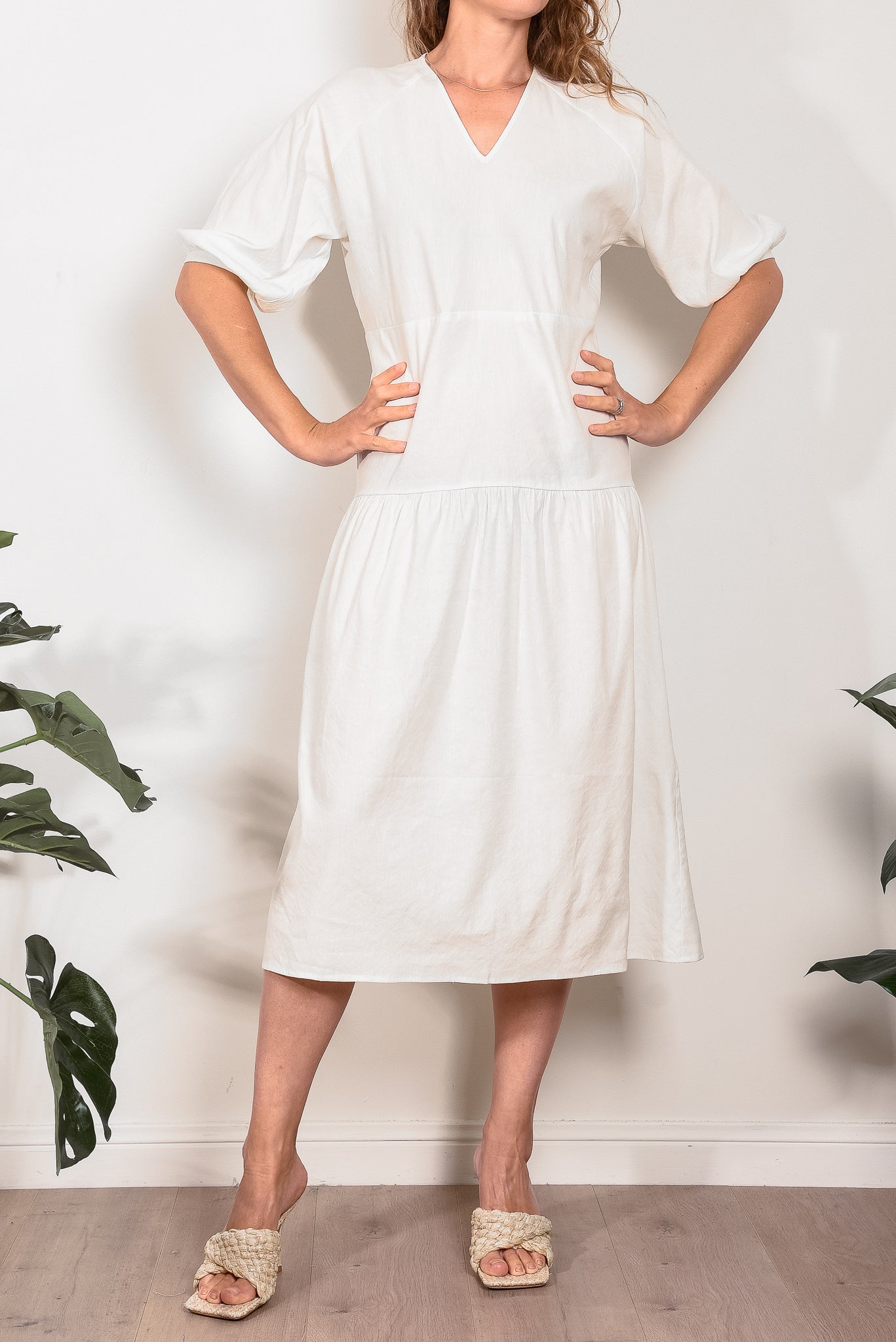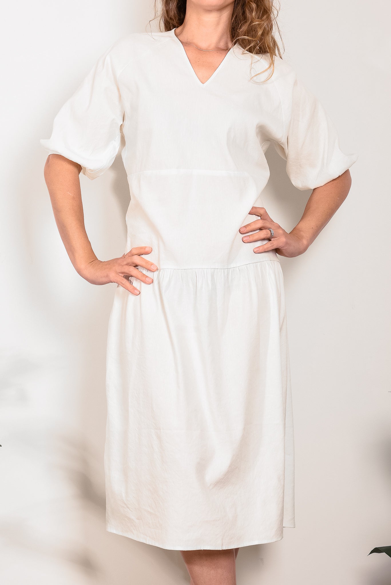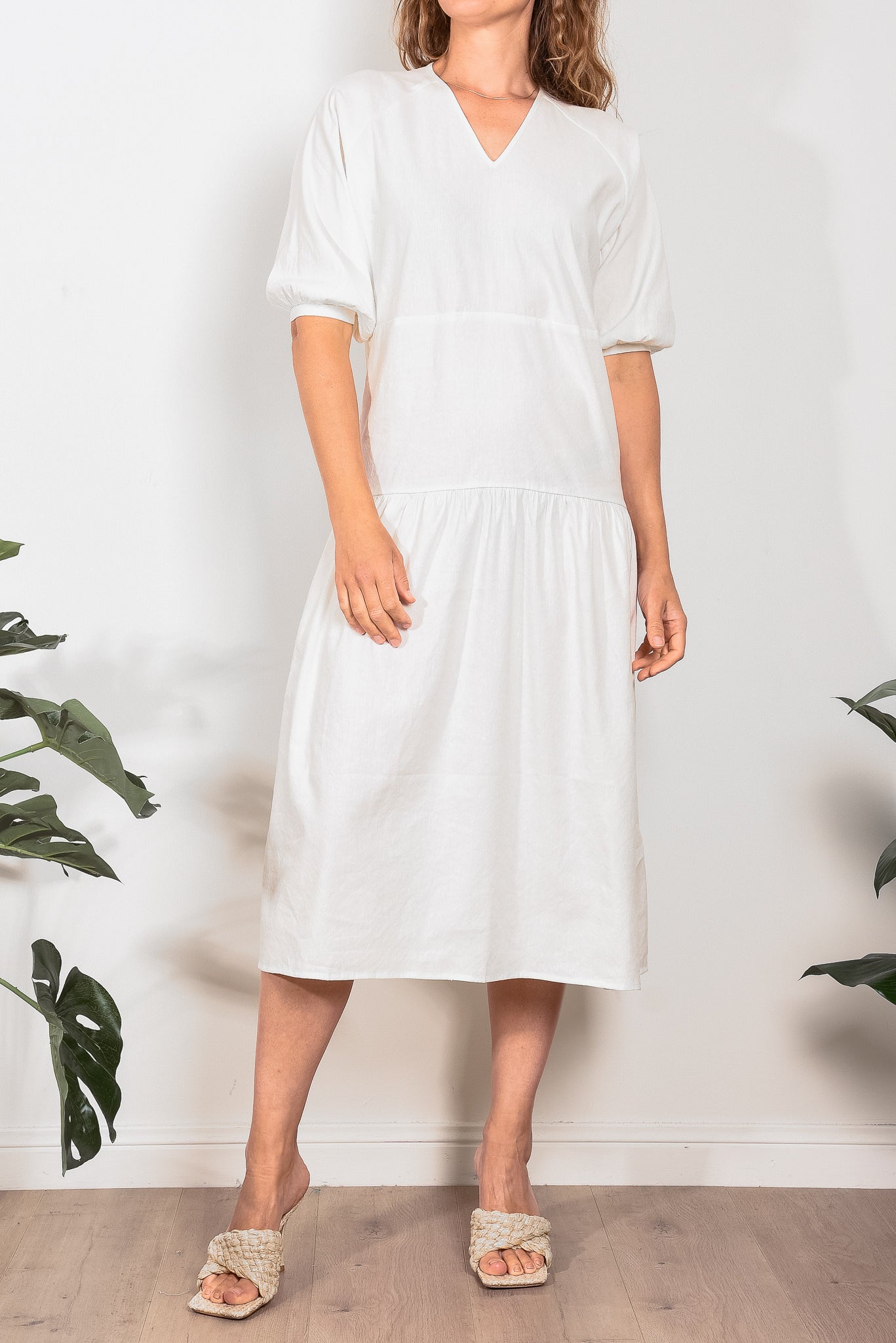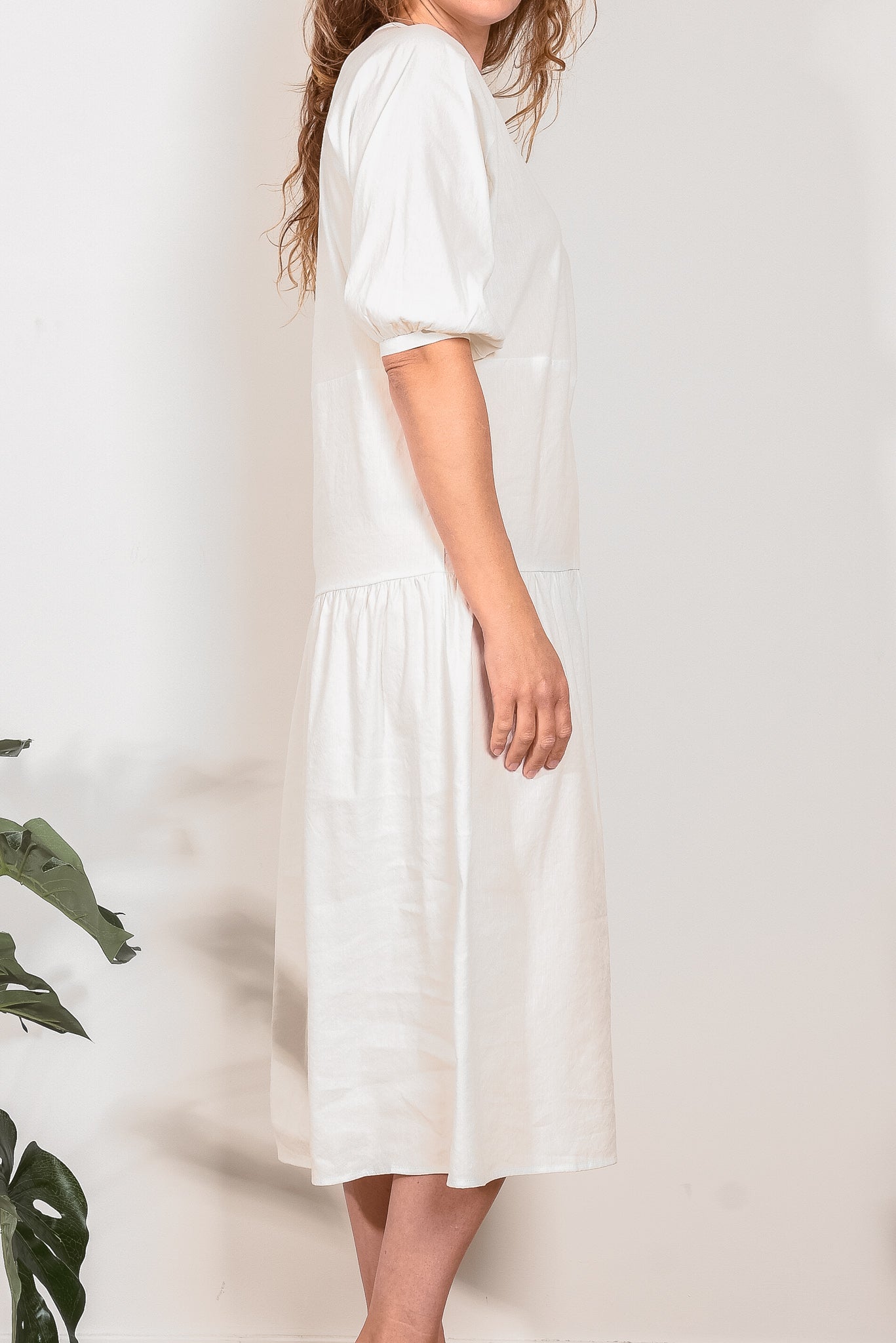 Crafted from 100% linen, the Sophie Tier Dress from In the Sac linen is an easy to wear summer essential, featuring a flattering soft v neck, elbow raglan sleeves with a subtle puff shape and a slightly dropped waist for a streamlined silhouette.
