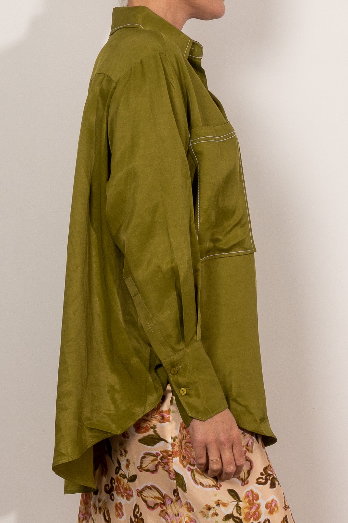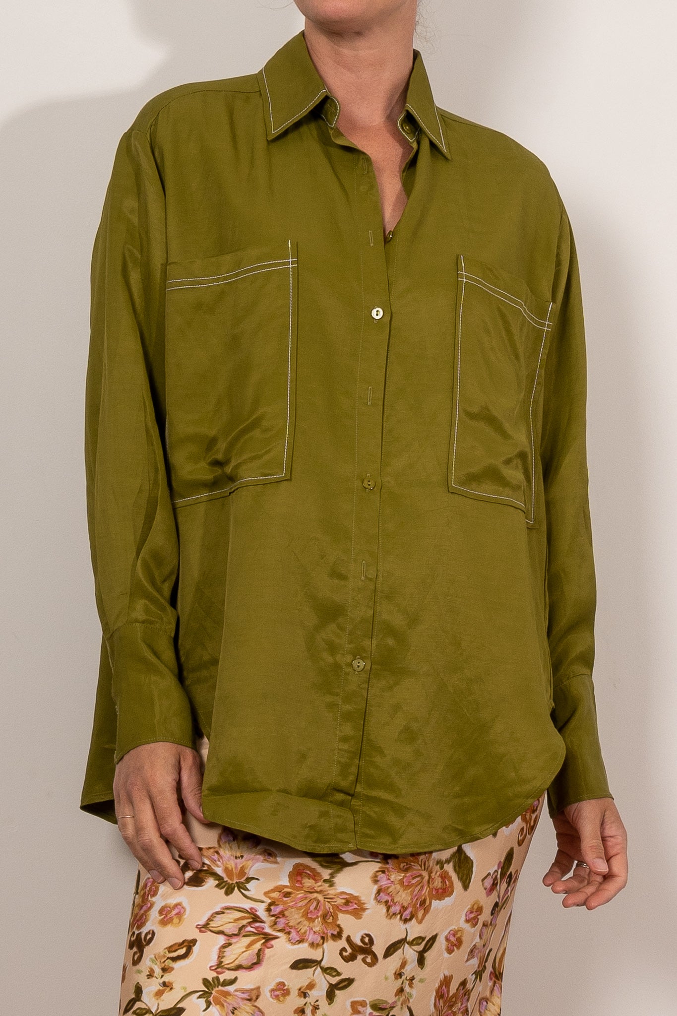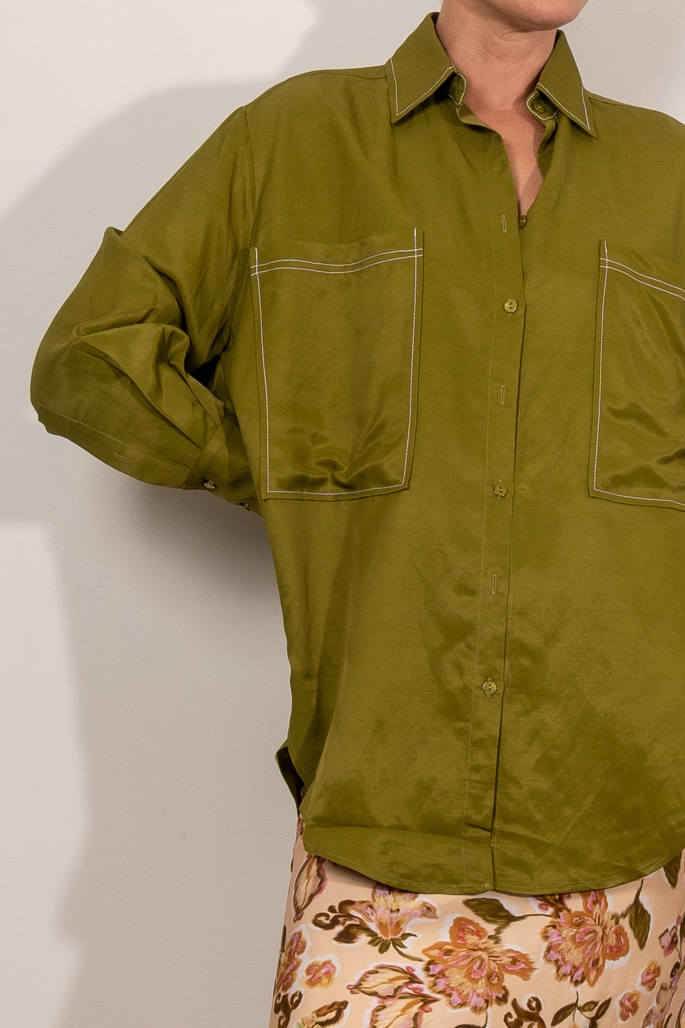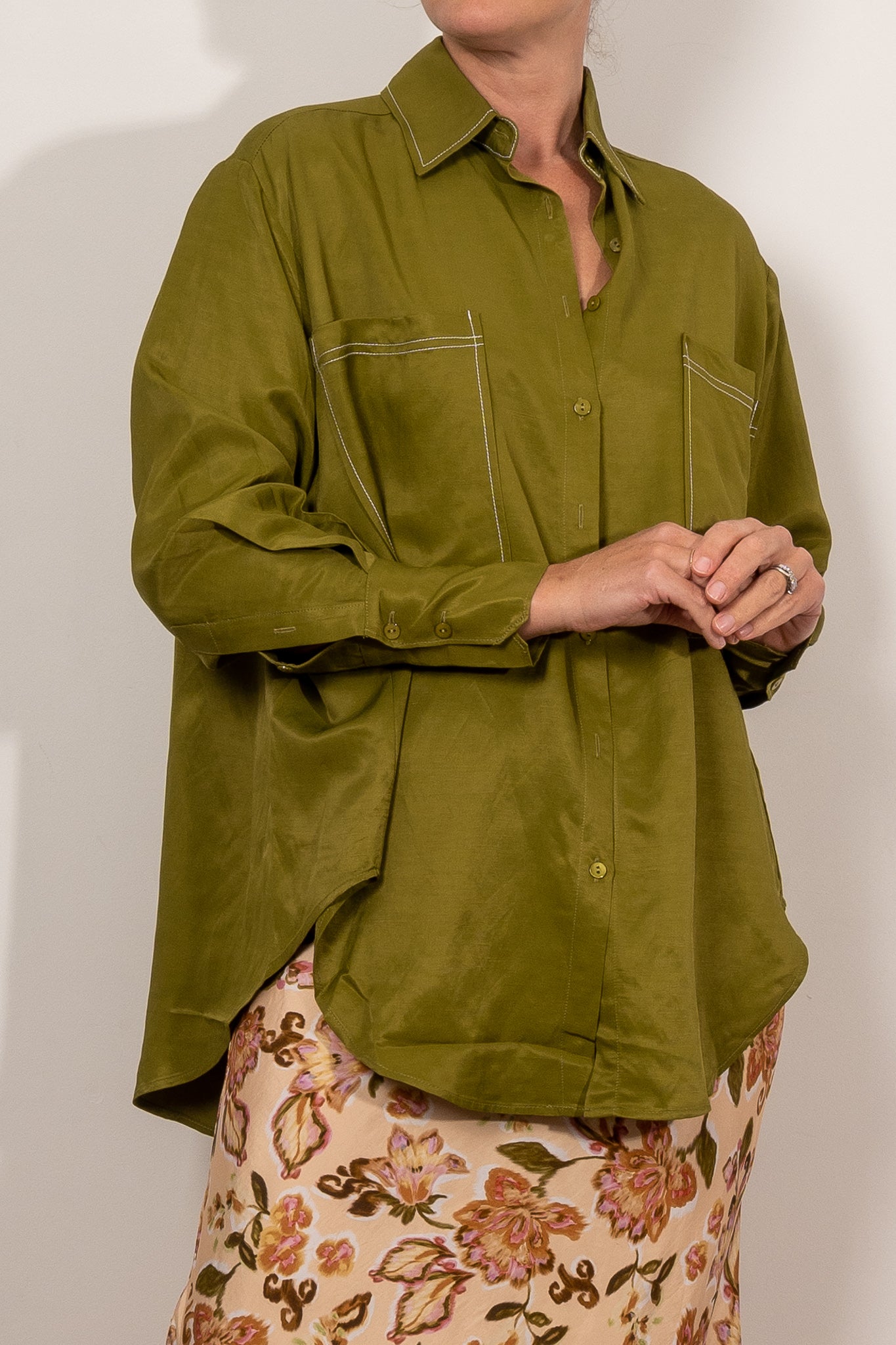 The Alma Shirt is a re-cut of our classic button-up shirt. This style has large patch pockets, tailored cuffs and a classic collar.