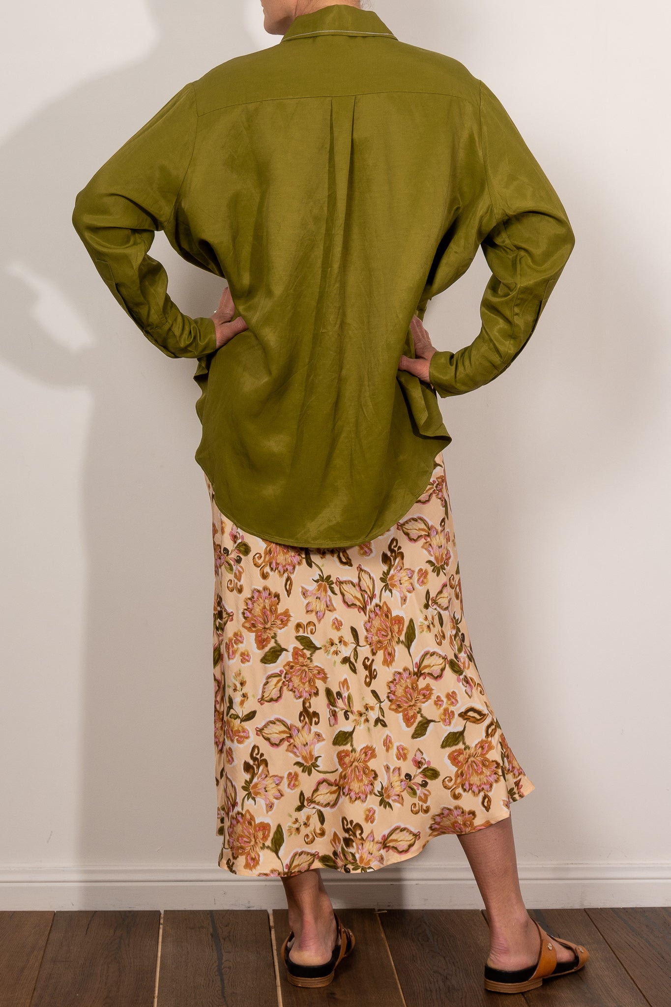 The Alma shirt has an oversized fit. Our model Philippa is an Aus size 10 and wears size 10 here. She is 178cm tall, Bust: 89cm // Waist: 71cm / 28in // Hip : 96cm / 38in