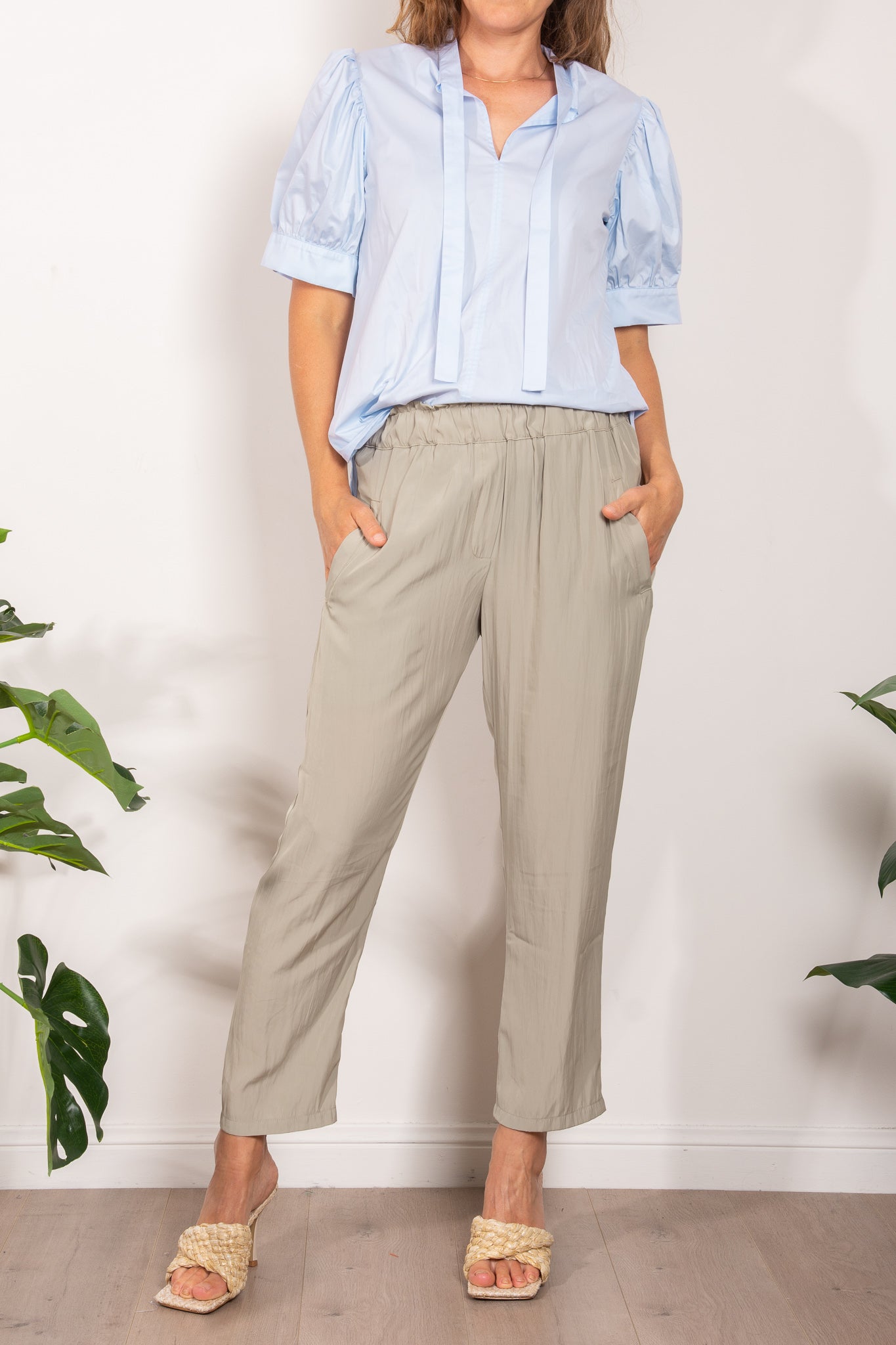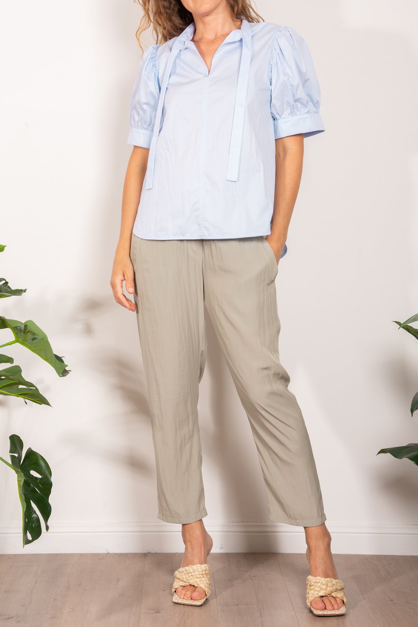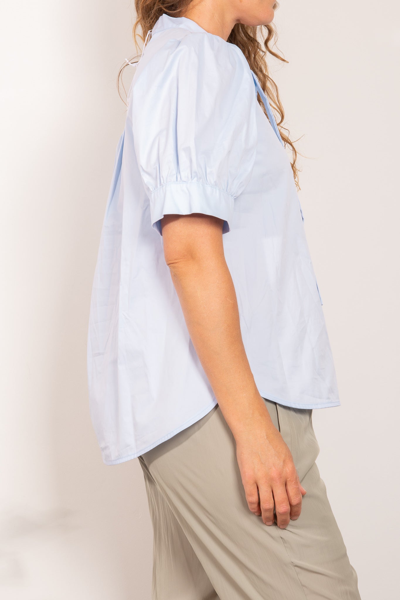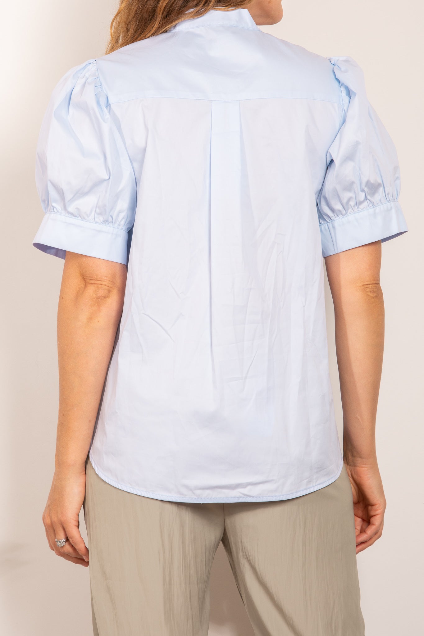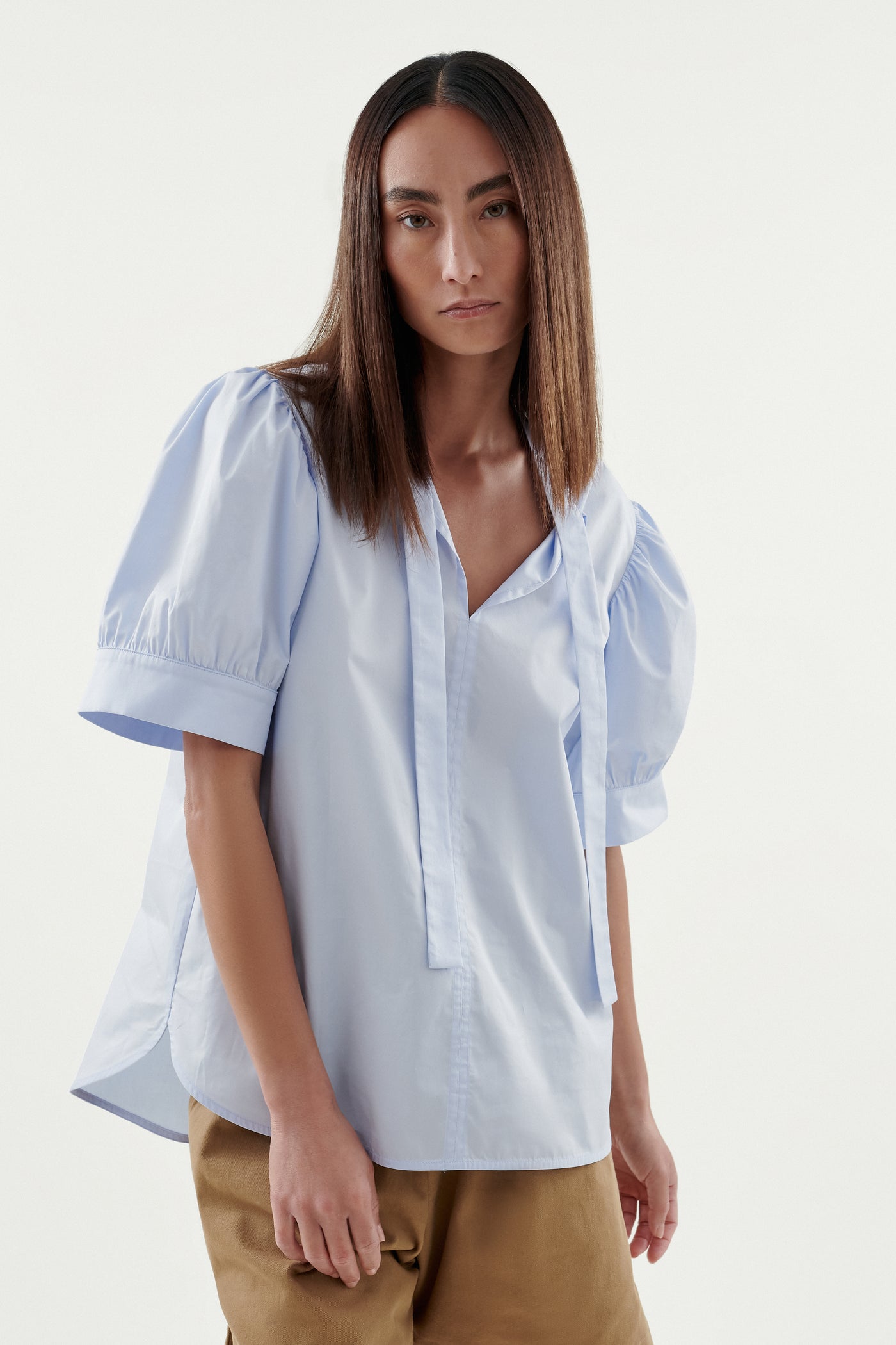 Crafted from Satin Cotton, the Avge Top features an easy wear v neckline with feature neck tie, statement puff sleeves and an a-line silhouette.