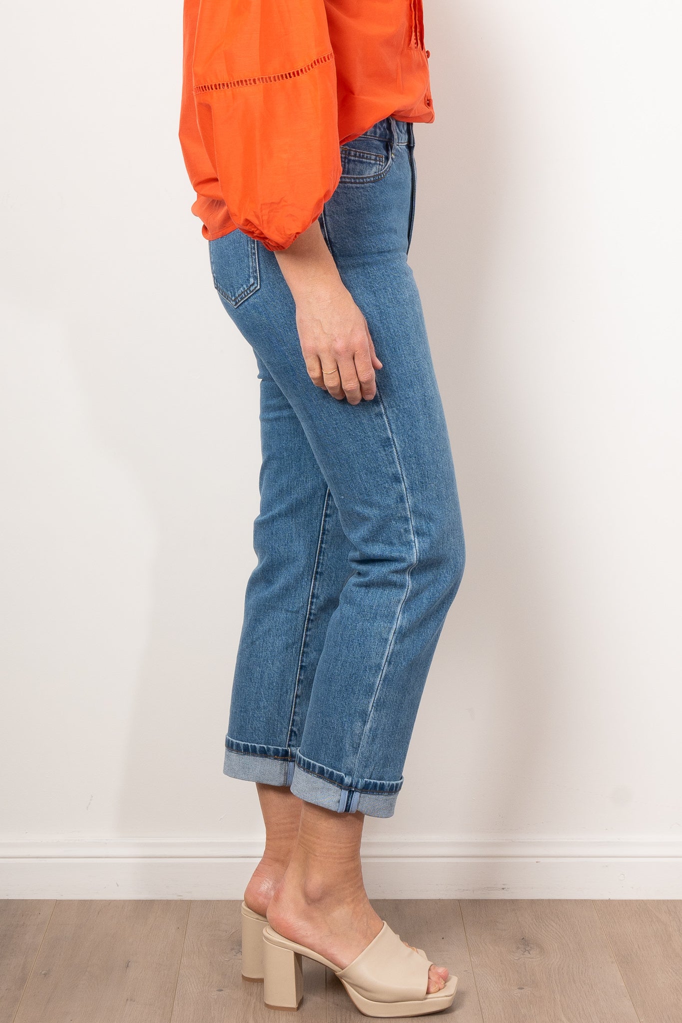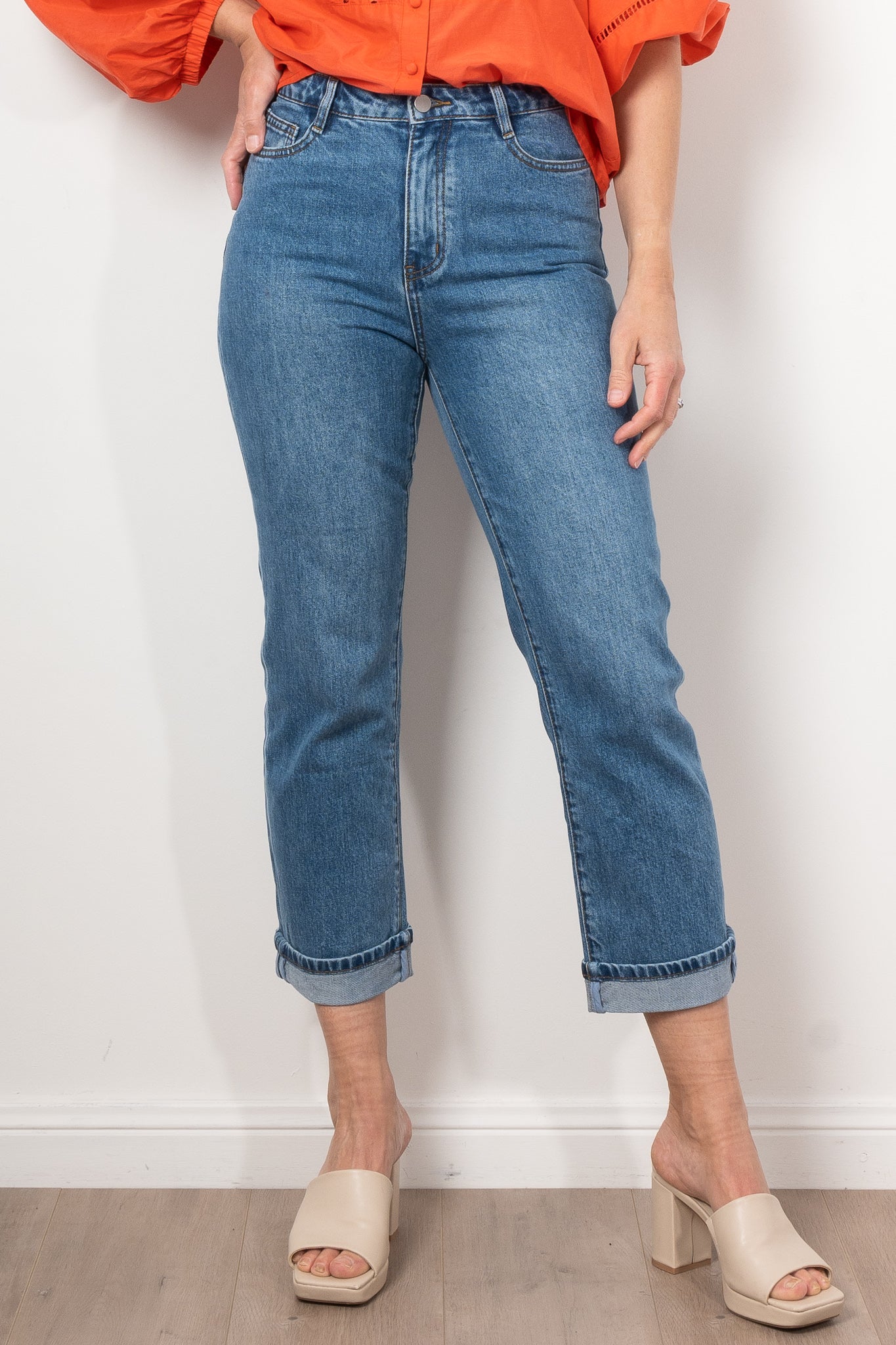 The Maverick Jean offers the perfect blend of style and comfort. With its fitted waist and subtle stretch, this timeless cropped silhouette effortlessly flatters your figure. The optional rolled hem adds a touch of laid back chic to any outfit. Experience the ultimate in fashion and functionality with the Maverick Jean.
