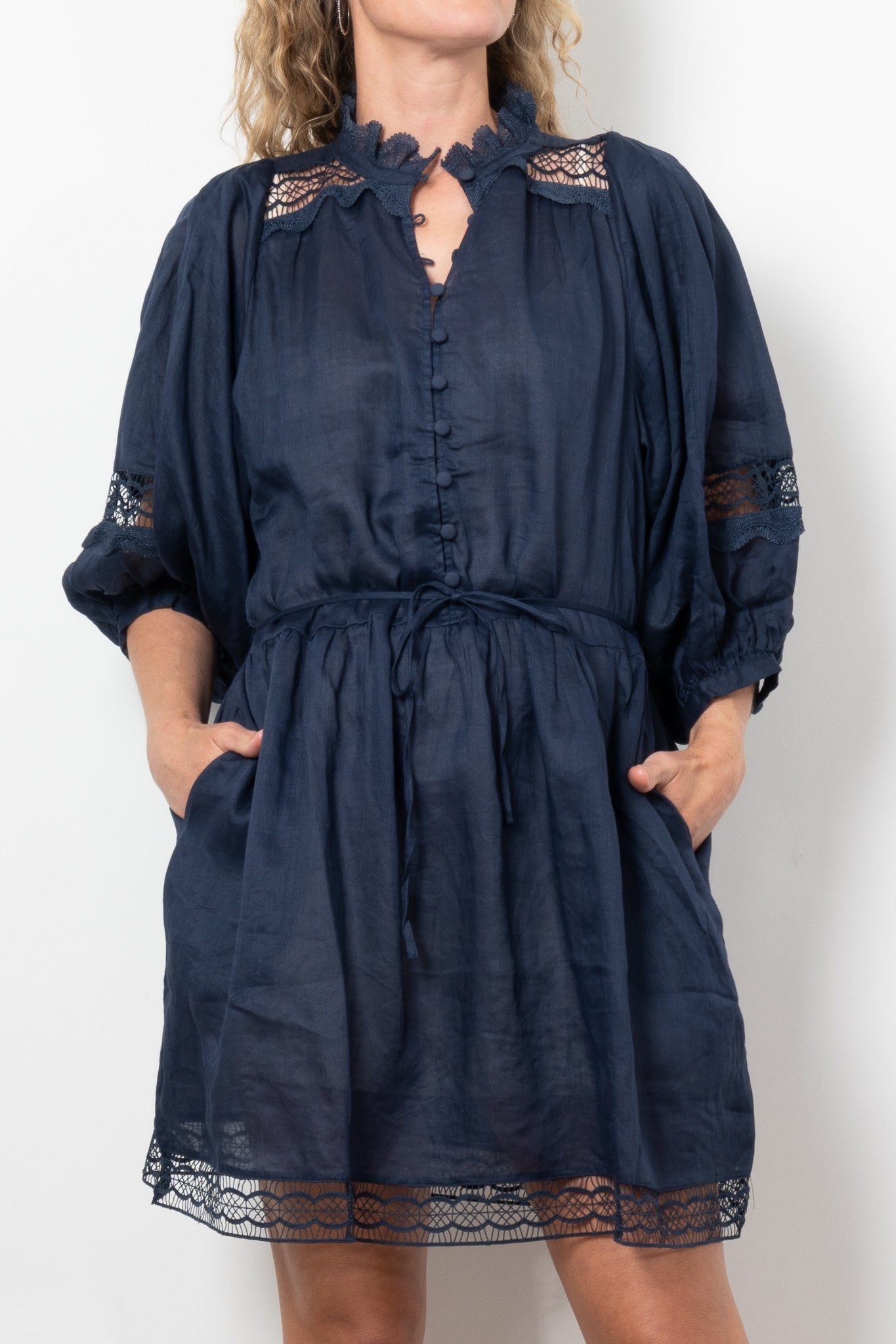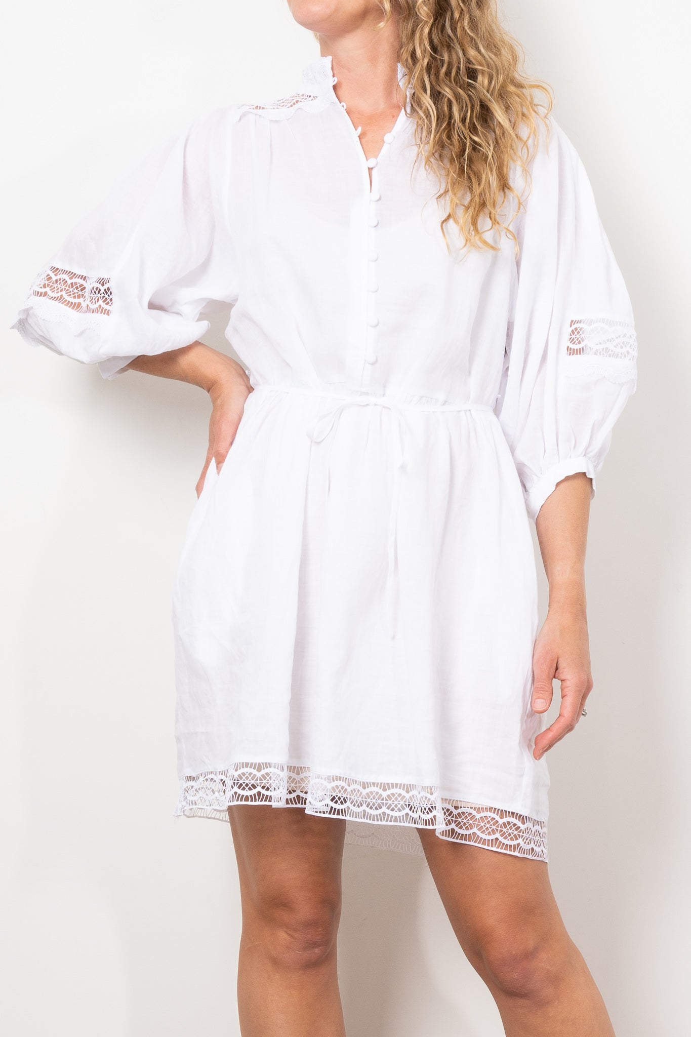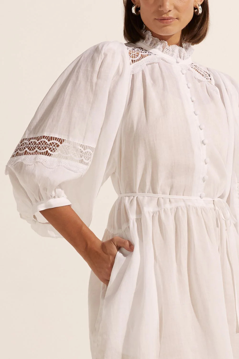 Elevate your event style with the Zoe Kratzmann Salute Dress. Vintage-inspired yet contemporary, this dress is crafted from luxurious lightweight ramie and detailed with lace ruffles and inserts for elevated elegance. Perfect for any occasion, it's the ultimate choice for effortless sophistication.
