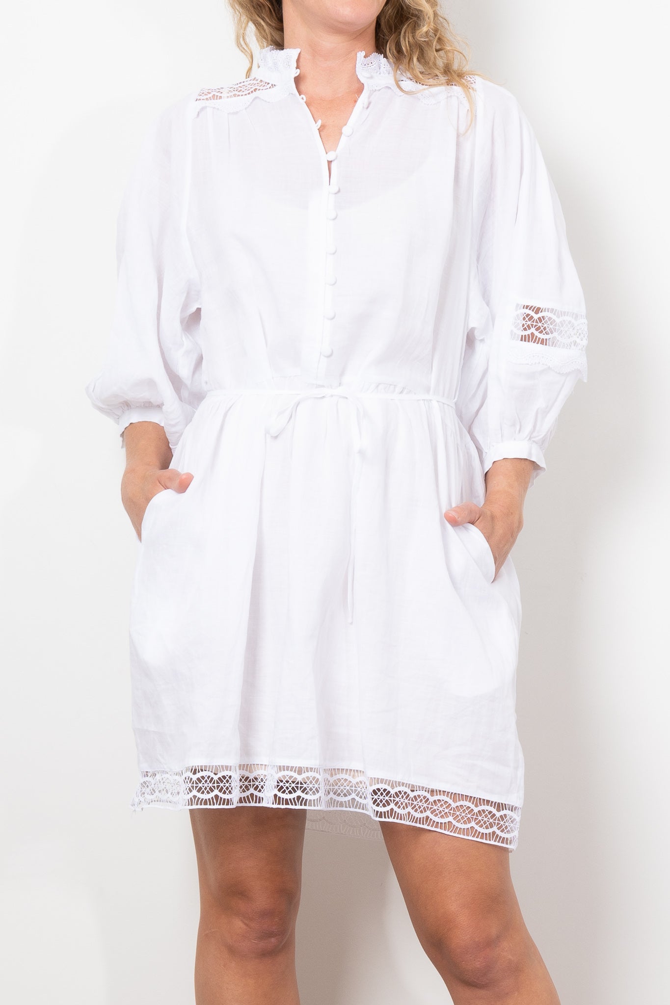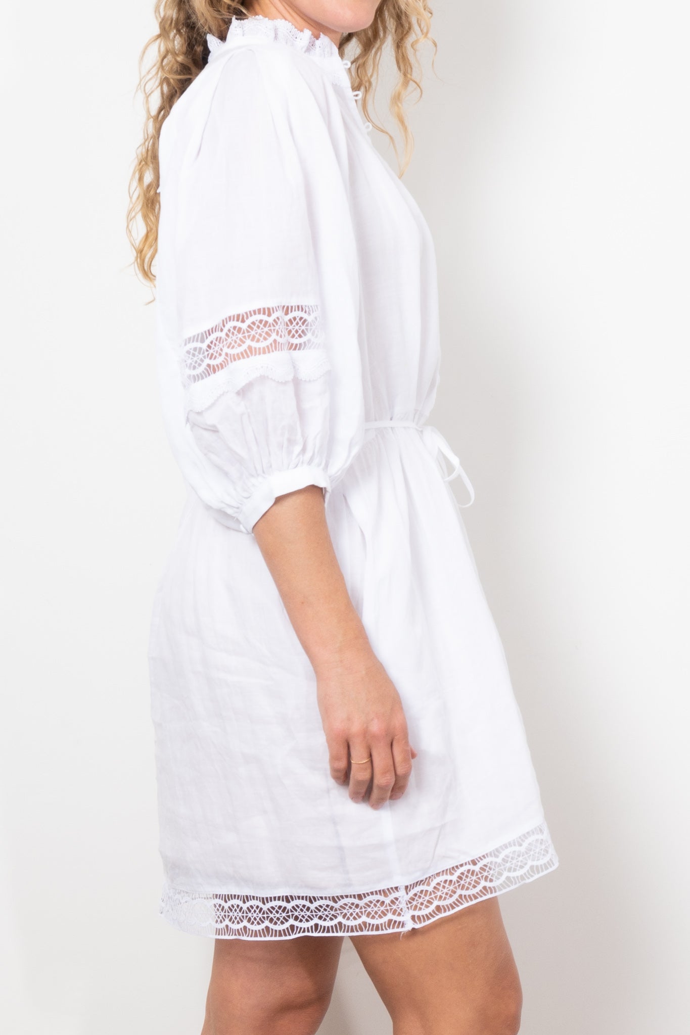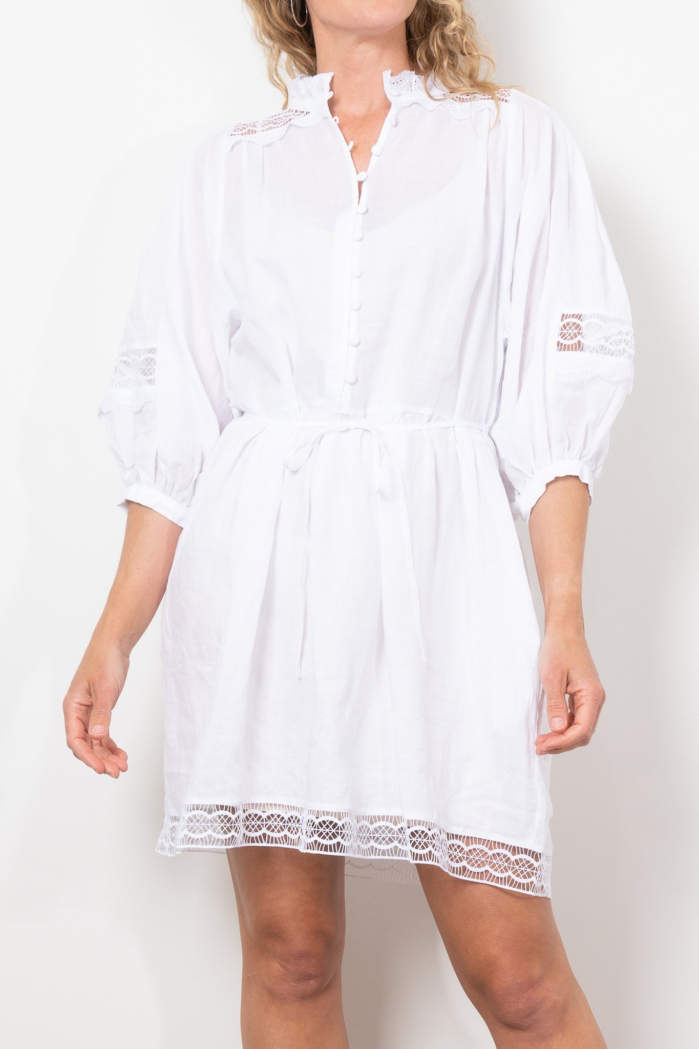 Elevate your event style with the Zoe Kratzmann Salute Dress. Vintage-inspired yet contemporary, this dress is crafted from luxurious lightweight ramie and detailed with lace ruffles and inserts for elevated elegance. Perfect for any occasion, it's the ultimate choice for effortless sophistication.