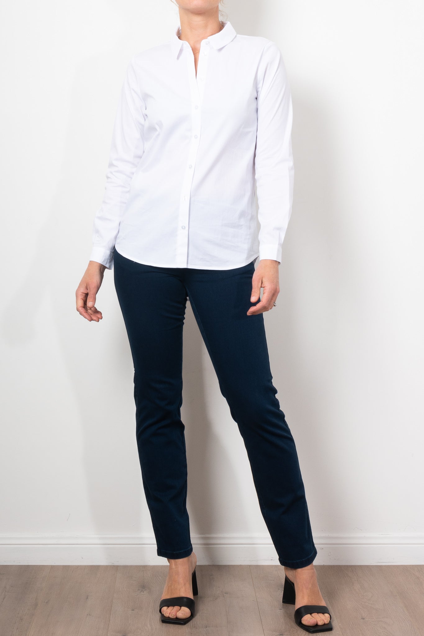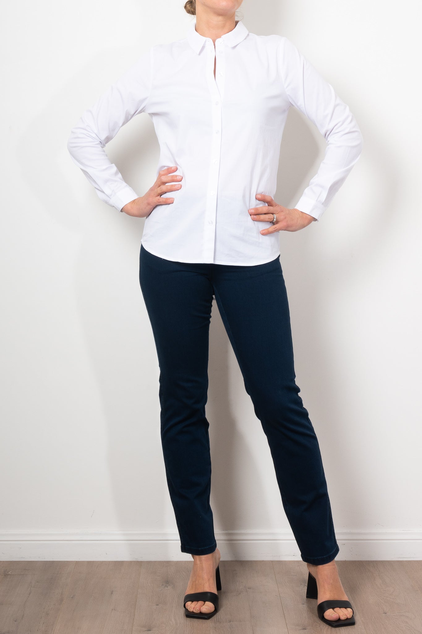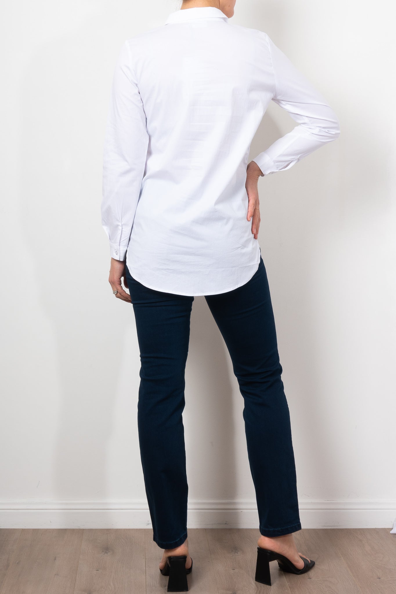 The Kaffe Scarlet Shirt provides a classic slim fit for a stylish and polished look. The extra long back length offers added comfort and coverage. Made from a high-quality cotton/elastane blend fabric with a nice stretch, this Danish designed shirt features a crisp collar and long sleeves with button up cuffs. Elevate your wardrobe with this timeless piece.