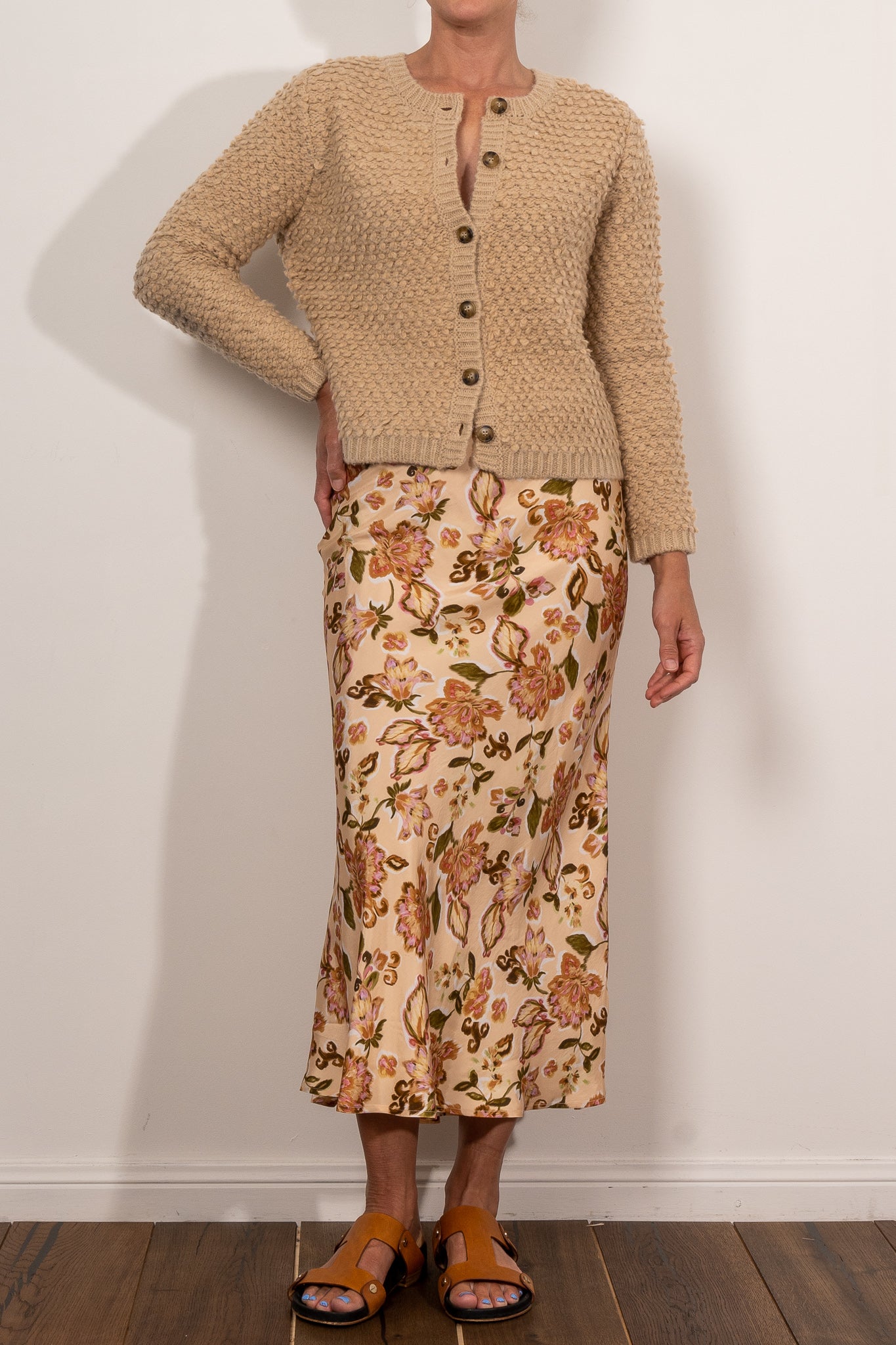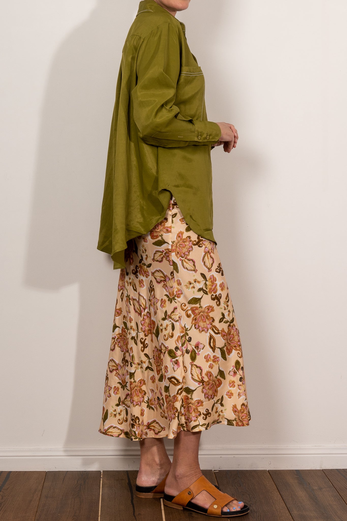 The Leah skirt is a flattering bias cut maxi skirt. It has a beautiful drape and an elasticated waistband for ease of wear.