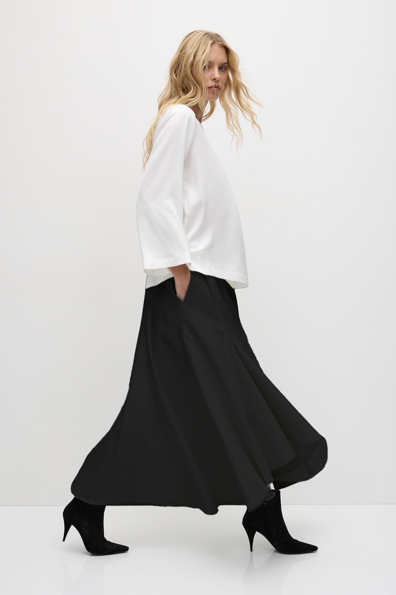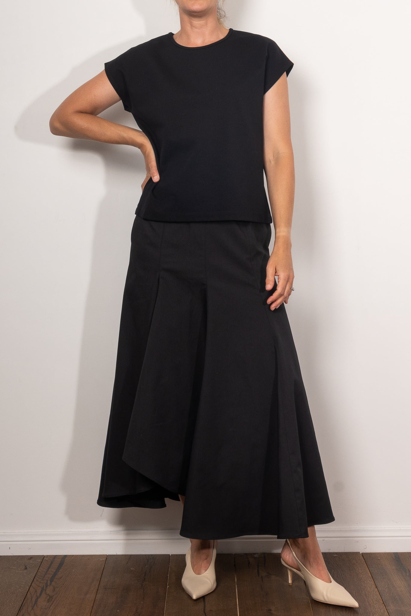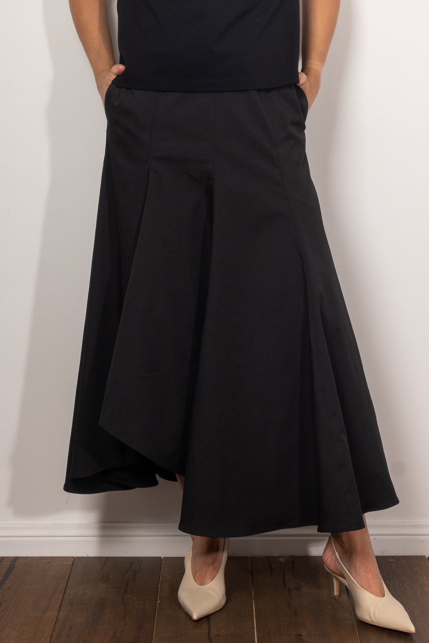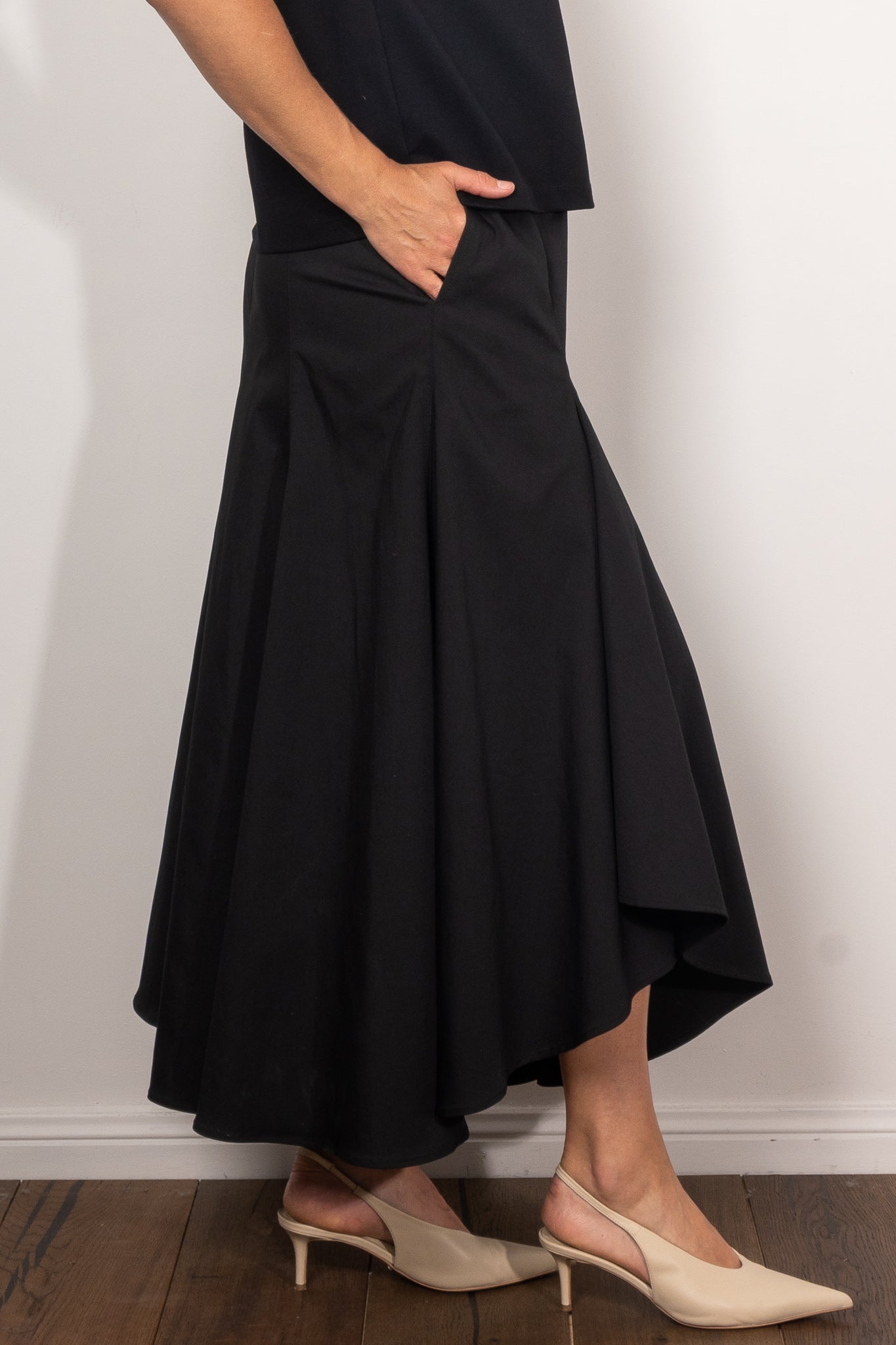 The Mela Purdie Coil Skirt is crafted from Gravitene, providing a compressed Memory Stretch Mirco Twill with a luxurious cotton touch. The A-line silhouette features all over vertical panels for a flattering fit, with a unique hem kick detail on one side. Made in Australia for exquisite quality and designed with slash pockets and a comfortable waistband.