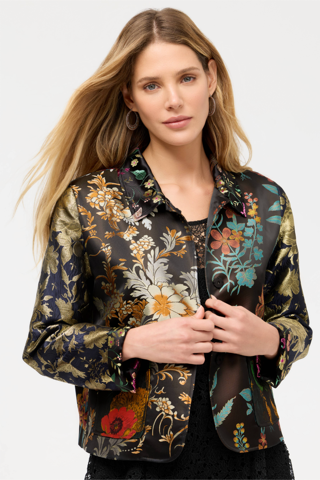 Make a statement with the Johnny Was Limited Edition Jacquard Cropped Jacket, a striking piece that transforms any outfit. See full product description below for fabric and fit info.
