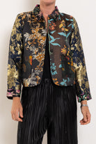 Make a statement with the Johnny Was Limited Edition Jacquard Cropped Jacket, a striking piece that transforms any outfit. This one-of-a-kind design showcases an eye-catching jacquard print in vibrant hues, elevated by contrasting panels and a sleek hidden snap closure. Functional patch pockets add practical style, while the cropped silhouette offers modern versatility. Layer it over a classic black dress and pair with bold accessories for an effortlessly eclectic aesthetic that celebrates individuality and creative expression.