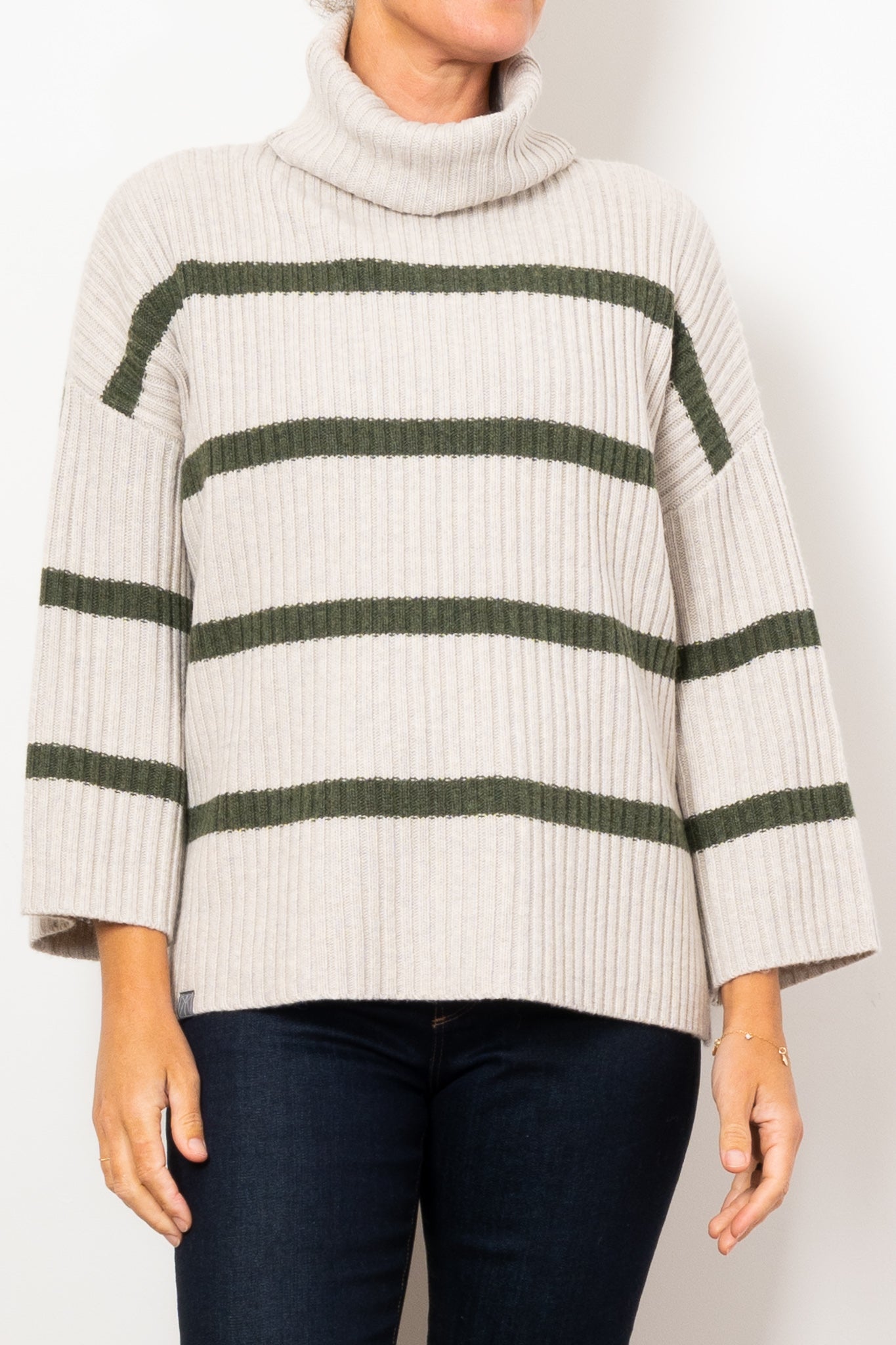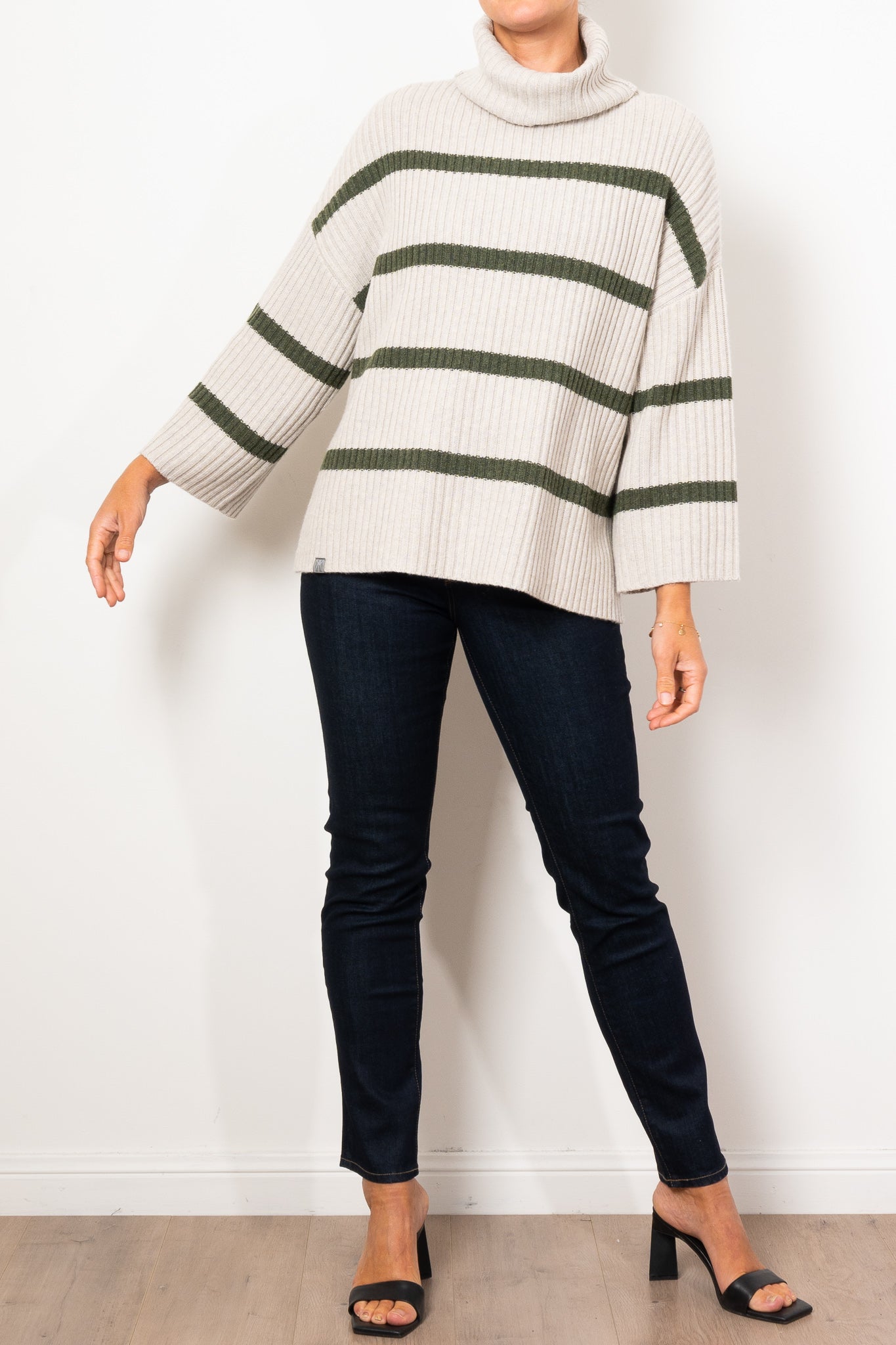 RWS Extrafine Wool 20%, Cotton BCI 20%, Cashmere 5%, FSC Viscose 33%, Recycled Nylon 23%. Cold hand wash with wool detergent.