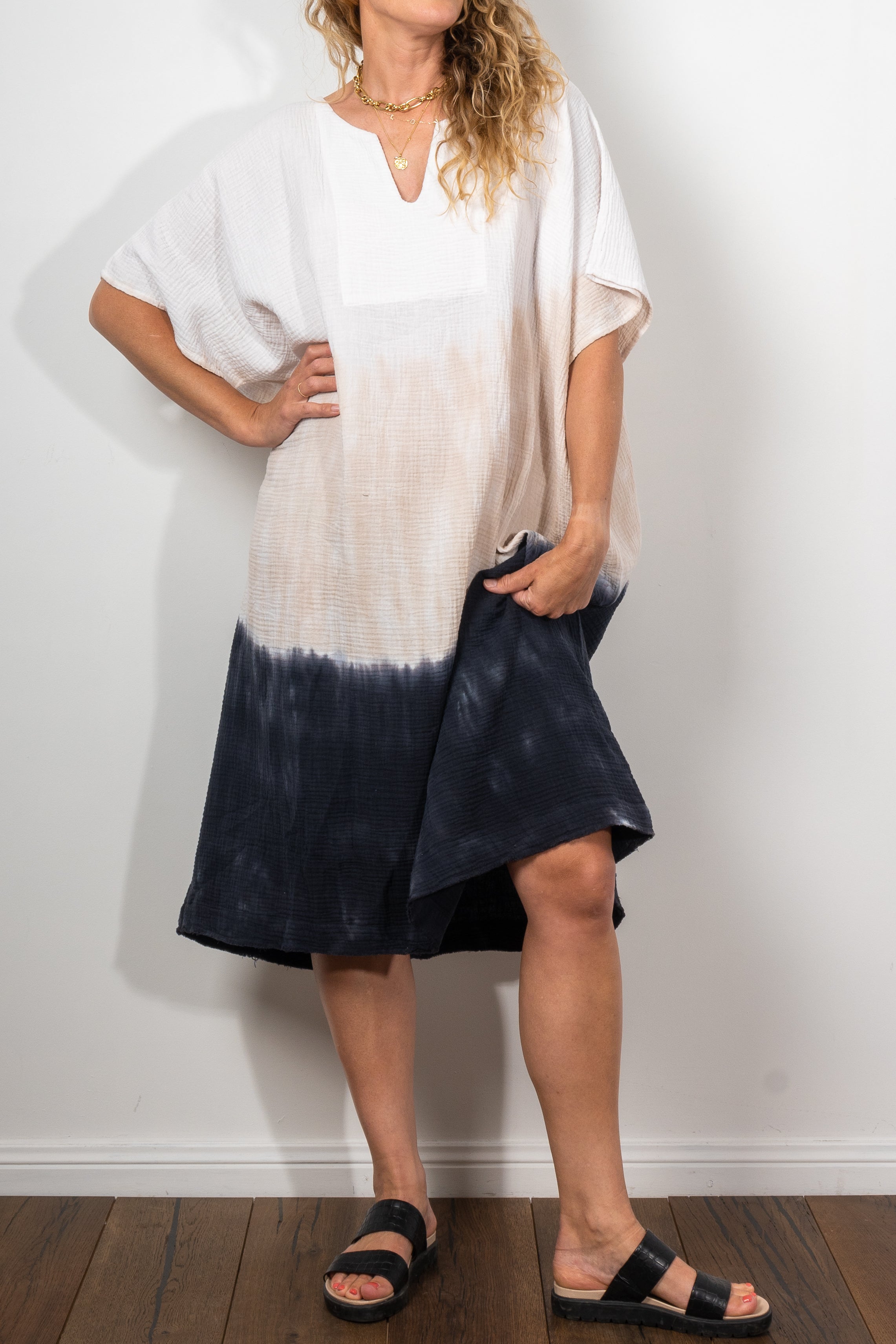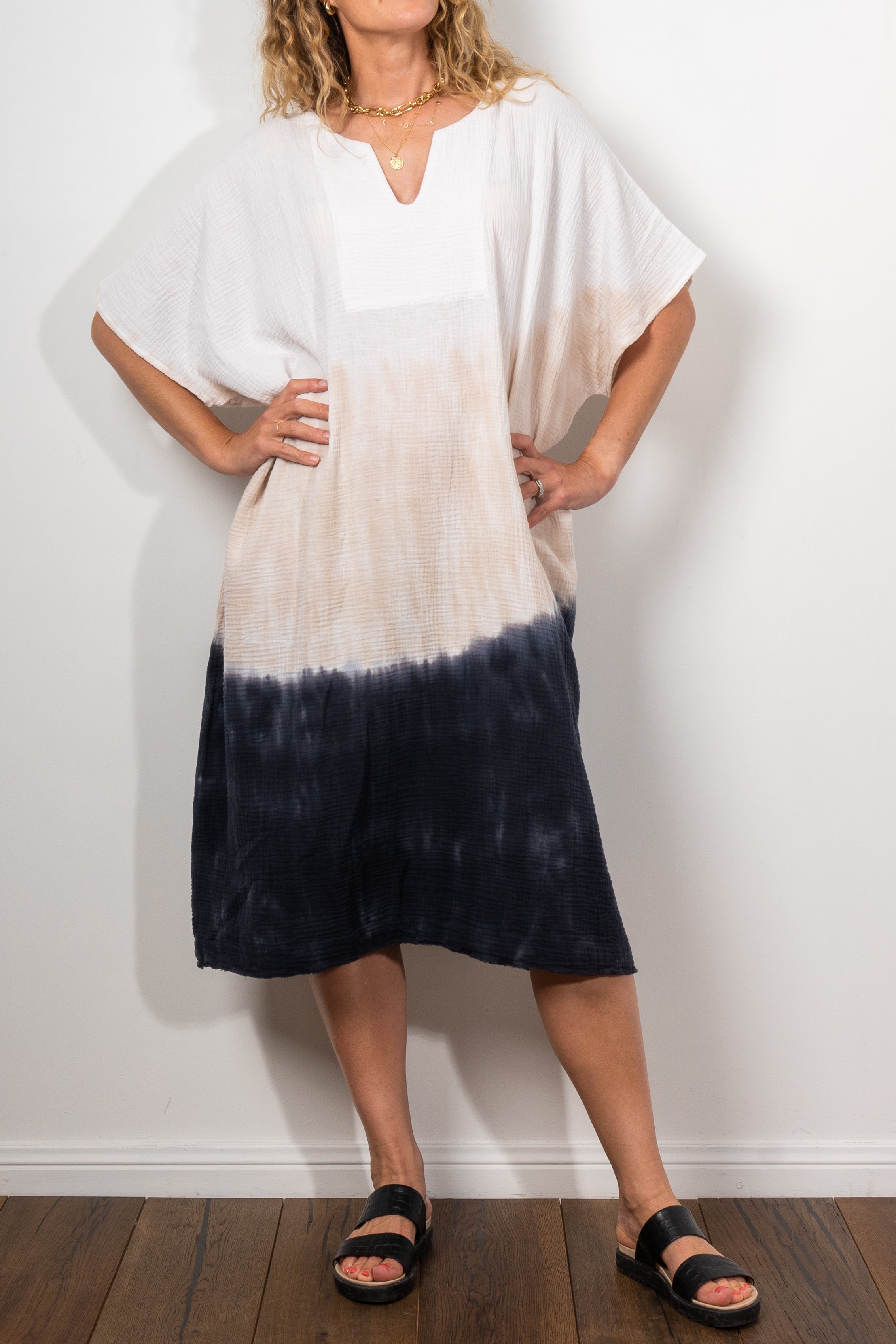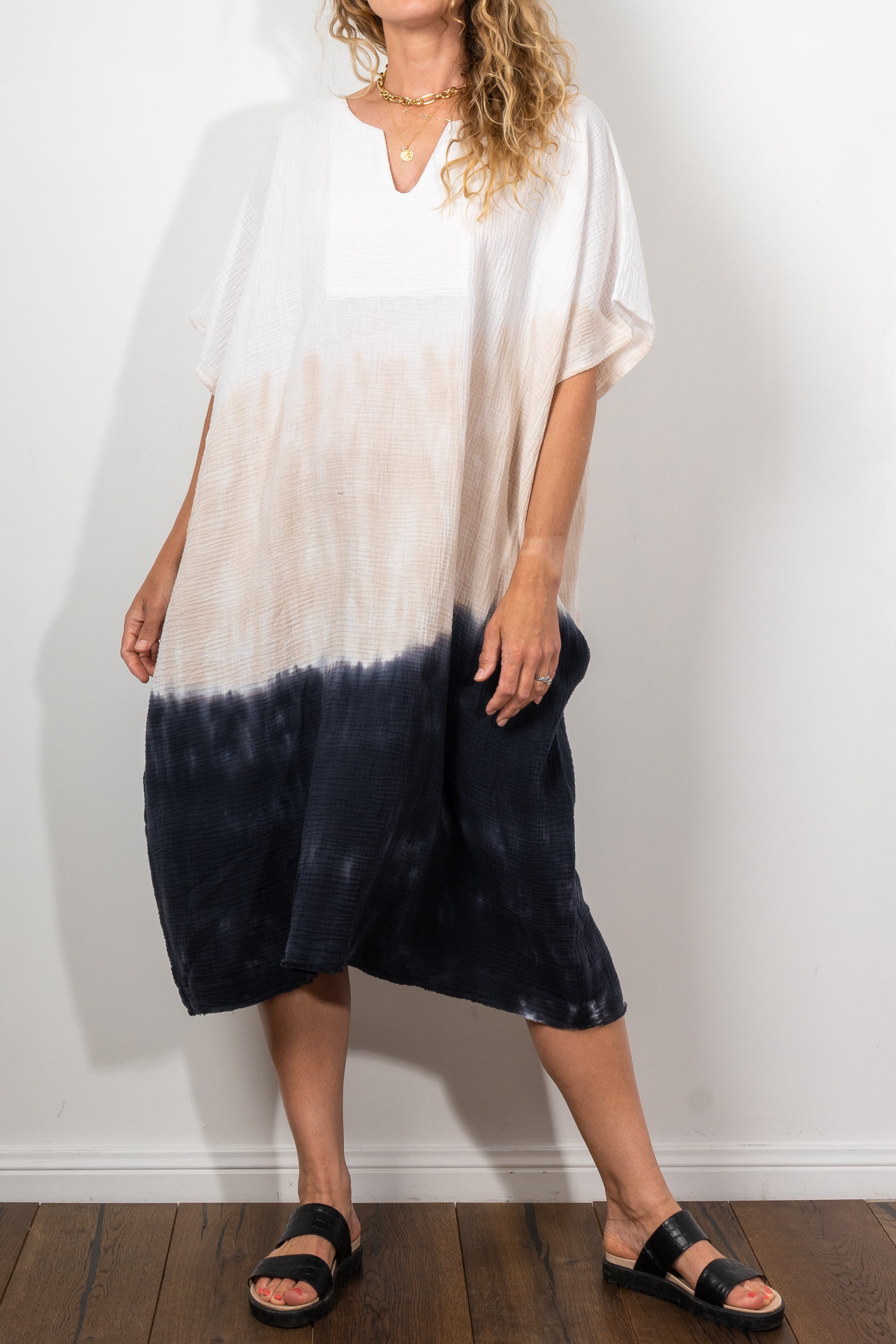 Update your beach style with the Talamaya Kaimana Dip Dyed Kaftan. This effortlessly chic and versatile garment is perfect for lounging by the sea or a relaxing retreat. The individually hand Dip Dyed layers of natural tones enhance the beauty of the Feathersoft fabric, making it a must-have for your wardrobe.